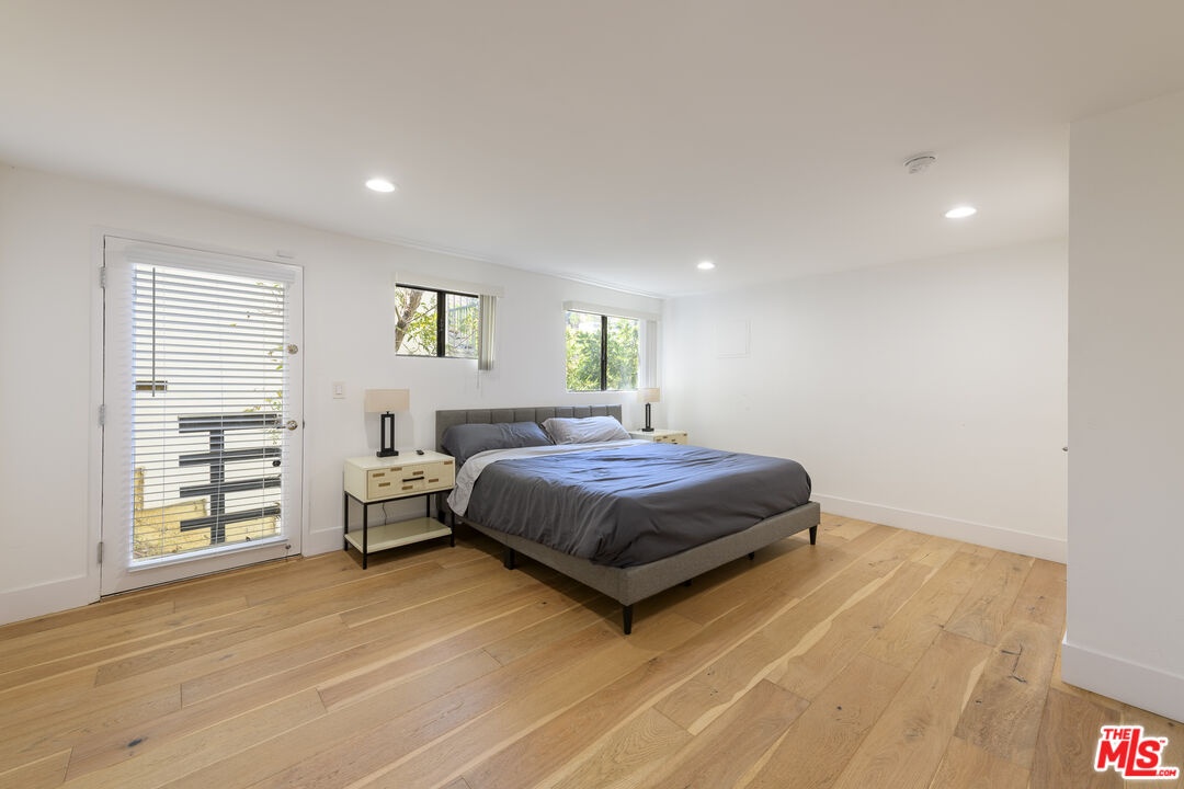 In a secluded part of the Hollywood Hills, enjoy views of the Hills, Hollywood Sign, and the Griffith Observatory from this 5 bedroom/5.5 bath, contemporary home. Tons of light pours into the house from oversized windows and skylights. Welcomed by incredible volume and a huge living room with a fireplace, wet bar, and a tremendous outdoor terrace. Super modern kitchen jeweled with stainless steel Bosch appliances, walk-in pantry, and a breakfast area. Adjacent is the formal dining room and office nook. All bedrooms are primary-sized suites with full baths. One of the suites has a private entrance with its own kitchenette (use as a separate ADU). Main primary suite boasts dual shower, separate spa tub, cedar walk-in closet, and a huge outdoor deck. Secure and gated. Other features include French oak floors, tons of storage area, 2-car garage, and (2) sets of washer-dryers. Great space for guests, tenants, studio, gym, and/or office space. Just minutes away from the heart of Hollywood, West Hollywood, Studio City, and easy SFV access.