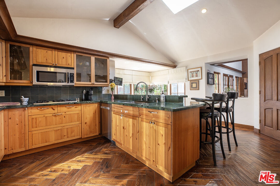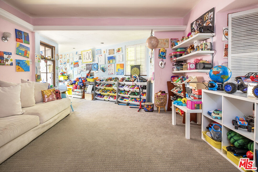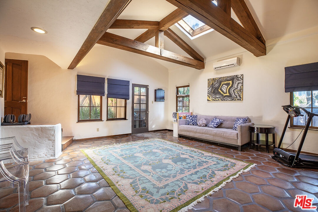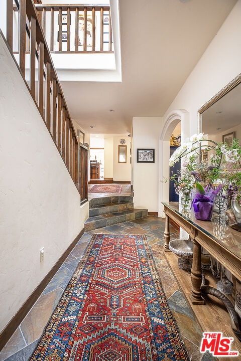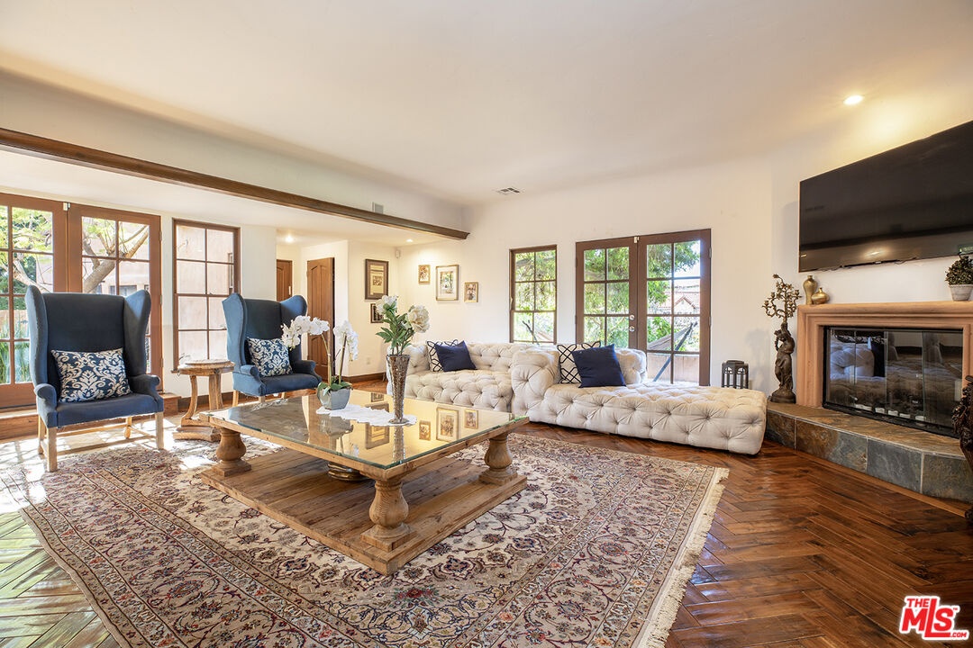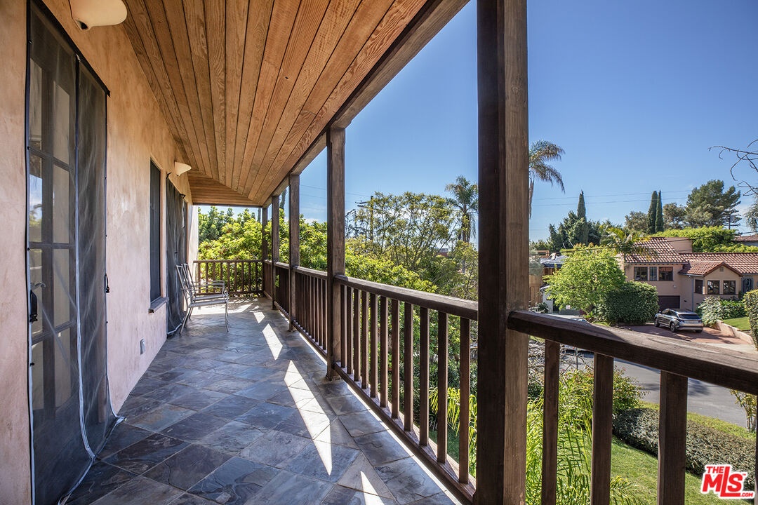 Nestled in the prestigious Comstock Hills neighborhood, this magnificent Spanish-style Westwood estate thoughtfully reimagined by an architect-owner in 2009 offers the rare combination of timeless architecture, generous space, and an unbeatable Westside location. Spanning 4,600 square feet on a lush 9,737 SF lot, this entertainer's dream home unfolds across two beautifully appointed levels. The grand living room anchors the main floor as French doors spill out onto front and side patios, seamlessly blending indoor and outdoor living. A dramatic dining room with soaring beamed ceilings and French doors to the garden sets the stage for memorable dinner parties, while the chef's kitchen features granite countertops, double ovens, and a sun-drenched breakfast nook with a skylight with views of Century City. A warm library/office with garden views provides a quiet retreat, while the expansive family room with its beamed ceiling, tile floors, and private entrance offers ideal flexibility for a media room, playroom, or home gym. Two bedrooms and baths and an expansive guest or maid's suite with its own private patio complete the downstairs. Upstairs, the serene primary suite opens to a sweeping balcony and features a spa-like bath with Jacuzzi tub, skylit shower, his-and-hers vanities, and generous walk-in closets. Also upstairs are a secondary en-suite bedroom, a spacious adjacent bedroom, and a bonus room perfect as a nursery or home office, all with tree-top vistas. The generous yard offers plenty of space for barbecues, gardening, play, or simply soaking in the California sun. A 2-car attached garage provides secure parking and easy access. All appliances included, including refrigerator, washer, dryer, dishwasher, microwave, and range/oven. Central AC/heat keeps things comfortable year-round. Located on a tranquil residential street, just minutes to Century City, Beverly Hills, UCLA, Westwood Village, and the 405 freeway. Zoned for highly-regarded Fairburn Avenue Elementary. This upscale enclave delivers walkability, a quiet residential setting, and Westside living at its finest--ideal for professionals, families, or those seeking a rare full-size home in the heart of the city.