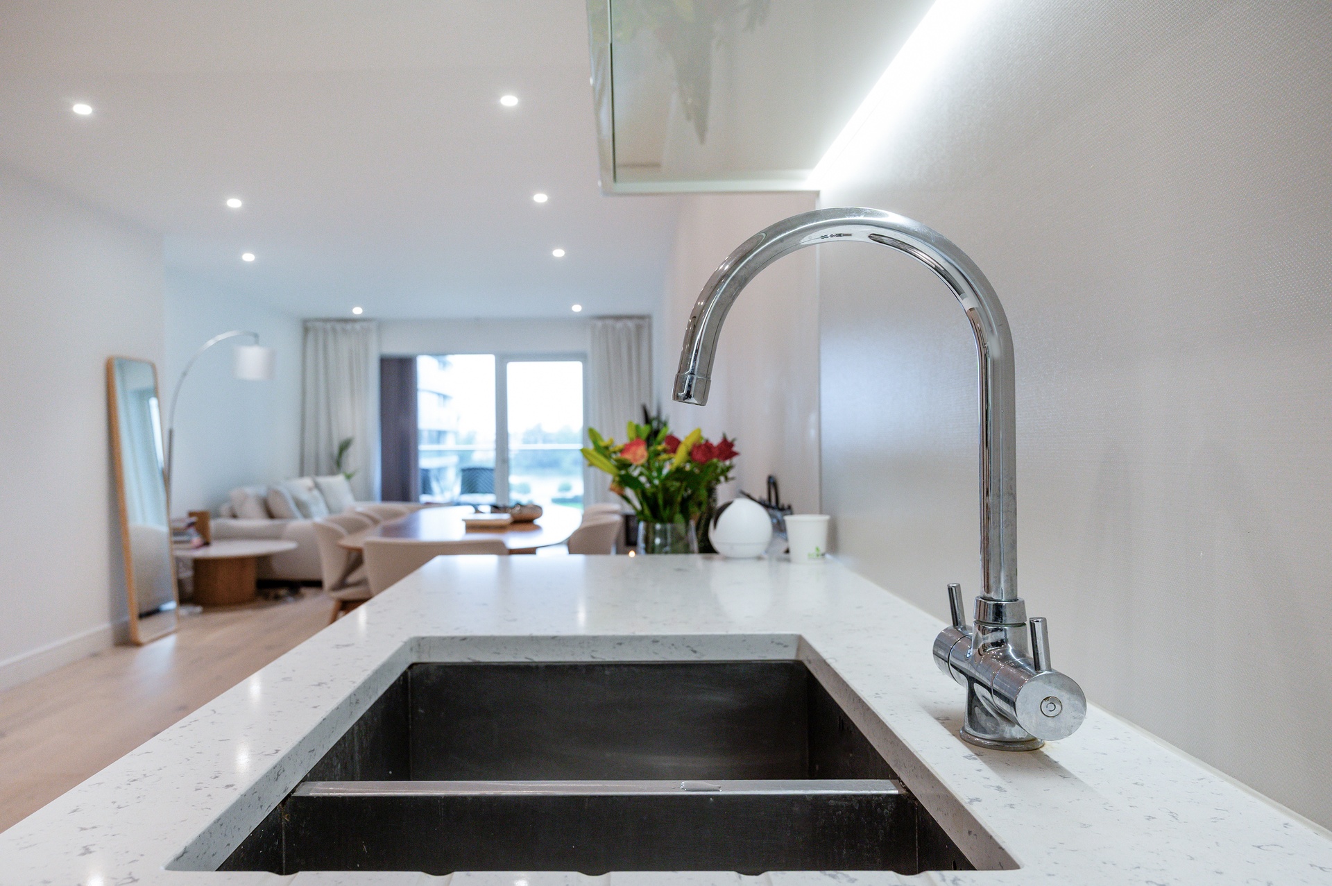 The bespoke designer kitchen is finished to an impeccable standard, featuring tall units, composite stone worktops, a sleek glass splashback, and a full range of high-specification integrated appliances, perfectly suited for modern living.