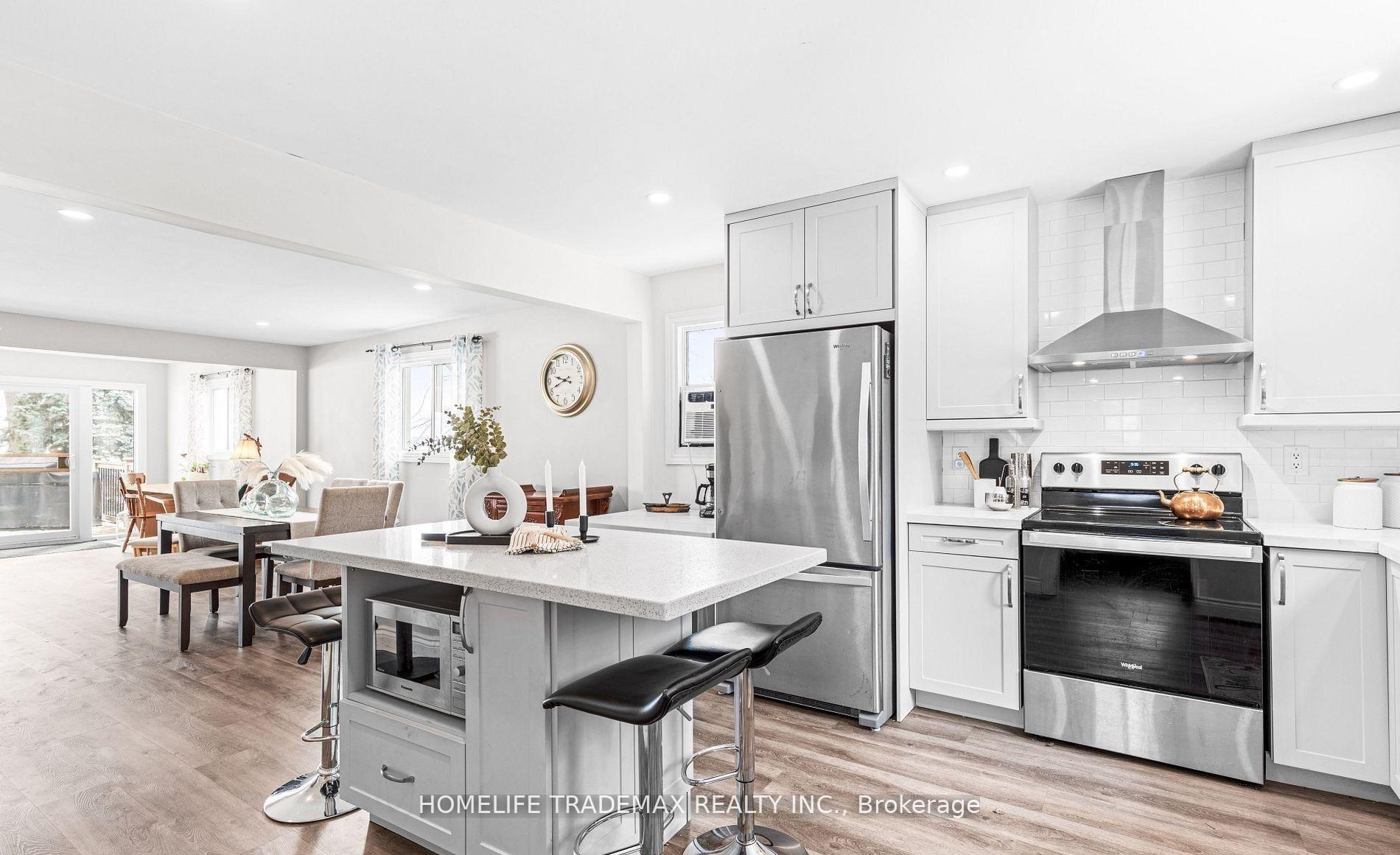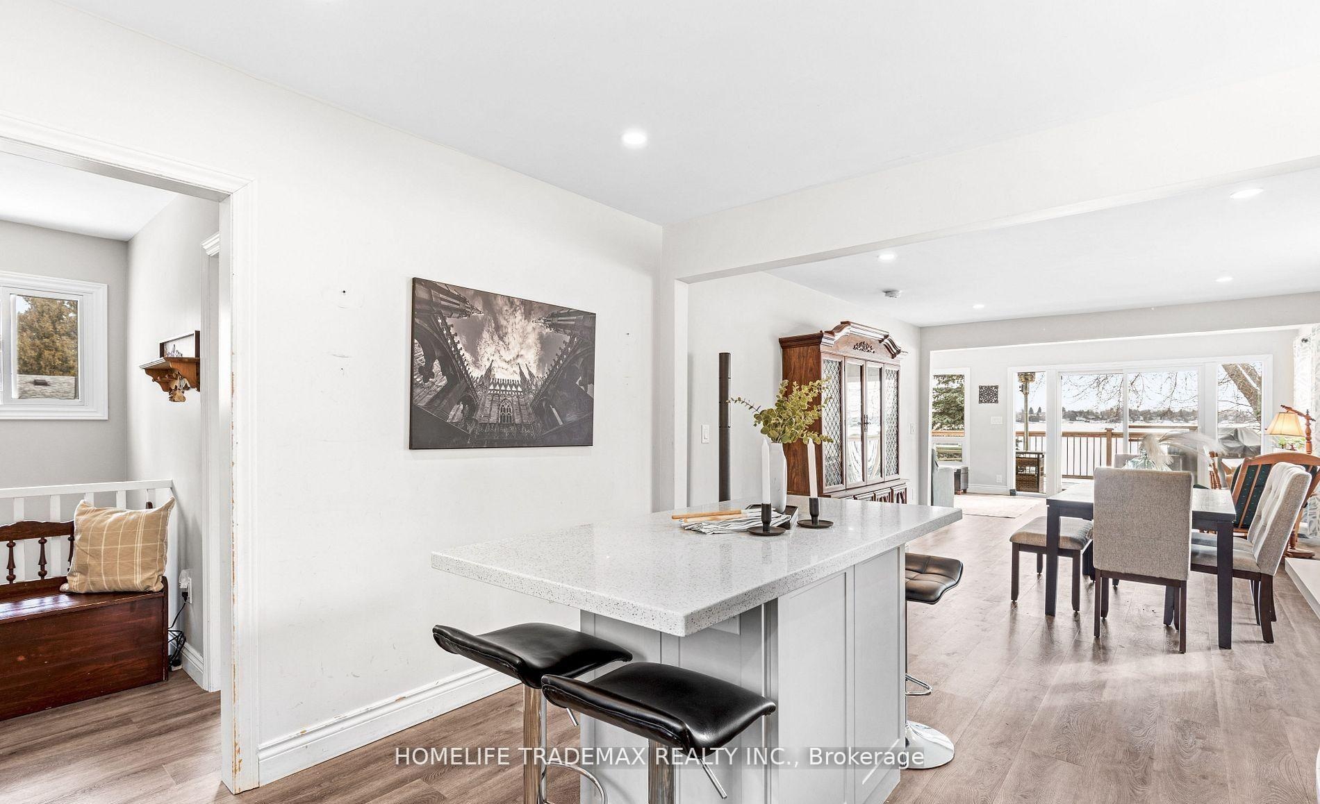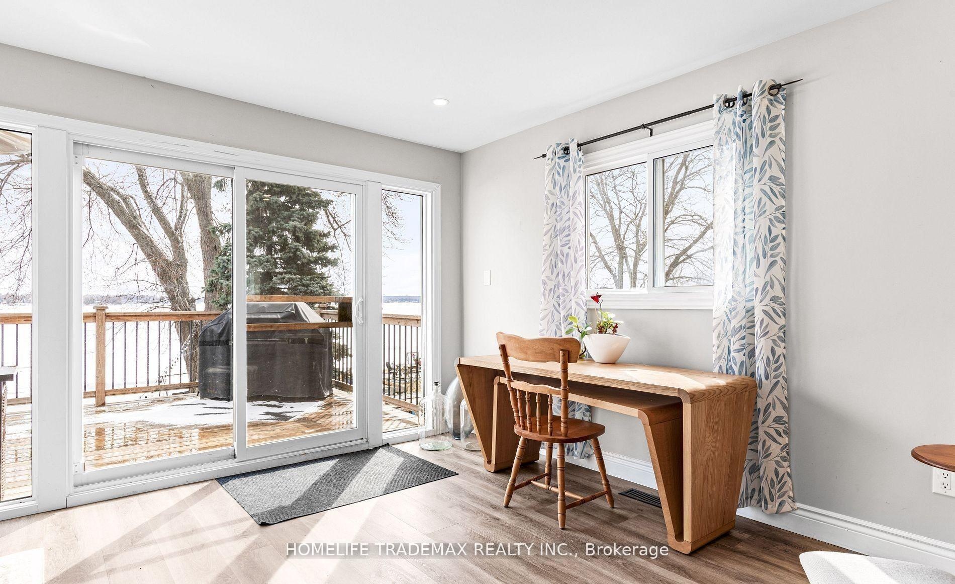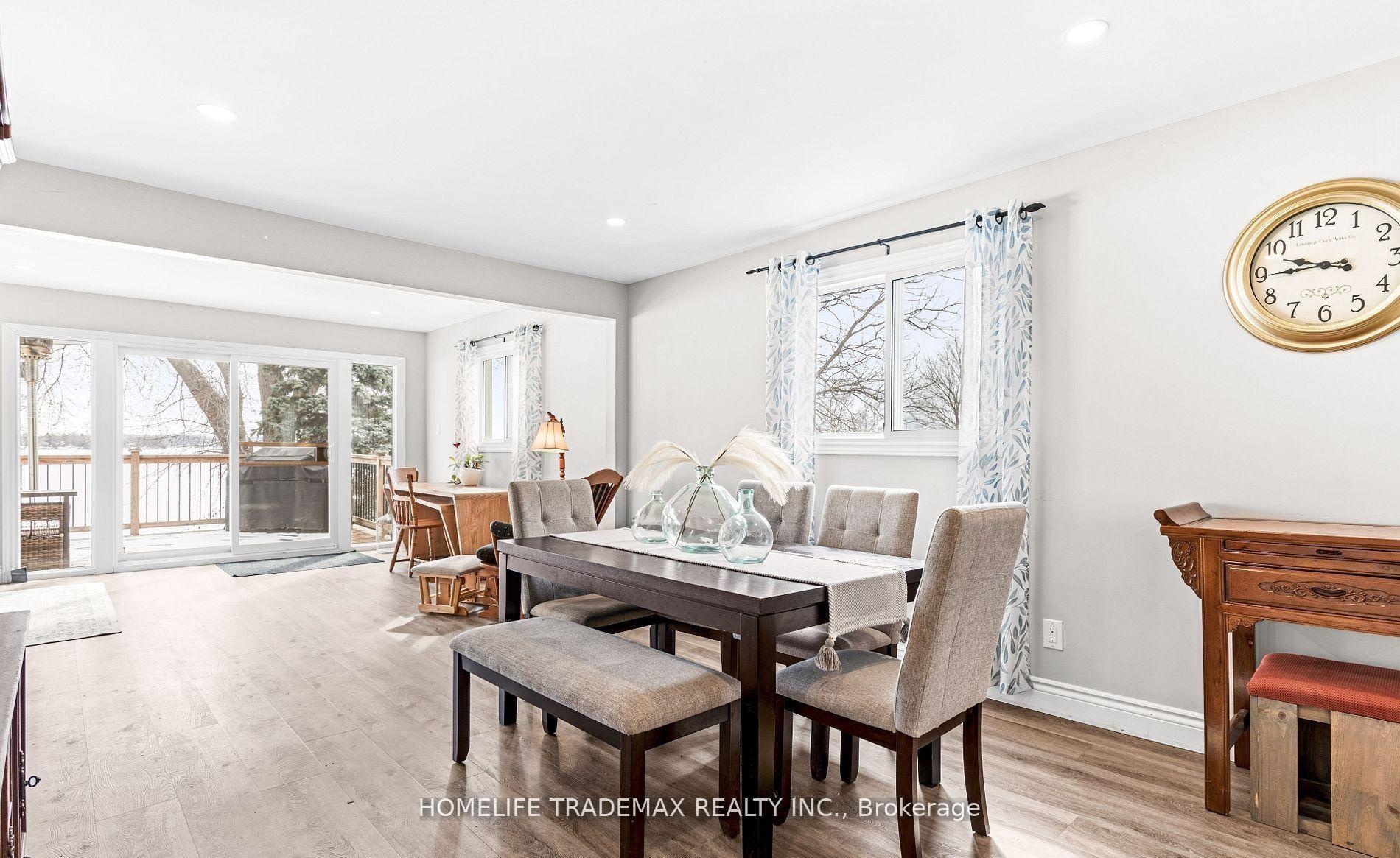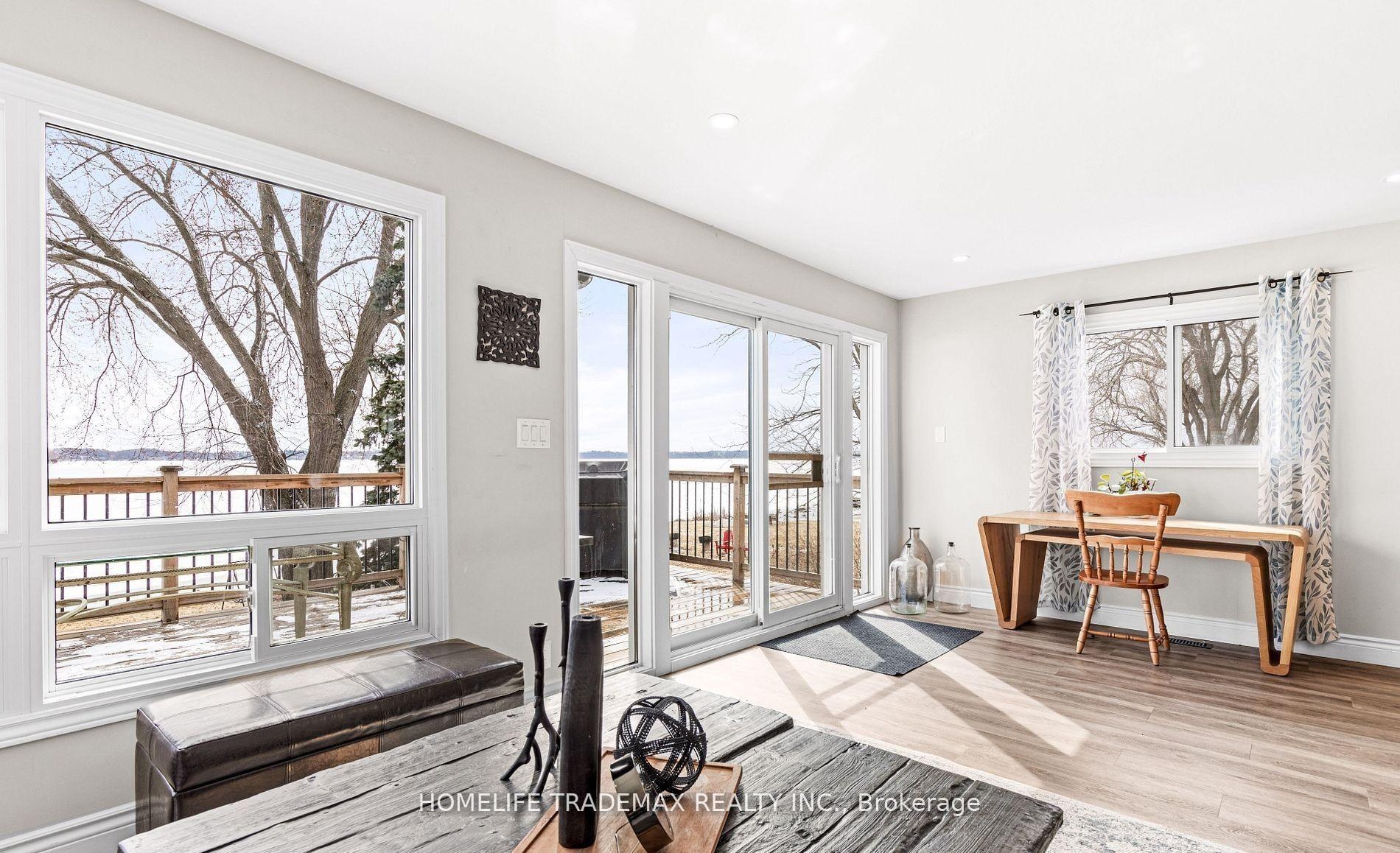 Direct Waterfront - Priced to Sell! Beautifully renovated 3-bedroom, 2-bath home on Lake Scugog, just 10 minutes north of Port Perry. Enjoy unobstructed eastern views, stunning sunrises, and natural light throughout with all levels above grade. Features include a bright open-concept main floor, gourmet kitchen with large center island, luxury vinyl flooring, pot lights, and a spacious primary suite. Upgrades include new deck, windows, and doors. The finished lower level offers a walkout to a covered outdoor area, plus laundry, storage, a detached garage, and a workshop with hydro. Close to schools, parks, shopping, dining, and commuter routes. Experience modern comfort and true lakefront living in one perfect package.