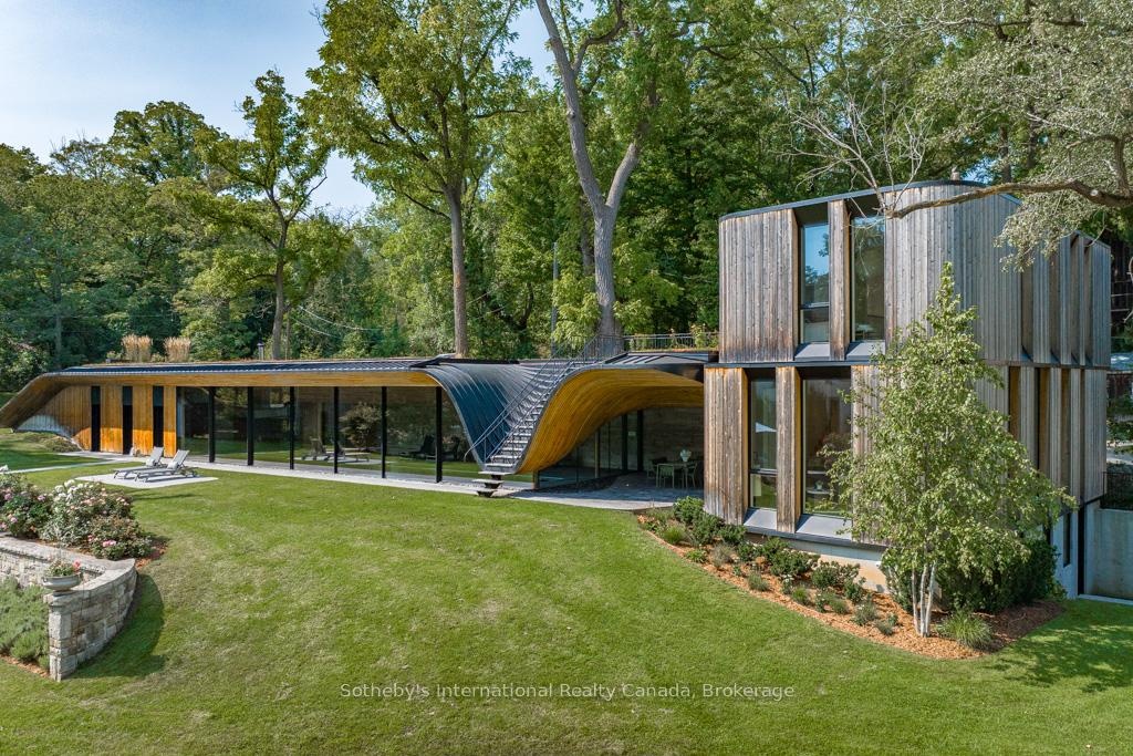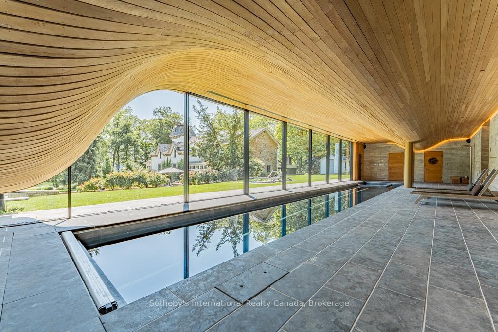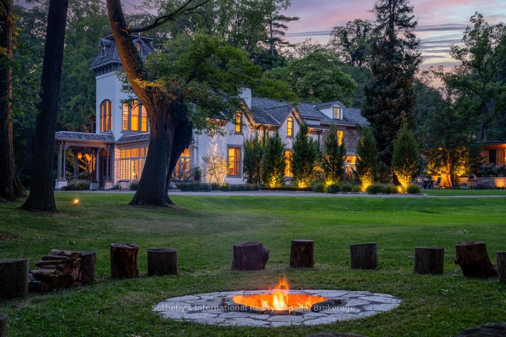 Nestled where history gracefully intertwines with modern elegance, this exceptional estate invites you to experience unparalleled luxury. Set against ancient trees & expansive views at nearly 3,000 feet on the escarpment, this property transcends mere residence- it is a sanctuary. Spanning three separately deeded parcels, the estate features four exquisite detached residences, a state-of-the-art spa & pool house by Partisans, a historic barn, a four-car coach house with a charming residence above. This compound of five dwellings offers incredible opportunities for a family retreat, rental investment, or filming income, as it is renowned in the film industry for its stunning backdrops. This property gives spa, wellness retreat vibes all day long. The main house, originally constructed C1830, boasts over 8,000 square feet of refined living space. A harmonious blend of history & contemporary design, it features a luxurious kitchen crafted by John Tong & a glass extension overlooking serene Zen gardens. Each grand principal room is bathed in natural light, offering breathtaking vistas, including a main floor bdrm. Ascend to the second floor, where five elegantly appointed bedrooms & three exquisite baths await, along with views from the iconic tower. The primary suite occupies its own wing, complete with a private sitting room, generous walk-in closet & lavish five-piece ensuite, all separated by custom solid wood sliding doors for ultimate privacy. The tower's third floor culminates in an unparalleled observation point with extraordinary views. Immerse yourself in the tranquility of the Zen garden, the restorative beauty of the escarpment & the calming presence of the spa & pool house. This estate is not just a home; it is an invitation to disconnect, reflect & rejuvenate in an exquisite setting where luxury & history converge. With five residences, combined there are 17 bedrooms, 12 full baths, 5 half baths & 5 kitchens.
