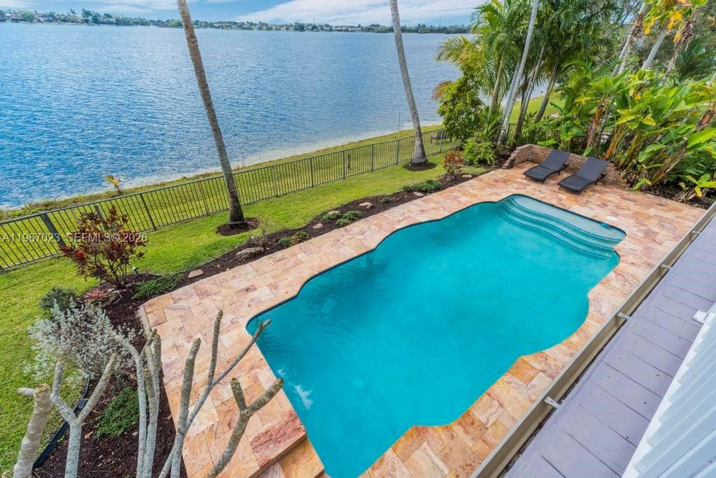 Don't miss out on this opportunity to have a home on one of the largest lakes! Beautiful two-story lakefront home located in the prestigious gated community of Sunset Isles in Silver Lakes. This spacious residence features 4 bedrooms, a loft that can be converted into a 5th bedroom, and 4.5 baths, including a full bedroom and bath on the main floor, perfect for guests or multigenerational living. Upstairs offers three additional bedrooms, including the primary suite, plus a versatile loft area. The primary suite boasts a large private balcony overlooking expansive lake views, creating the perfect setting for spectacular sunsets. The main level includes a half bath for guests, a gourmet kitchen with an eat-in nook that opens to the family room, and leads out to the pool area. Formal living and dining rooms also feature French doors that open to the beautifully landscaped backyard. Enjoy outdoor living with a large covered patio, resurfaced pool (2023), and breathtaking lake views ideal for entertaining. Additional features include accordion shutters throughout, a durable metal roof with over 20 years of life remaining, and an oversized two-car garage with ample storage. A perfect blend of comfort, space, and stunning waterfront views.