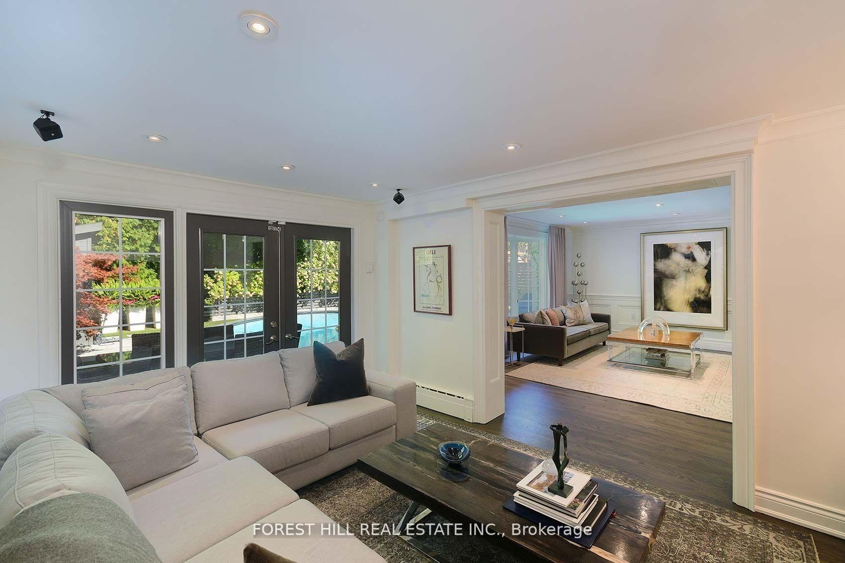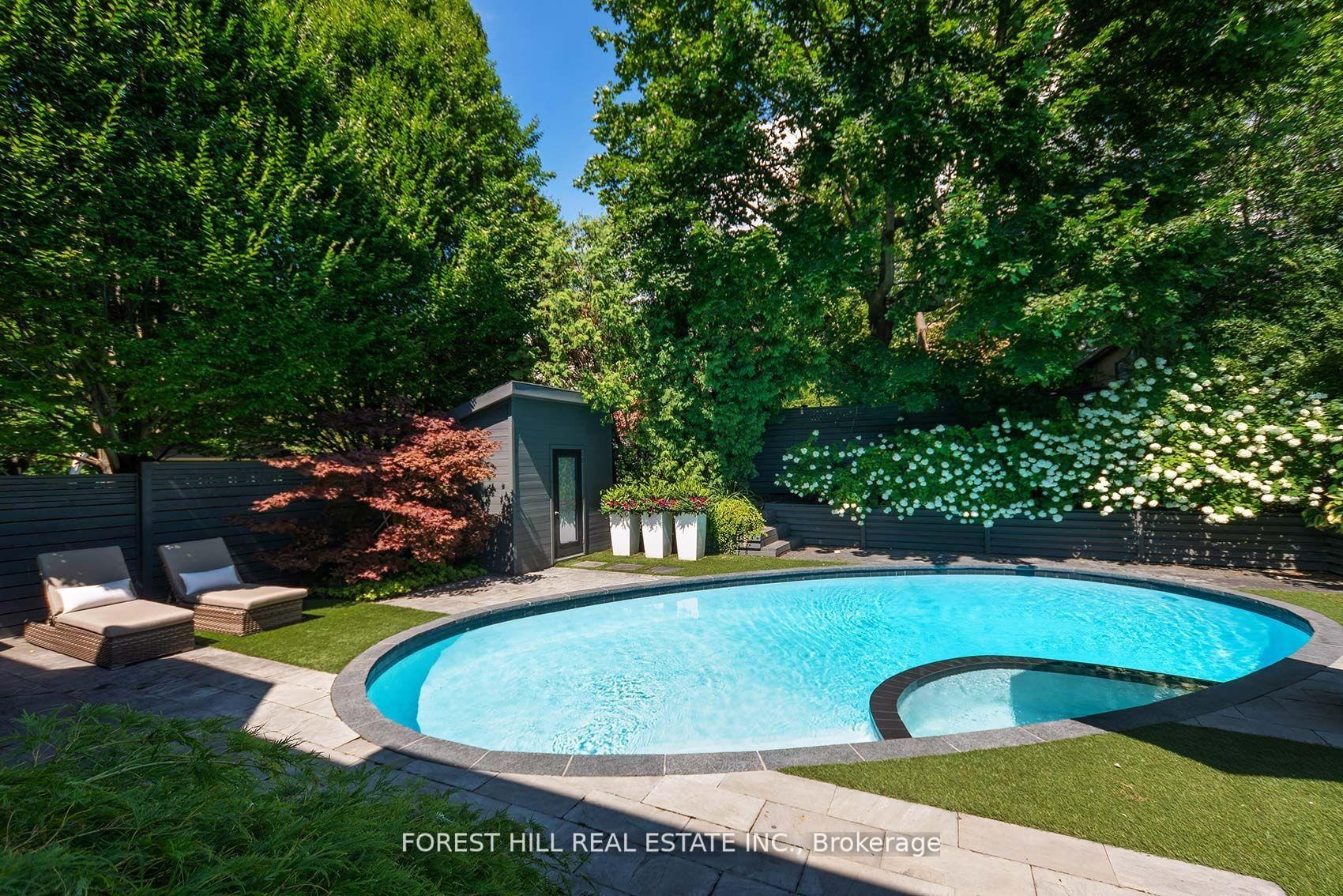 This is the one! 34 Forest Ridge Drive checks all your boxes beginning with its stunning curb appeal. Situated on a 59' wide lot on this quiet and most coveted street in upper Forest Hill Village, this sophisticated home features 4+1 bedrooms, a main floor office, a main floor family room and a main floor powder room. The welcoming foyer with large closet invites you into an elegant living space where you can relax and entertain. The living room is bright with a gas fireplace and views of the stunning back yard with pool and beautiful garden. The stylish dining area is spacious enough for large dinner parties yet intimate enough for smaller ones. The incredible eat-in kitchen features stainless steel appliances, Caesarstone countertops, two built-in Wolf gas ranges, two Miele dishwashers, a Sub-Zero fridge, two built-in warming drawers, Avantgarde wine cooler and more. The main floor is hardwood throughout with beautiful views overlooking the backyard pool and garden. Upstairs the gorgeous large primary bedroom has a vaulted ceiling, a sizeable seating area and a six-piece en-suite with heated floors. There is a walk-in closet and two double closets as well as abundant additional storage in the ensuite. There are three additional upstairs bedrooms. Bedroom 2 features a tandem room and 4 double closets with built-in storage. Bedrooms 3 and 4 each has two double closets with built-in storage. The basement rec room is large with good ceiling height. There are an additional bedroom, bathroom and a cedar closet on the lower level. The laundry room is spacious and storage is abundant. This is a great location with close TTC and highway access. Walking distance to shops, good schools, parks, the Beltline Trail, Cedarvale Ravine and more.