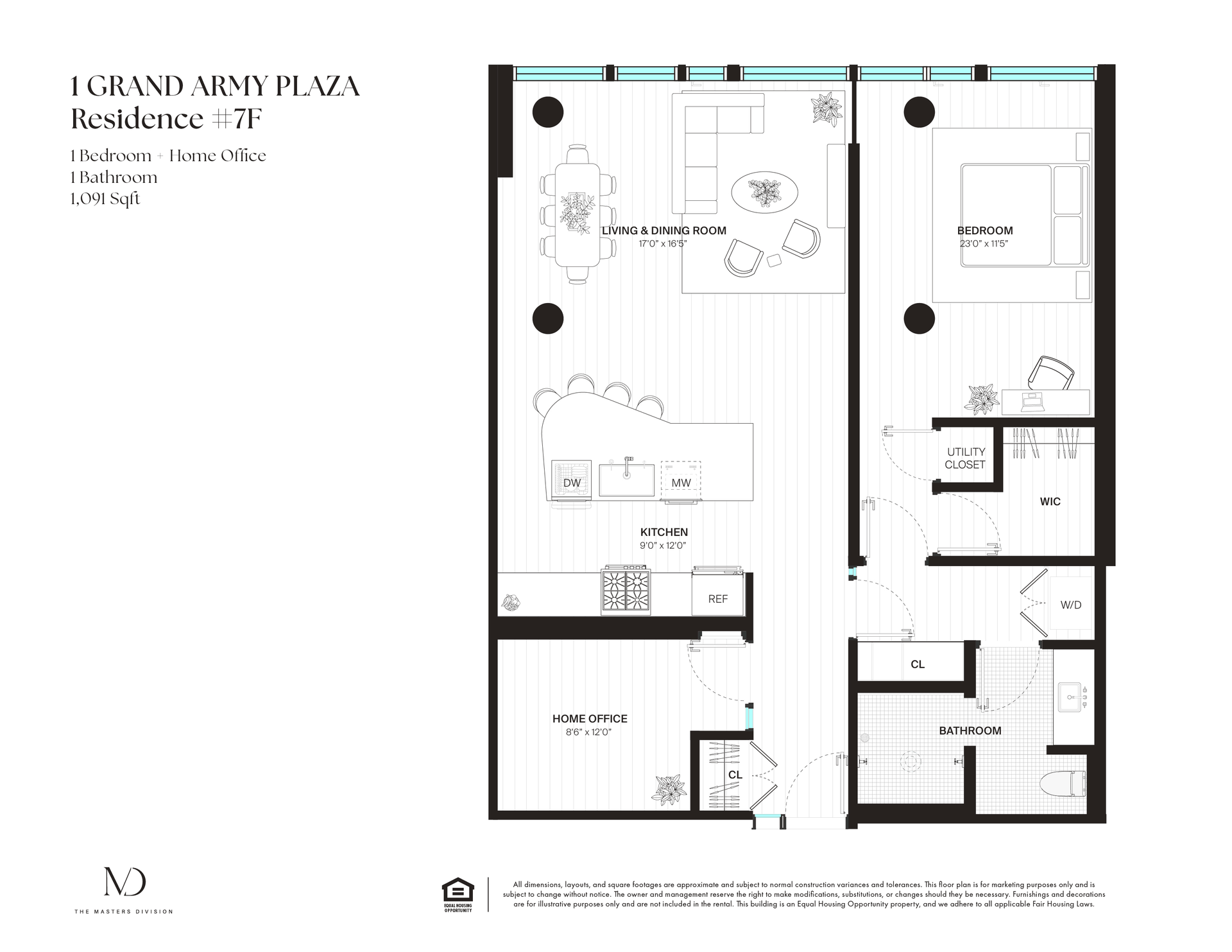 Blending clean modern architecture with warm, elevated finishes, this 1,091 square foot home offers a design-forward Brooklyn lifestyle with front-row park and plaza views, extraordinary natural light, and a flexible layout built for today’s living.