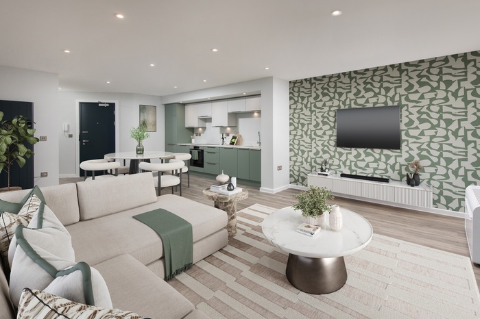 The spacious open plan living and dining area is flooded with natural light, creating a seamless environment for both relaxing and entertaining. The modern kitchen is finished to an exceptional standard, while the generous bedroom provides a calm and luxurious retreat. The bathroom showcases refined fittings and premium finishes, reflecting the quality synonymous with this outstanding development.