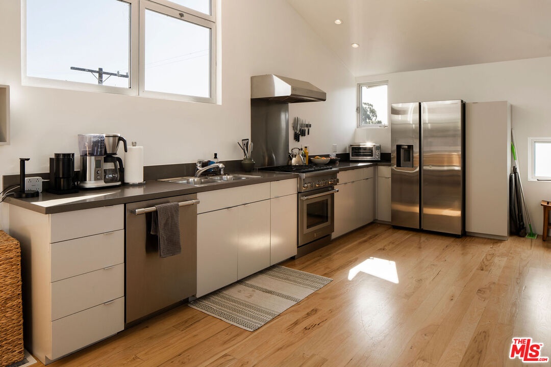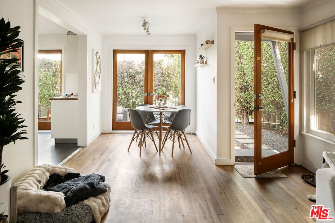 A rare coastal compound just blocks from the sand and steps to iconic Abbot Kinney Boulevard, ideally located in the coveted Venice Beach Walk Streets near the Abbot Kinney Corridor. This exceptional triplex offers a compelling blend of architectural character, income potential, and lifestyle flexibility in one of the Westside's most sought-after neighborhoods.The front structure features a well-designed duplex comprised of two spacious two-bedroom, one-bath residences. The lower unit is grounded by warm hardwood floors and refined finishes, opening effortlessly to an expansive private deck and patio retreat a sun-drenched outdoor setting ideal for entertaining, lounging, or dining al fresco. Above, the upper residence is a bright and airy home filled with natural light, offering a peaceful, elevated coastal ambiance.Privately set at the rear, the three-level architectural residence lives like a standalone single-family home. Situated on its own gated portion of the lot, this striking unit offers a private entry yard and a versatile ground-level flex space ideal for a studio, creative office, gym, or potential third bedroom. The upper floors feature two bedrooms and two baths, culminating in a dramatic top-level open-concept living and kitchen space. Rich hardwood flooring, expansive windows, and a private deck create a refined, light-filled environment perfectly suited for an owner-user, creative professional, or those seeking a premier Venice compound. An attached garage with convenient alley access completes the residence.Whether envisioned as a high-performing income property, multi-generational living opportunity, or an owner-occupied investment in a premier coastal enclave, this is a rare chance to secure scale, flexibility, and proximity to the beach in one of Los Angeles' most dynamic neighborhoods. For buyers considering owner occupancy, LA1 is experienced in owner-occupancy relocations and can thoughtfully guide you through the process.