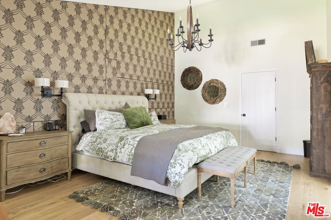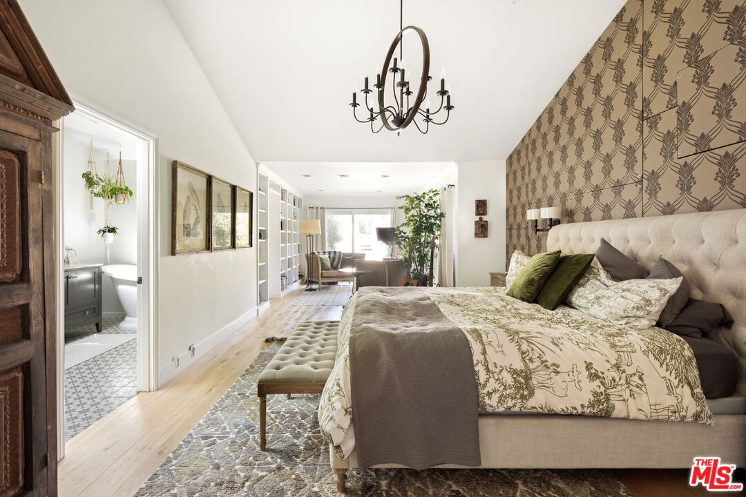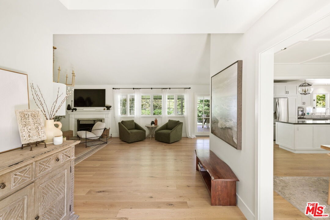 This exceptional Lake Hollywood residence showcases refined craftsmanship and state-of-the-art finishes throughout. It is located on a very large flat parcel, privately gated from the street. The home offers both seclusion and style in one of Los Angeles' most coveted hillside enclaves. The open-concept layout flows seamlessly from a large entry way to a gas fireplace adorned living area with dining room, into a beautifully appointed chef's kitchen featuring abundant storage, an oversized island with seating, and a cozy adjoining den. Each space is thoughtfully oriented to open onto multiple outdoor living areas that capture the essence of Southern California's indoor-outdoor lifestyle. The four-bedroom residence includes a luxurious primary suite complete with a private sitting room, generous walk-in closet, and a sunlit spa-inspired bath designed for quiet retreat. Three additional well-appointed bedrooms and baths offer comfort and versatility, while a spacious bonus room provides the perfect setting for a playroom, home gym, or sophisticated work-from-home sanctuary. Outdoors, the property unfolds as a private retreat featuring a sparkling pool and spa, covered patio for al fresco dining, outdoor kitchen area and grassy lawn framed by unobstructed views of the iconic Hollywood Sign. With expansive spaces for both relaxed living and effortless entertaining, this remarkable residence captures the essence of elevated California living. Ideally located just minutes from major studios and the 101 freeway, the home offers rare privacy alongside convenient access to the very best of Los Angeles.