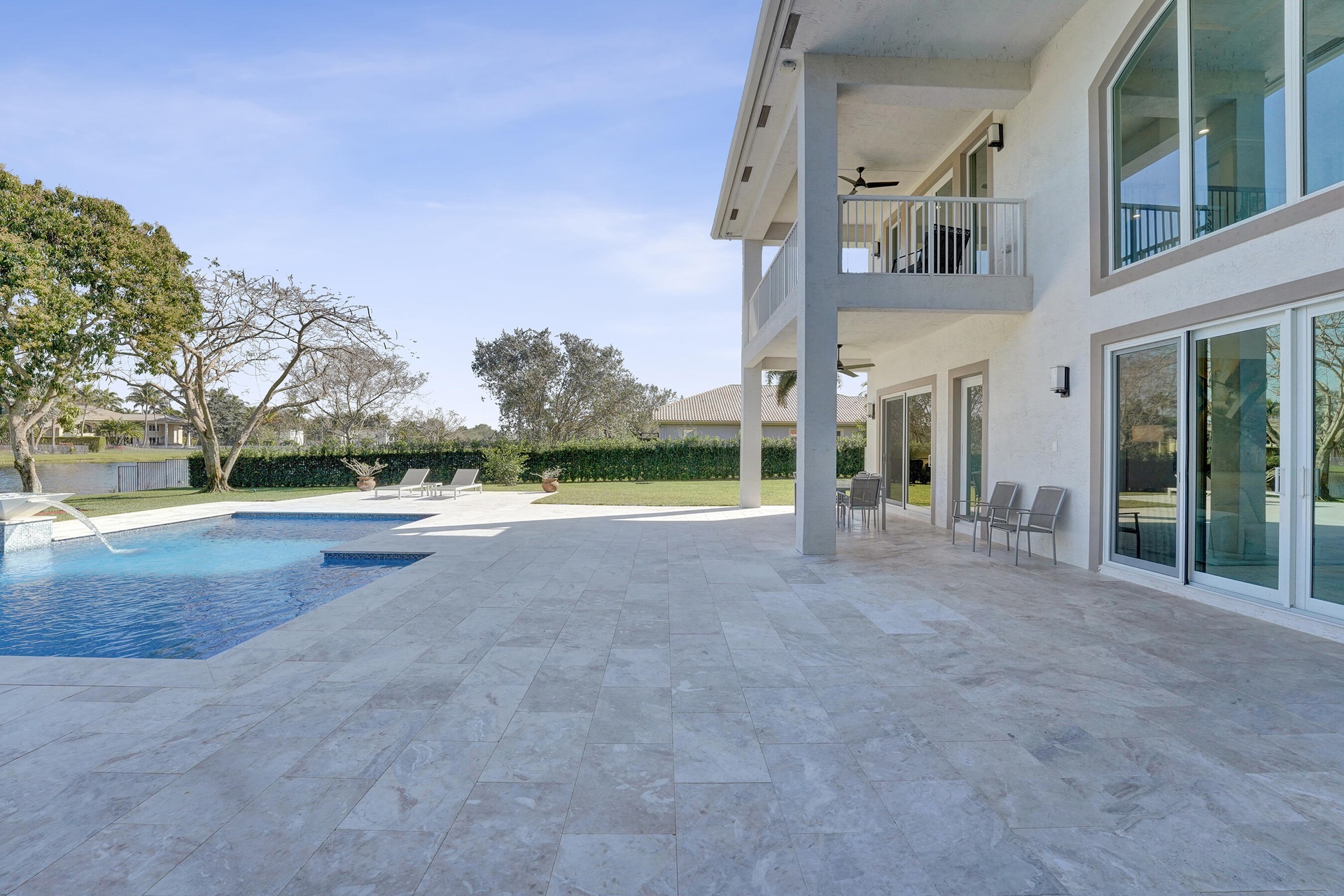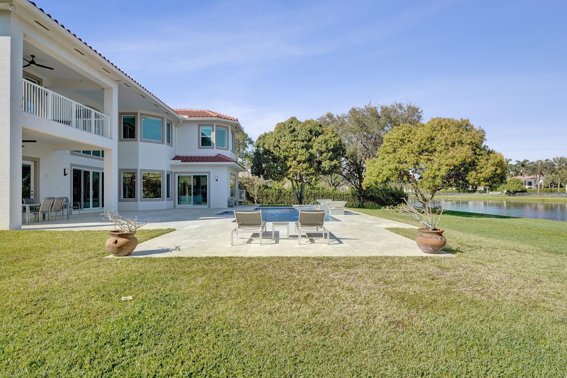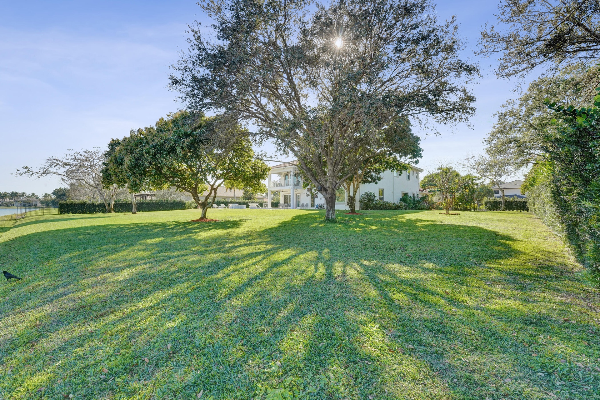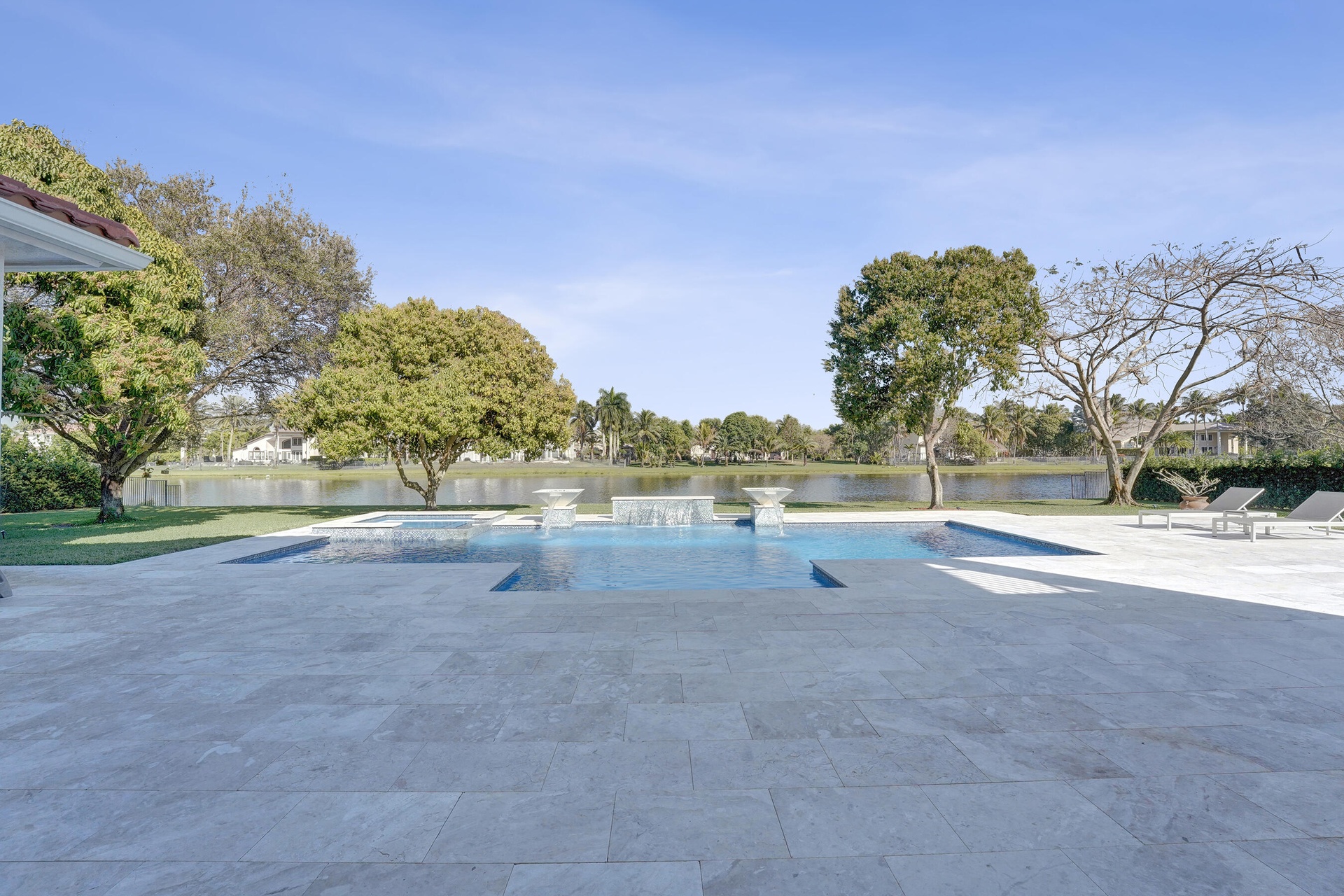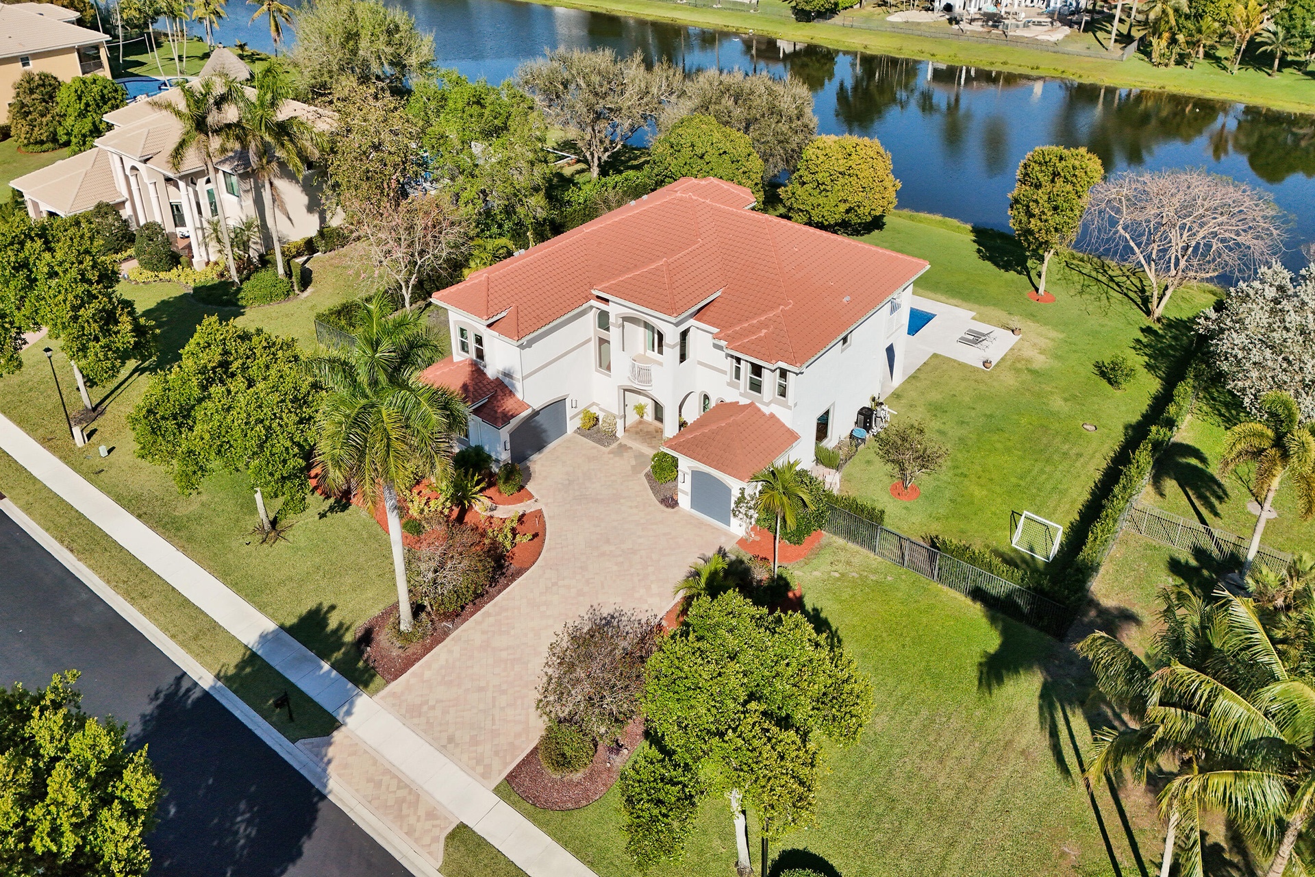 Experience true luxury living in this stunning 5 BR 6 BA estate on a massive (35,000+ SQ FT) lot complete with a brand new sparkling Van Kirk designed saltwater pool and spa, overlooking the lake! Towering floor to ceiling windows draw in an abundance of light to every room. Enjoy the spectacular water views from the moment you enter your home and its grand foyer. The large impressive living room w/ wet bar and the bright kitchen open up to your oasis backyard making this a true indoor-outdoor home, perfect for entertaining! Your immense backyard is surrounded by lush mature fruit trees adding to its tropical feel and lending much privacy. No detail has been spared. New gourmet kitchen with an oversized island & gorgeous marbled Brazilian stone countertops, new Monogram double-oven, smart wi-fi appliances, a walk-in pantry, including the custom led lighting makes for a very light, appealing open kitchen. This expanded Van Gogh model gives you the convenience of a bedroom on the main floor for guests or a live-in nanny. Main level also features a true dedicated substantial home office with large bookcases, plenty of shelving and room for two. Your private dining-room is stunning, with coffered ceilings, a picture window letting in lush, green garden views and light while comfortably seating 12 for dinner parties. New roof and AC. New impact windows. On the second story, enjoy a grand primary BR overlooking the water, his & her separate walk-in closets and a very large spa like bath with whirlpool jacuzzi tub. You have 3 additional bedrooms all with their own en-suite bath, a loft/media room which opens to an expansive covered balcony, overlooking your private backyard water oasis. Living here, you feel like you are on vacation every day! The epitome of Florida lifestyle! Ample consideration for cars here with 2 garages and an extended driveway to fit many more automobiles. Adding to convenience for electric vehicles you have not one but two EV stations. Utilizing modern technology this smart home offers Savant home automation system for integrating lighting, climate, entertainment, security and energy from one customizable interface. Long Lake Ranches is a coveted guard gated community known for its proximity to THE TOP-RATED SCHOOLS in the nation! Amenities include clubhouse, fitness center, tennis courts & basketball court. You are near equestrian trails & the scenic Tree Tops Park and minutes to great dining, restaurants and entertainment. This home provides the perfect mix of luxury, privacy and location.