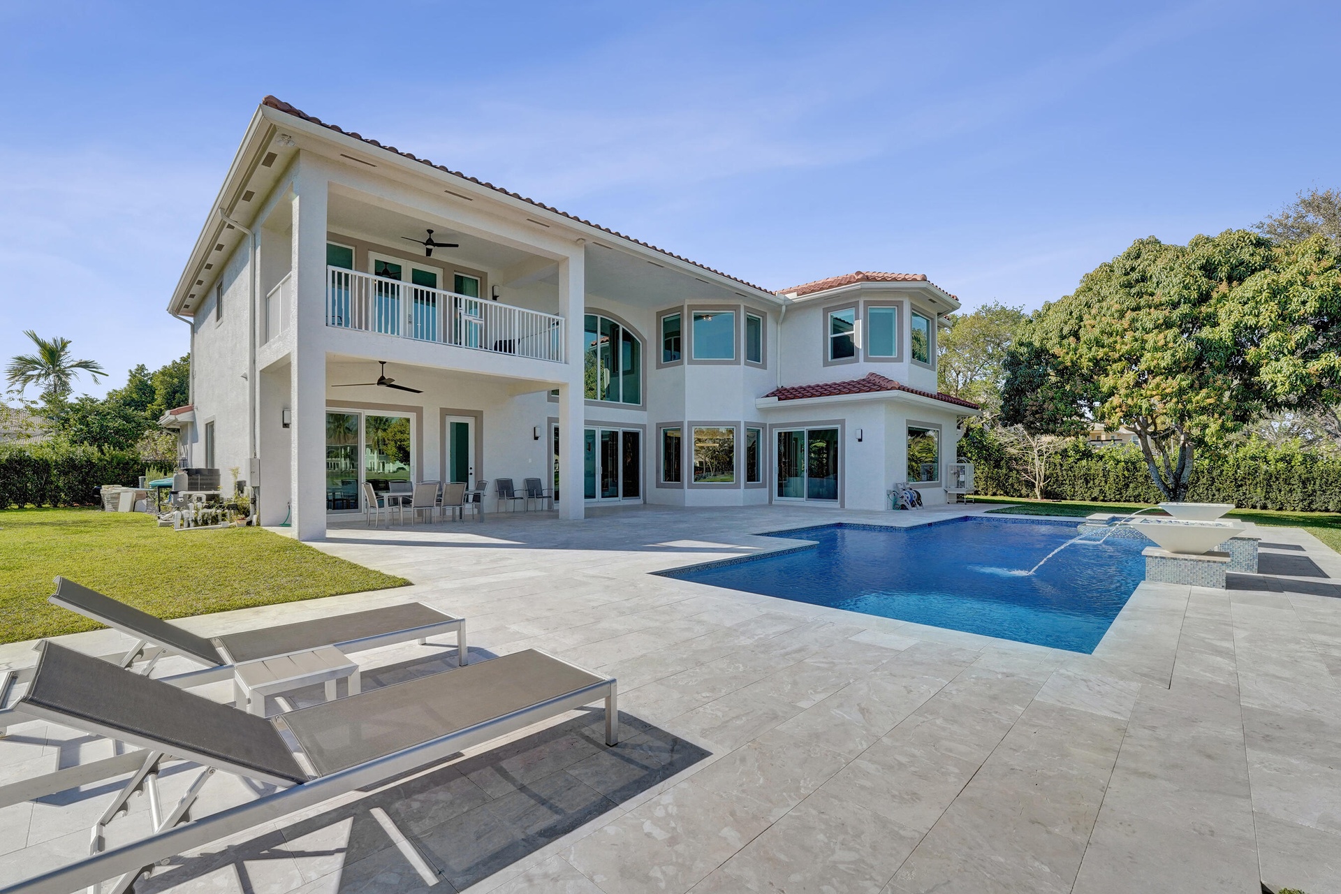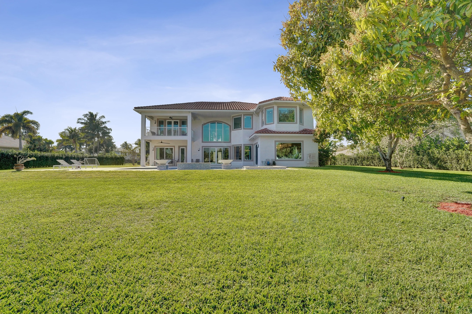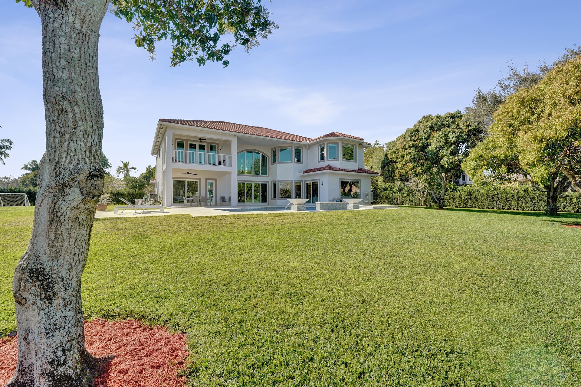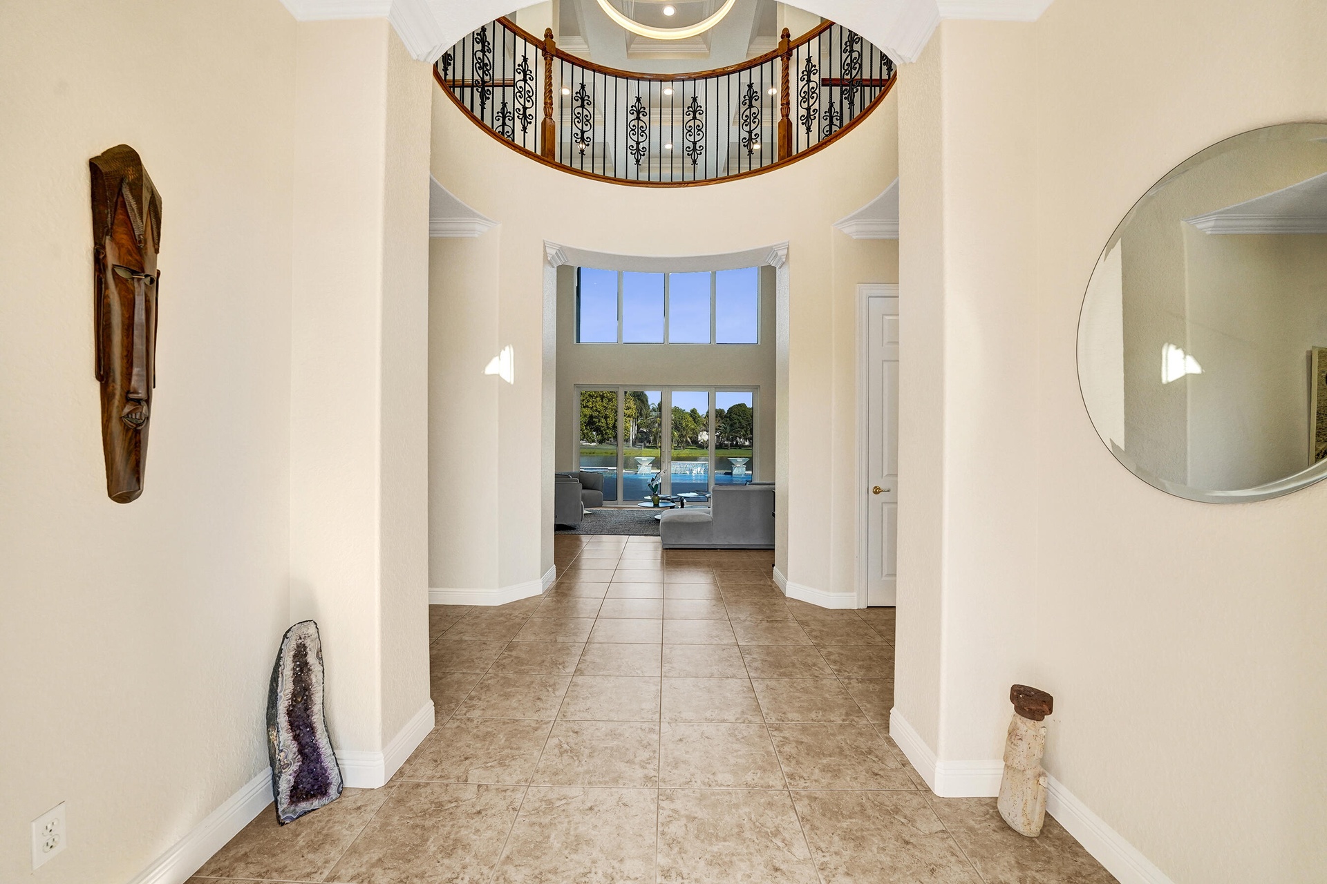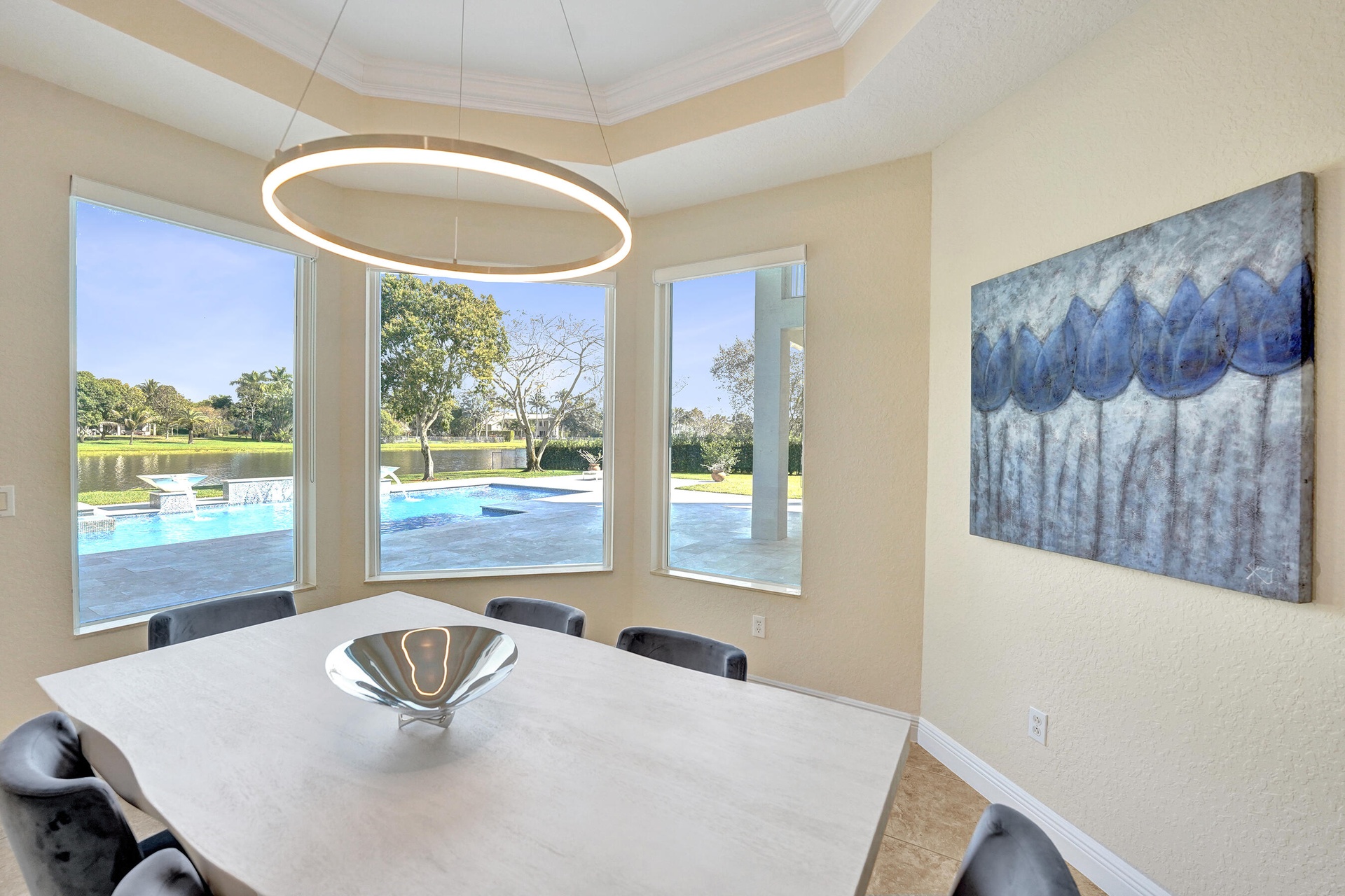 Experience true luxury living in this stunning 5 BR 6 BA estate on a massive (35,000+ SQ FT) lot complete with a brand new sparkling Van Kirk designed saltwater pool and spa, overlooking the lake! Towering floor to ceiling windows draw in an abundance of light to every room. Enjoy the spectacular water views from the moment you enter your home and its grand foyer. The large impressive living room w/ wet bar and the bright kitchen open up to your oasis backyard making this a true indoor-outdoor home, perfect for entertaining! Your immense backyard is surrounded by lush mature fruit trees adding to its tropical feel and lending much privacy. No detail has been spared. New gourmet kitchen with an oversized island & gorgeous marbled Brazilian stone countertops, new Monogram double-oven, smart wi-fi appliances, a walk-in pantry, including the custom led lighting makes for a very light, appealing open kitchen. This expanded Van Gogh model gives you the convenience of a bedroom on the main floor for guests or a live-in nanny. Main level also features a true dedicated substantial home office with large bookcases, plenty of shelving and room for two. Your private dining-room is stunning, with coffered ceilings, a picture window letting in lush, green garden views and light while comfortably seating 12 for dinner parties. New roof and AC. New impact windows. On the second story, enjoy a grand primary BR overlooking the water, his & her separate walk-in closets and a very large spa like bath with whirlpool jacuzzi tub. You have 3 additional bedrooms all with their own en-suite bath, a loft/media room which opens to an expansive covered balcony, overlooking your private backyard water oasis. Living here, you feel like you are on vacation every day! The epitome of Florida lifestyle! Ample consideration for cars here with 2 garages and an extended driveway to fit many more automobiles. Adding to convenience for electric vehicles you have not one but two EV stations. Utilizing modern technology this smart home offers Savant home automation system for integrating lighting, climate, entertainment, security and energy from one customizable interface. Long Lake Ranches is a coveted guard gated community known for its proximity to THE TOP-RATED SCHOOLS in the nation! Amenities include clubhouse, fitness center, tennis courts & basketball court. You are near equestrian trails & the scenic Tree Tops Park and minutes to great dining, restaurants and entertainment. This home provides the perfect mix of luxury, privacy and location.