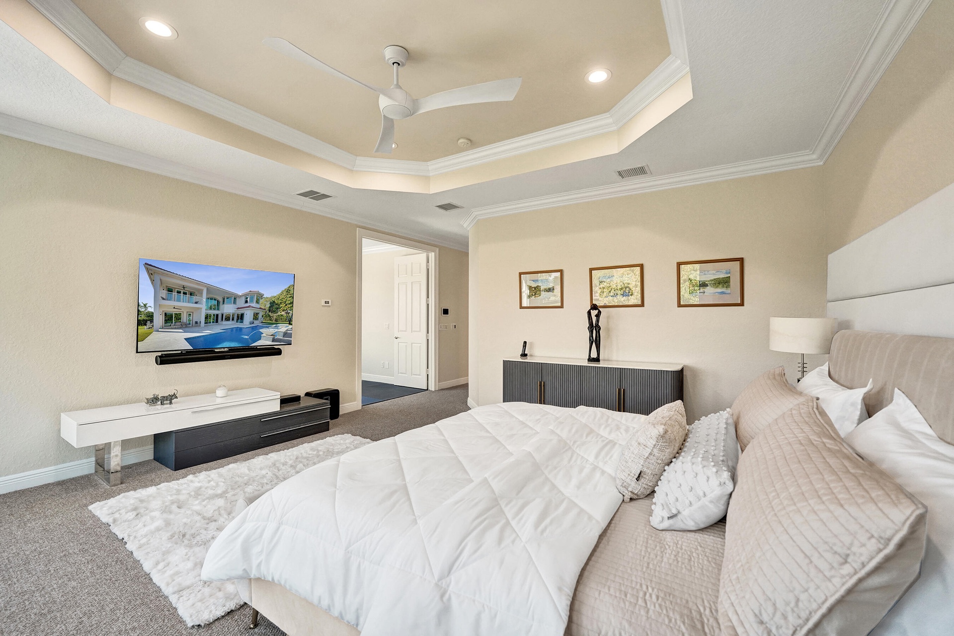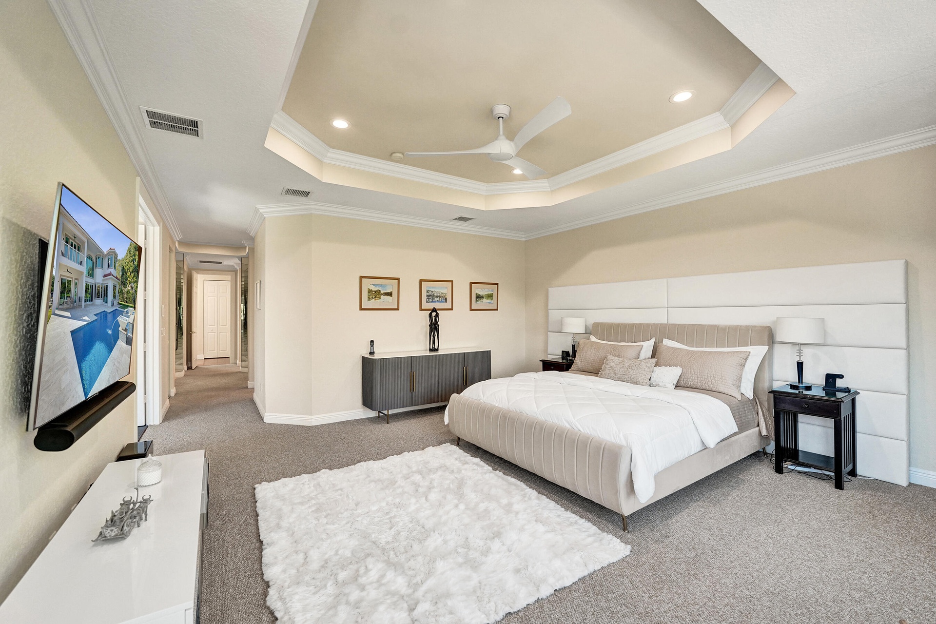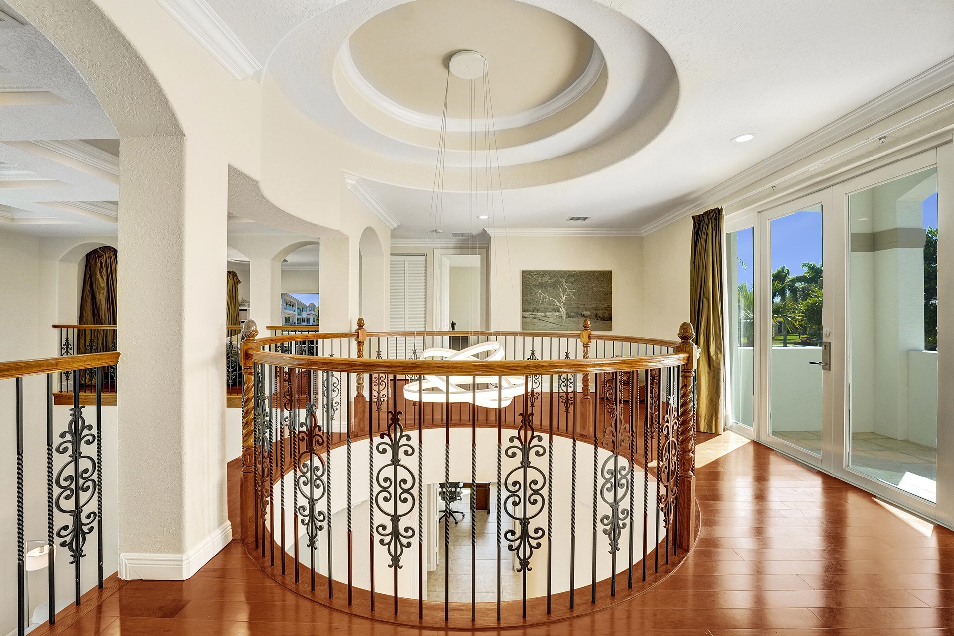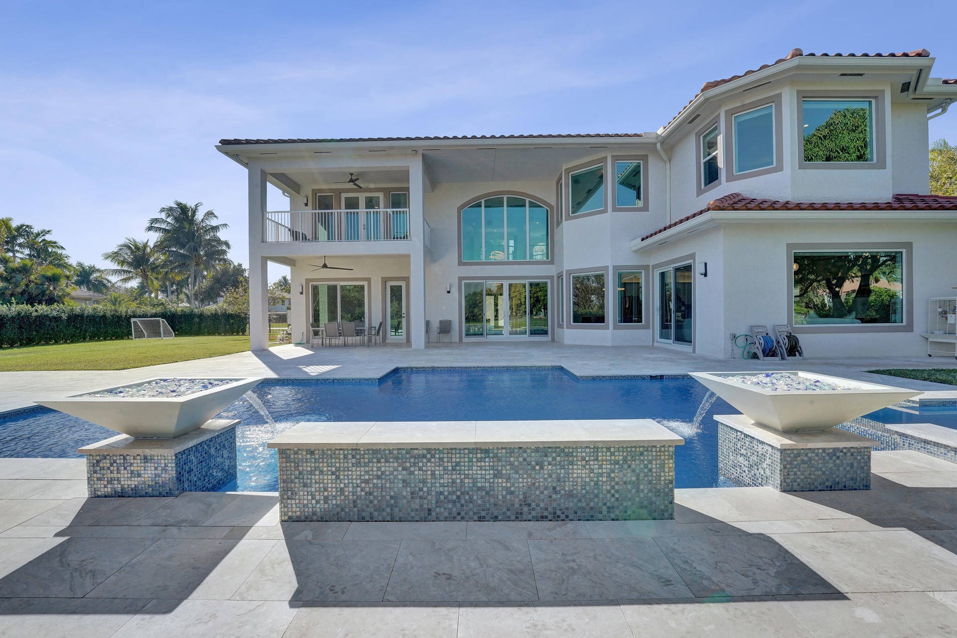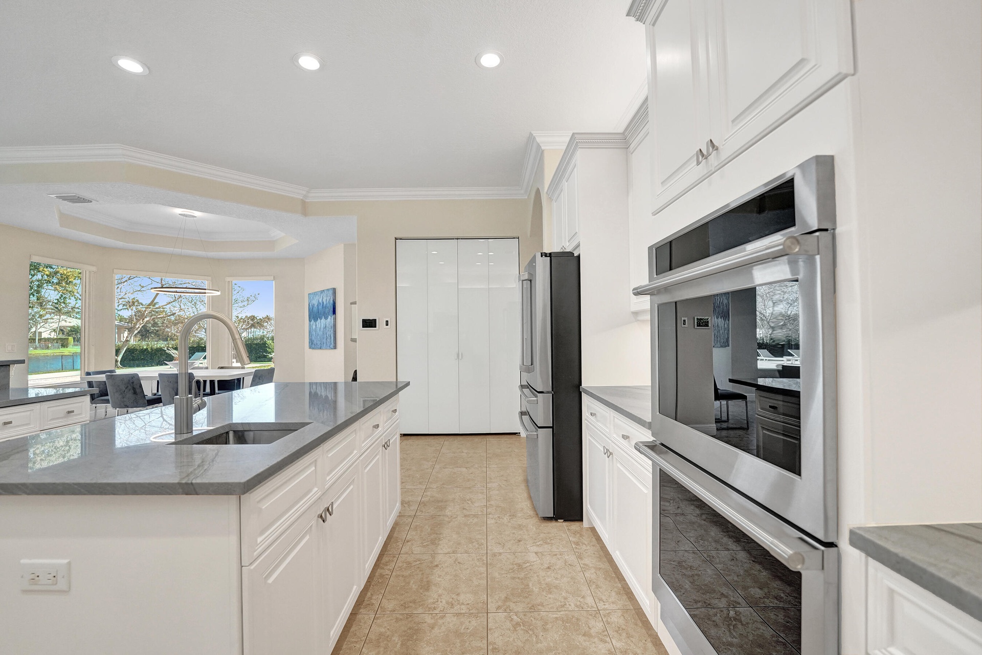 Experience true luxury living in this stunning 5 BR 6 BA estate on a massive (35,000+ SQ FT) lot complete with a brand new sparkling Van Kirk designed saltwater pool and spa, overlooking the lake! Towering floor to ceiling windows draw in an abundance of light to every room. Enjoy the spectacular water views from the moment you enter your home and its grand foyer. The large impressive living room w/ wet bar and the bright kitchen open up to your oasis backyard making this a true indoor-outdoor home, perfect for entertaining! Your immense backyard is surrounded by lush mature fruit trees adding to its tropical feel and lending much privacy. No detail has been spared. New gourmet kitchen with an oversized island & gorgeous marbled Brazilian stone countertops, new Monogram double-oven, smart wi-fi appliances, a walk-in pantry, including the custom led lighting makes for a very light, appealing open kitchen. This expanded Van Gogh model gives you the convenience of a bedroom on the main floor for guests or a live-in nanny. Main level also features a true dedicated substantial home office with large bookcases, plenty of shelving and room for two. Your private dining-room is stunning, with coffered ceilings, a picture window letting in lush, green garden views and light while comfortably seating 12 for dinner parties. New roof and AC. New impact windows. On the second story, enjoy a grand primary BR overlooking the water, his & her separate walk-in closets and a very large spa like bath with whirlpool jacuzzi tub. You have 3 additional bedrooms all with their own en-suite bath, a loft/media room which opens to an expansive covered balcony, overlooking your private backyard water oasis. Living here, you feel like you are on vacation every day! The epitome of Florida lifestyle! Ample consideration for cars here with 2 garages and an extended driveway to fit many more automobiles. Adding to convenience for electric vehicles you have not one but two EV stations. Utilizing modern technology this smart home offers Savant home automation system for integrating lighting, climate, entertainment, security and energy from one customizable interface. Long Lake Ranches is a coveted guard gated community known for its proximity to THE TOP-RATED SCHOOLS in the nation! Amenities include clubhouse, fitness center, tennis courts & basketball court. You are near equestrian trails & the scenic Tree Tops Park and minutes to great dining, restaurants and entertainment. This home provides the perfect mix of luxury, privacy and location.