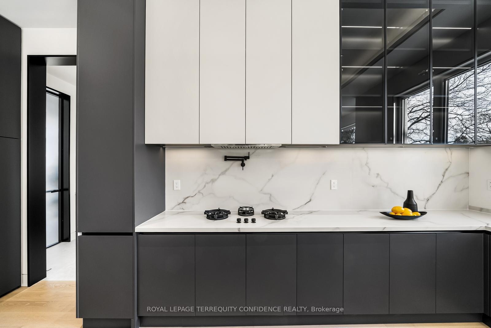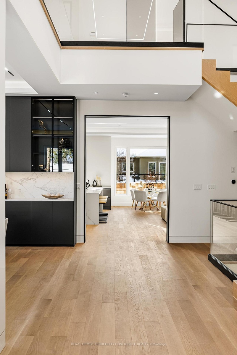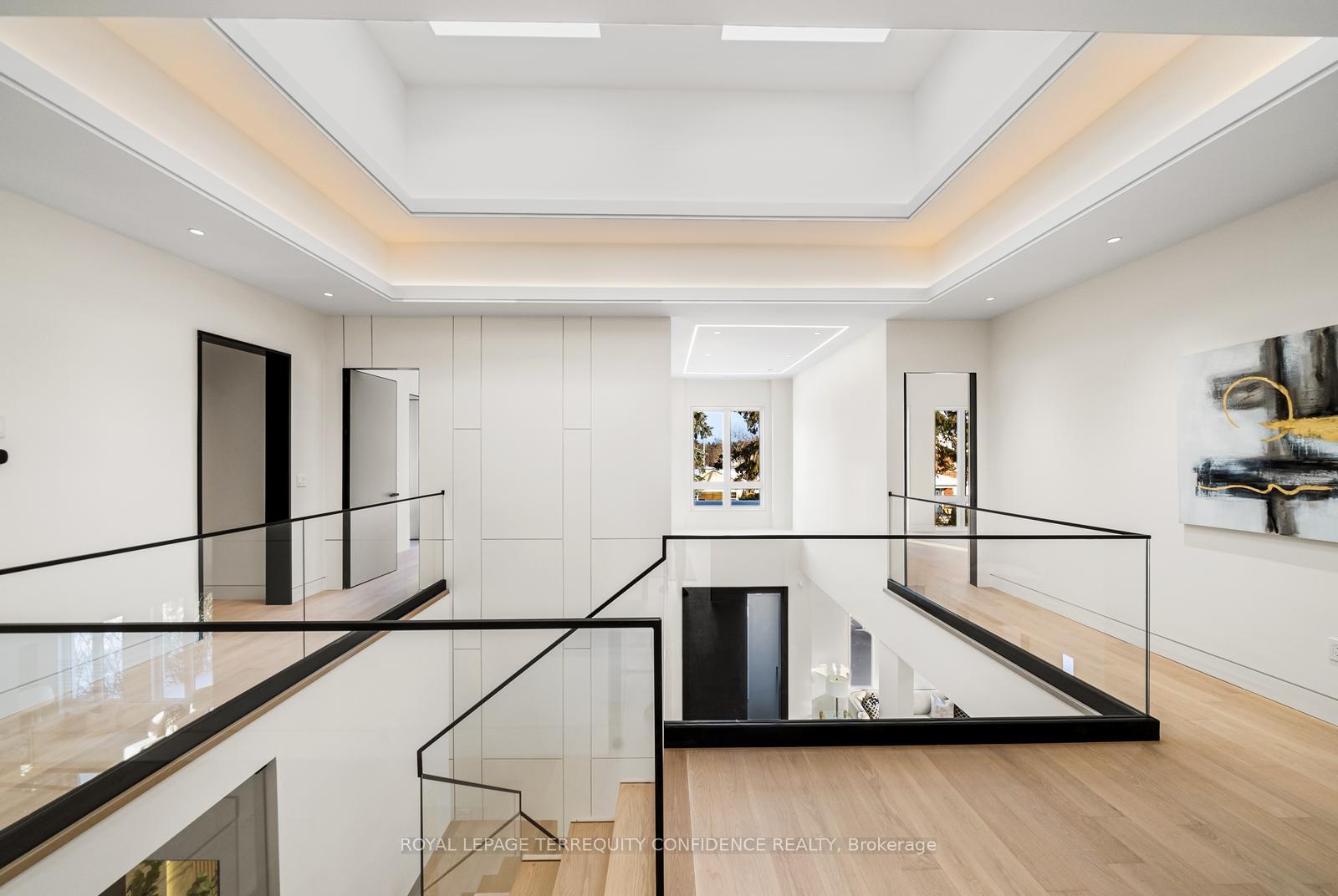 Welcome to a haven of custom-built luxury, ready to be experienced. *Located in the prestigious Mill Pond neighborhood, with only a 3 minutes' drive to Major Mackenzie Hospital.* This magnificent home boasts 5000+ sq ft of above-grade living space, 5+2 bedrooms, 2+1 car garage, high-end kitchen appliances, well-appointed layout, exceptional design, and elegant finishes throughout. Enter to find the stunning main foyer with a soaring 22' ceiling- leading to the main floor with beautiful open-concept living & dining rooms, fully-equipped chef's kitchen with a centre island & built-in appliances, a second/dirty kitchen with kitchen & dining room access, breakfast area, vast family room that walks out to the deck, private office, and functional mudroom with access from the garage. Upstairs, 5 large bedrooms each have their own ensuites; including the serene primary room, with built-in speakers, paneling, fireplace, sizeable walk-in closet, and dazzling 6-piece ensuite with heated floors. The finished basement boasts heated floors, with an enormous recreation room that walks up to the lush backyard, wet bar, built-in speakers, and two additional bedrooms with an ensuite. Find additional custom high-end features throughout: smart mirrors, trimless aluminum doors, aluminum glass doors on cabinets & closets, immaculate ultra-clear tempered glass, sintered stone counters (kitchen), lacquered kitchen cabinets, composite deck, LED pot lights, track lighting & cove lighting throughout, 30' high skylights (from main floor), 11'3" floors on main, 10' floors on second (12' in primary room). HIGHLY convenient location, with only minutes to Yonge St, peaceful parks and ravine, schools, hospital, shops, coffee, market, transit, and more. Discover what it means to truly live in both comfort, and high opulence.