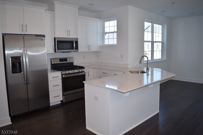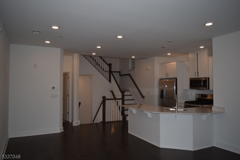 Tri level Townhome in a young complex Open concept living area with high ceilings Kitchen with white shaker cabinets quartz counters, island stainless steel appliances Wide plank wood floors recessed ...
