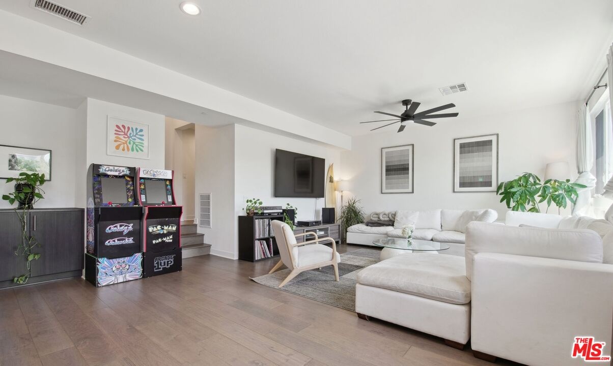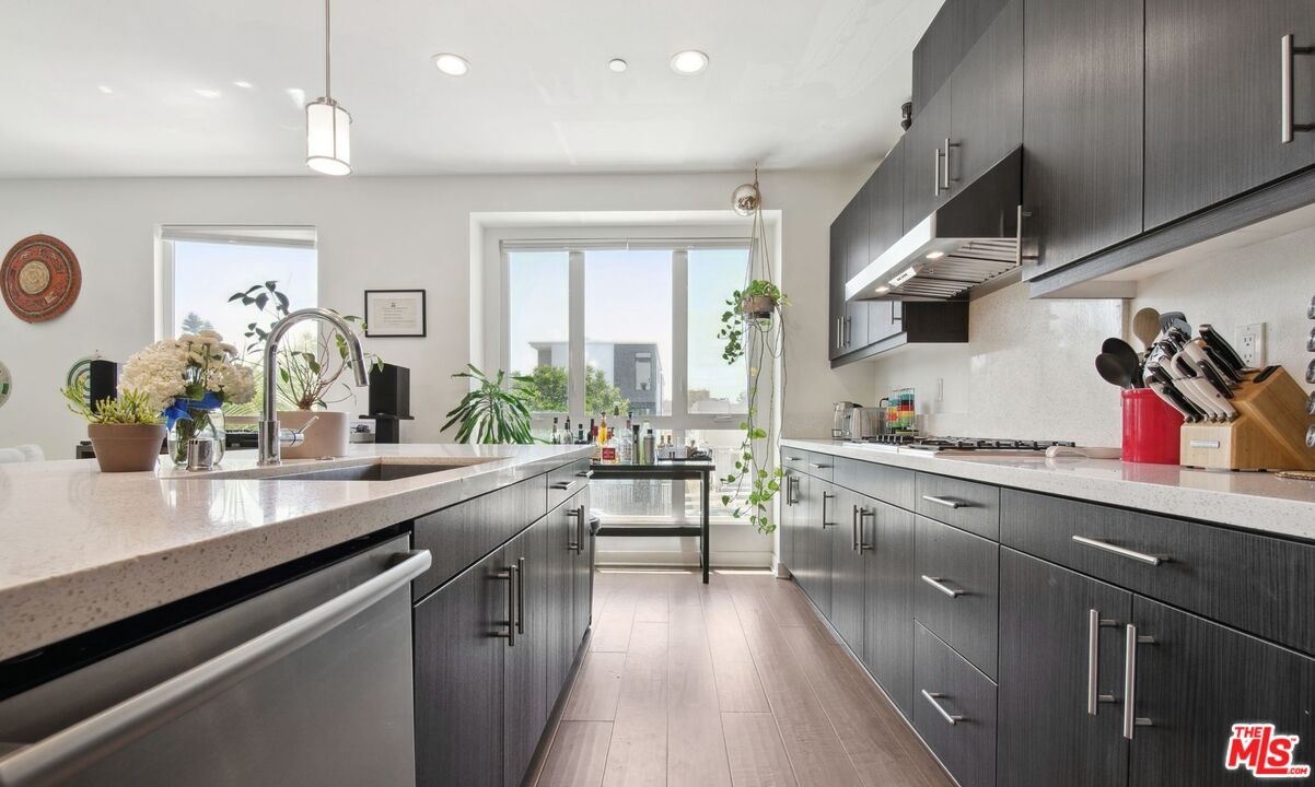 Sun-filled modern residence in the heart of the Hollywood Media District and Melrose This 3-bedroom, 4-bath home spans approx. 2,093 sq ft+ private rooftop - showcasing high end finishes, wide-plank flooring, and open-concept living. The designer kitchen features quartzite countertops, European-style cabinetry, stainless appliances including a double oven, and a large island ideal for entertaining. The spacious primary suite offers a walk-in closet and contemporary bath. Two additional bedrooms and bonus room provide flexible living options. An incredible rooftop lounge offers panoramic city and hill views perfect for sunset gatherings. Additionally, the home include direct-access garage, central HVAC, tankless water heater, double-pane windows, and low HOA. Prime location near Santa Monica Blvd, La Brea, studios, dining, and nightlife.