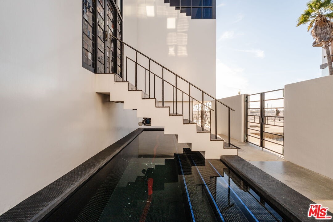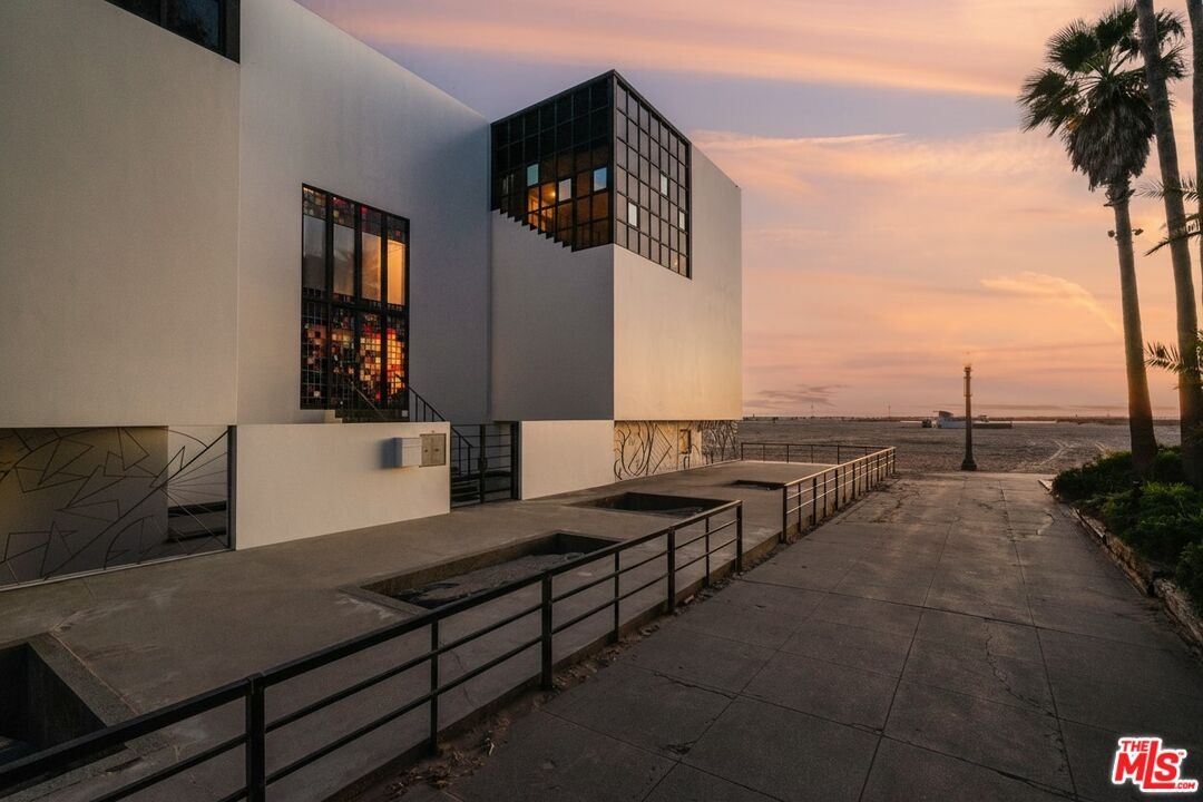 This iconic oceanfront residence in Marina del Rey is the epitome of premier coastal California living. Tucked within the ultra-private Marina Peninsula enclave, this extraordinary home delivers unrivaled serenity on a secluded stretch of the beach while staying close to the vibrant pulse of Venice Beach. Created by the renowned sculptor Robert Graham in close collaboration with dozens of iconic 1980s artists, this home integrates their extraordinary site-specific works throughout. The result is an irreplaceable living artwork, famously featured on the cover of Architectural Digest - a breathtaking fusion of ocean energy, marina views, and modern luxury. Enter through stunning stained-glass doors into open living and dining spaces bathed in natural light and filled with gentle sea breezes. A soaring two-story window with custom bronze accents frames panoramic beach views, creating heavenly tranquility within earshot of the ocean waves. The entertaining kitchen flows seamlessly into the dining room, anchored by a striking hand-blown Dale Chihuly chandelier, while a full secondary kitchen is tucked away discreetly in the back for effortless service and preparation. Ascend the architecturally pleasing staircase to a private office with tranquil ocean views and exquisite built-in cabinetry. Beyond lies the primary suite, a spacious and serene retreat with expansive floor-to-ceiling windows that invite abundant natural light and sweeping ocean vistas from sunrise to sunset. It includes refined etched Waterford crystal accents, automated shades, generous walk-in closets, a luxurious sauna-equipped bath, elevator access, and direct entry to the rooftop. The home is thoughtfully divided into two wings: the east wing houses the guest bedrooms, offering privacy and comfort, while the captivating secondary living room features a waterfall skylight, overhead mural, and angled marble floors. The private rooftop offers sweeping panoramas from Palos Verdes in the south to Malibu to the north across the Marina channel and Pacific to the west, all further enhanced by custom mosaics. Additional highlights and luxury amenities include a lower level with an informal theater or gym, powder room, and 4-car garage; a 4-stop elevator; mosaic lap pool; whole-house filtration; central vacuum system; and generator. Perfectly balancing the best of California beach charm with effortless access to world-class shopping, dining, entertainment, and travel, this home weaves an irresistible combination of art, nature, and sophisticated design into vibrant daily life. Your oceanfront sanctuary awaits.