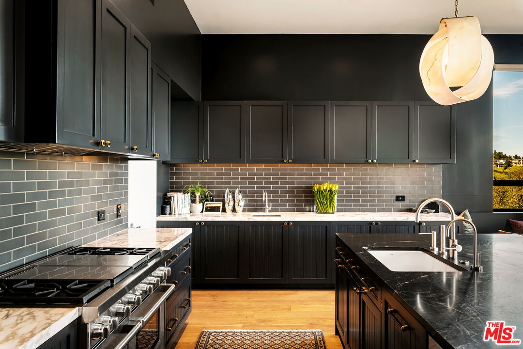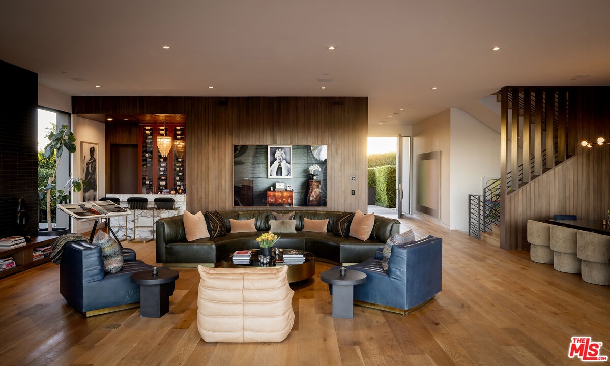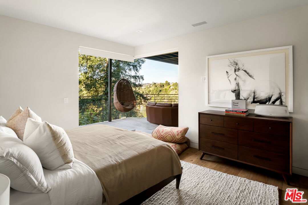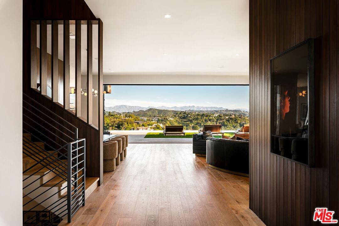 Masterfully conceived by HEH in collaboration with Von Studnitz Architects and Studio Preveza, this exceptional furnished residence was designed as the personal home of an experienced developer/owner, one who truly did not miss a beat. Perfectly positioned at the end of one of Bel Air's most coveted and private view streets, the property offers rare privacy paired with breathtaking scale and presence. Behind gates and mature landscaping, the home reveals sweeping 270-degree views spanning Downtown Los Angeles, city lights, canyons, and the Pacific Ocean. Mornings begin with a beautiful sunrise from the primary suite, while evenings unfold with dramatic sunsets from both the front and rear decks, creating an ever-changing backdrop of light and atmosphere throughout the day. Inspired by the refined, effortless aesthetic of James Perse, the residence captures the essence of elevated California living modern yet warm, sophisticated yet relaxed seamlessly blending indoor and outdoor spaces. Impeccably finished, the open-concept floor plan is designed to frame panoramic city and ocean views from nearly every major room, complemented by rich, natural materials throughout. The layout includes a private first-floor bedroom suite thoughtfully separated from the main living areas, along with a dedicated office ideal for an owner constantly on the move. There are six spacious bedroom suites, including a luxurious primary retreat with a sitting room and private balcony, as well as subterranean guest quarters with a separate entrance, offering privacy and flexibility. Every detail reflects intention and experience from the private home theater and beautifully scaled living spaces to the seamless indoor-outdoor entertaining areas. Outdoor sitting and dining zones overlook a curated vegetable and herb garden, surrounded by citrus trees, French lavender, and Tuscan rosemary evoking a true Italian villa sensibility. The result is a rare fusion of California ease with a European, Italian-inspired lifestyle that feels romantic, timeless, and deeply livable. The outdoor experience is anchored by a 40 foot infinity-edge pool, expansive decks, and serene hillside gardens, creating a private urban oasis. Additional amenities include a state-of-the-art kitchen, fitness studio, three-car garage, and a wide, flat motor court accommodating three large SUVs or low-profile sports cars with ease. Designed with precision, warmth, and timeless restraint, this is a furnished modern architectural residence in one of Bel Air's most desirable locations a property that must be seen in person to fully appreciate.
