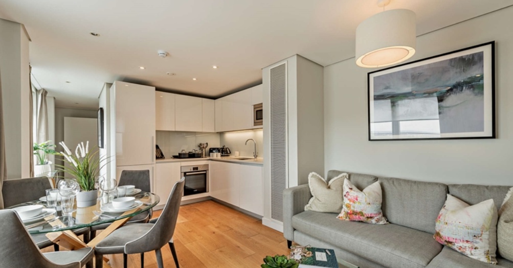 Spanning approximately 912 sq ft, this stunning interior-designed home offers bright and contemporary living throughout. The spacious reception room seamlessly connects to a sleek, modern open-plan kitchen fitted with high-quality appliances and stylish finishes — ideal for both entertaining and relaxing.