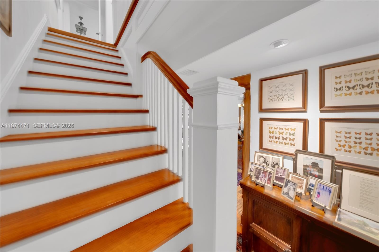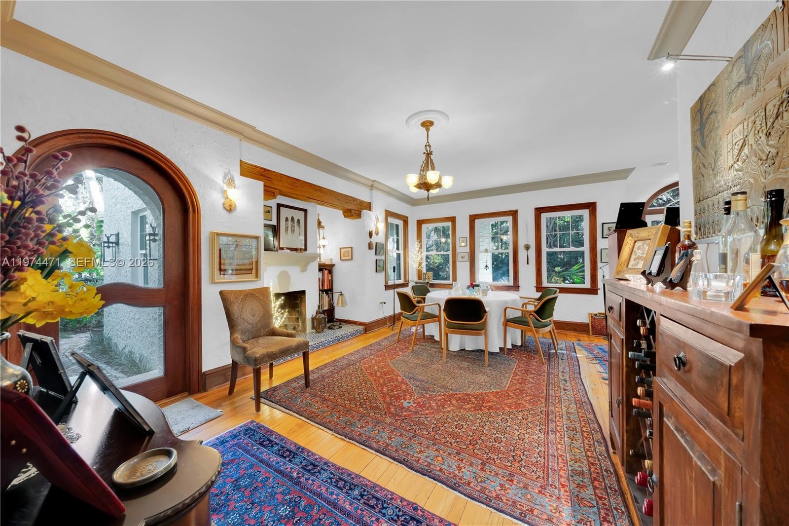 Built in 1925 and offered for the first time since 1988, the home has been meticulously rebuilt and fully permitted to current code, blending modern resilience with historic touches such as a wood-burning fireplace. Renovations by architect and engineer Gerald F. DeMarco focused on strength and hurricane durability. All impact windows and doors are hurricane-rated, electrical has been updated, and the property features high-efficiency AC systems, tankless water heaters, and two updated ADT alarm systems.