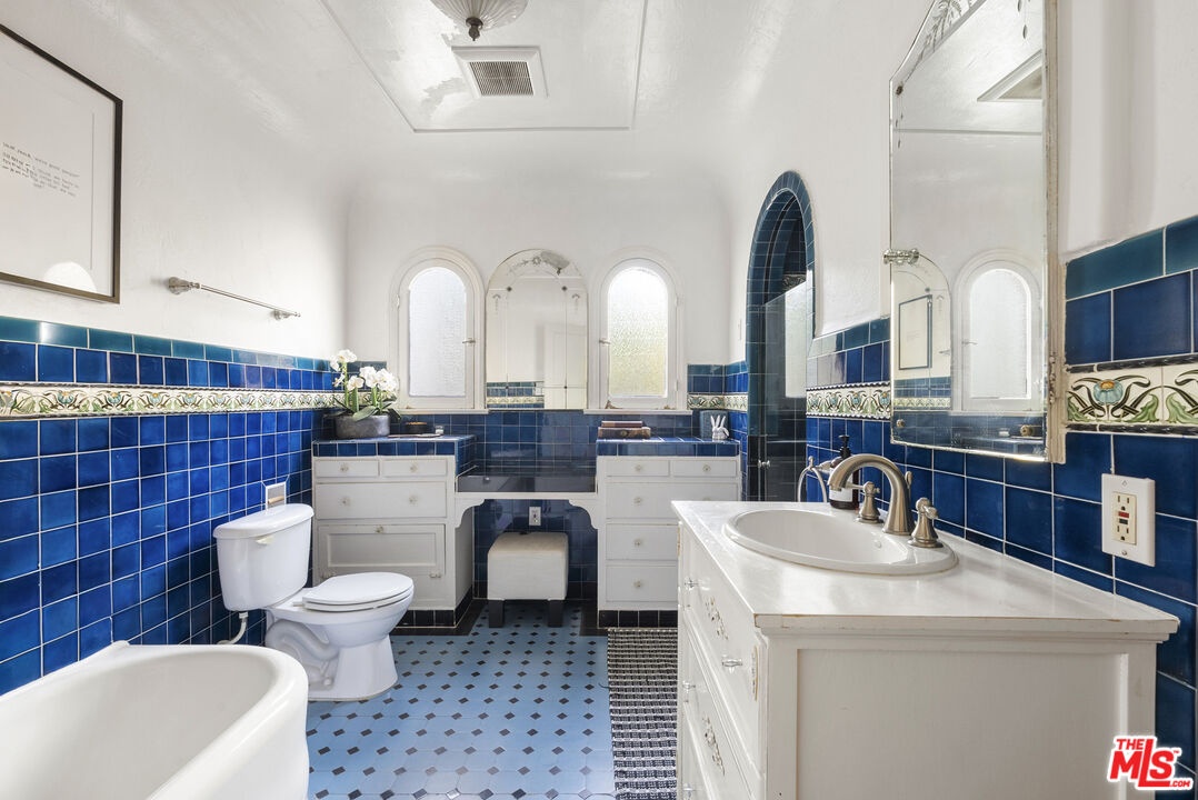 Stunning, fully renovated Spanish-style home in the heart of Beverly Grove, offered fully furnished. This private, fully hedged and gated property seamlessly blends authentic Spanish architectural charm with modern luxury throughout. A picturesque gated courtyard welcomes you with a romantic stacked-stone koi pond. Inside, the living room features tall ceilings, a large floor-to-ceiling window that brings in abundant natural light, and a beautiful fireplace. The dining room offers French doors that open to a private patio, creating effortless indoor-outdoor flow. The custom-remodeled kitchen is equipped with top-of-the-line appliances, custom built-ins, and a wonderful breakfast nook, designed for both beauty and function. The sensational primary suite is complemented by rich hardwood floors, coved ceilings, and a luxurious primary bathroom. The home opens to a professionally landscaped backyard retreat complete with a stunning pool, spa, and outdoor dining area. A large cabana/updated ADU has been transformed into a fully equipped gym with a steam room, sauna, and versatile flex space. Gated for ultimate privacy and ideally situated on one of the most coveted streets between The Grove and The Beverly Center, just moments from the shops and restaurants of 3rd Street, this extraordinary residence offers refined living in the very heart of the city.