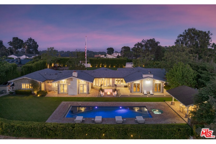 Set behind gates along coveted Dume Road, this private Point Dume estate offers sweeping ocean, mountain, and sunset views across expansive resort-like grounds. A circular driveway, manicured hedges, and broad grassy lawn create a classic arrival with exceptional privacy and parking for 10+ vehicles.A covered entry opens to a light-filled foyer with high ceilings, wood floors, and immediate ocean views. The main living areas feature vaulted wood-beamed ceilings, French doors, and seamless indoor outdoor flow to patios, lawns, and pool terraces. The family room and formal dining room with bar area both open to the backyard, while a lower living room with stone fireplace provides an additional gathering space. A dedicated office library with rolling ladder shelving offers a quiet retreat.The chef's kitchen includes a large stone island with seating, Viking 8-burner range and double ovens, Sub-Zero refrigeration, Bosch dishwasher, Wolf microwave, Miele coffee system, wine refrigeration, walk-in pantry, and a bright breakfast nook overlooking the front gardens.The primary suite features vaulted ceilings, fireplace, French doors to the grounds, and a spa-style bath with marble double vanity, soaking tub, oversized shower, bidet water closet, and expansive custom walk-in closet. Additional bedrooms include lofted sleeping spaces, walk-in closets, and en-suite or Jack-and-Jill baths. A bonus room with bath off the garage offers flexible use as gym, studio, or office.Outdoors, the property functions as a private compound. A large rectangular pool and spa are surrounded by brick terraces, lawns, firepit lounge, outdoor heaters, and entertaining patios. A separate guest house with bath and outdoor shower sits beside a barbecue pavilion with grill and refrigeration. Meandering garden paths, citrus trees, apple tree, turf seating areas, sports court, chicken coop, and mature landscaping enhance the grounds.Additional features include a 3-car garage currently outfitted as a gym, central vacuum, water filtration system, iPort smart home system, Nest climate control, exterior cameras, and gated intercom entry.Includes coveted Riviera 3 beach key access to Point Dume's private beach gate.Located moments from beaches, trails, and the Point Dume Village, this rare offering combines scale, privacy, and classic Malibu coastal living in one of the area's most sought-after neighborhoods.