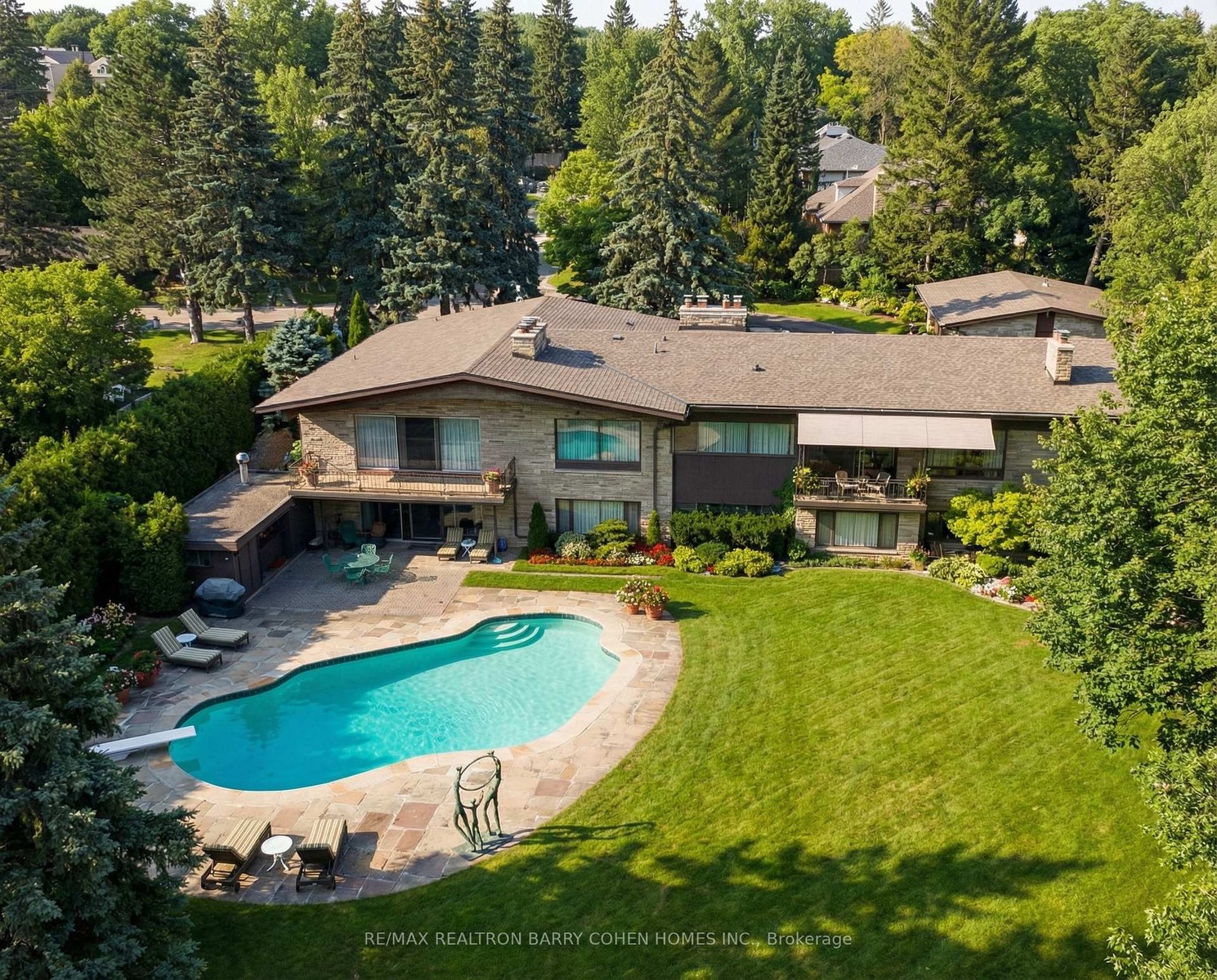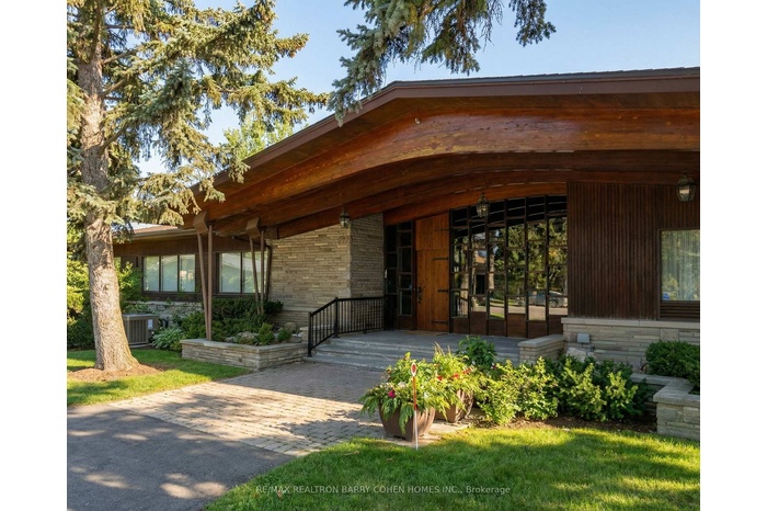 Architecturally Significant Custom Residence Features Sculptured Wood Beamed Ceilings and Open Concept Living. This Residence Stands As A Testament To Visionary Design, Timeless Craftsmanship, And Enduring Elegance. Breathtaking Tree-lined 1-Acre+ Ravine Lot. Surrounded By Stunning Multi-Million Dollar Custom Estates On A Cul-De-Sac In The Exclusive Banbury-Don Mills Neighbourhood. Move Right In To This Sprawling Bungalow, Re-Imagine And Customize Or Build Your Dream Home. Boasting Stunning Beamed Vaulted Ceilings And Picture Windows Throughout, Capturing Undisturbed Views Of The Rear Gardens, 5 Fireplaces Including A Striking 3-Sided Fireplace In The Grand Foyer, A Main Floor Primary Retreat Plus 4 Additional Bedrooms, 7 Bathrooms, And Lower Level Walkout From The Spacious Rec Room With Wet Bar To The Rear Gardens Featuring Majestic Lawns And Inground Pool. The Estate's Exterior Features Natural Stone Combined With Rich Wood Panelling, Exquisite Landscaping, Circular Private Drive, 3-Car Heated Garage and Greenhouse, Plus Multiple Terraces Surrounded By Mature Trees And Lush Landscaping. This Highly Sought-After Location Borders Nature Trails & Parkland Minutes From Granite Club, Top-Rated Golf Courses, Renowned Public And Private Schools, Shops And Eateries. Note: Frontage Is Based On Street Front And Abutting Neighbour's Boundary.