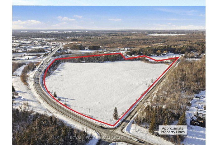 An exceptional opportunity to acquire approximately 30 acres of prime commercial land in the thriving town of Kemptville, one of Eastern Ontario's fastest-growing and most strategically positioned communities. Ideally situated just seconds from Highway 416, this property offers outstanding exposure, seamless highway access, and tremendous long-term development potential within a rapidly expanding corridor. The land is currently being positioned for Rural Commercial Industrial (C6) zoning, permitting a wide range of uses including commercial school use, lumber yard, recreational vehicle sales and service, service outlet, warehouse facilities, office space, and other commercial and industrial applications, creating exceptional flexibility for phased development, owner-occupied operations, or investment-driven projects tailored to market demand. Surrounded by steady residential growth, expanding infrastructure, and increasing commercial activity, this offering is ideally suited for developers and investors seeking scale, visibility, and strong future upside. Large, contiguous parcels of this size with immediate highway access are increasingly rare in the region, and the current owners have completed a proposed survey to subdivide the land into eight individual parcels, providing a buyer the opportunity to finalize the process and unlock additional value or keep it as one large parcel. Opportunities of this scale and positioning rarely come to market in this corridor.