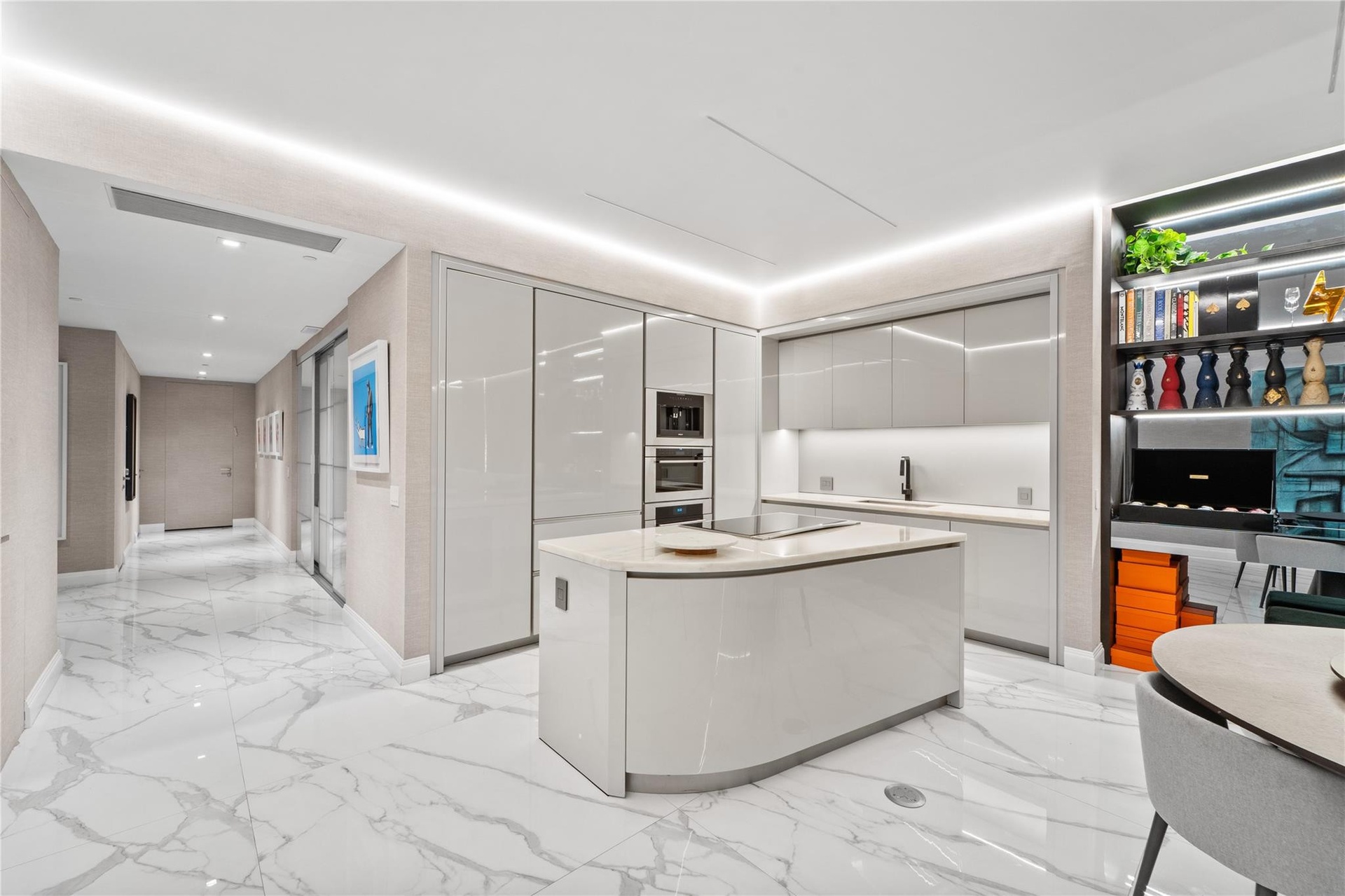 Located in the most desirable line of the 56-story Residences by Armani/Casa tower, rising 649 feet above the shoreline, this exceptional home reflects the refined vision of Giorgio Armani in collaboration with architect César Pelli. This contemporary three-bedroom plus den, three-and-a-half-bath residence offers 2,716 square feet of living space, featuring marble flooring throughout, custom closets, and two private balconies with unobstructed views of the Atlantic Ocean, Intracoastal Waterway, and city skyline. Residents enjoy luxury amenities curated by Armani/Casa, including a private movie theater, cigar lounge, wine cellar, game room, heated pool and spa, poolside food and beverage service, oceanfront restaurant, beach services, and a fully equipped fitness center. Ubicada en la línea más privilegiada de la torre Residences by Armani/Casa, de 56 pisos y 649 pies de altura, esta exclusiva propiedad refleja la visión sofisticada de Giorgio Armani en colaboración con el reconocido arquitecto César Pelli.Esta residencia contemporánea de tres dormitorios más den y tres baños y medio ofrece 2,716 pies cuadrados de elegantes espacios interiores, con pisos de mármol, closets personalizados y dos balcones privados. Disfruta de vistas directas y panorámicas al Océano Atlántico, al Intracoastal Waterway y al skyline de la ciudad.Los residentes cuentan con amenidades de primer nivel, que incluyen cine privado, salón de cigarros, cava de vinos, sala de juegos, piscina climatizada con jacuzzi, servicio de alimentos y bebidas junto a la piscina, restaurante frente al mar, servicios de playa y un moderno gimnasio totalmente equipado.