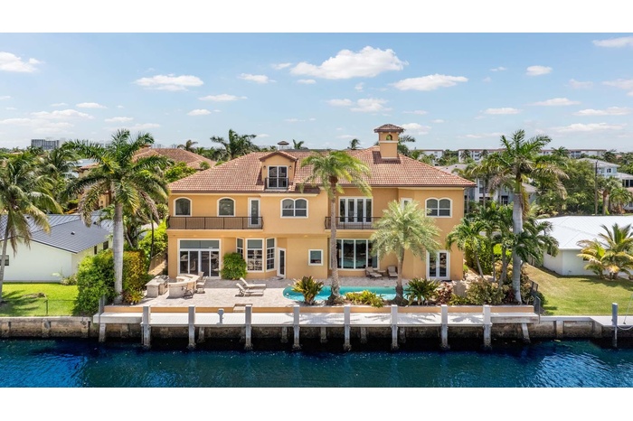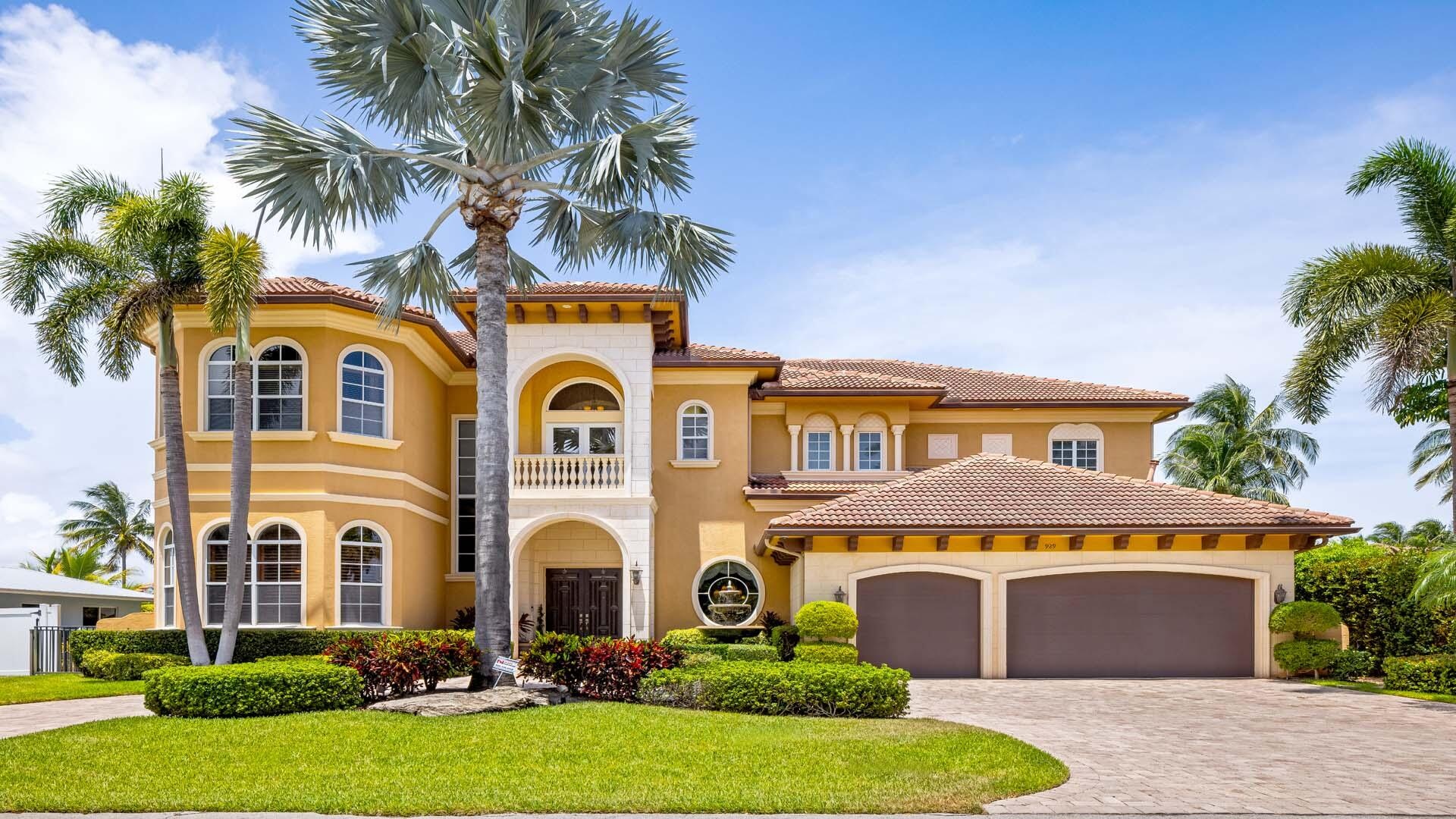 Welcome to 929 Banyan Drive, a home that blends timeless craftsmanship with the ease of waterfront living. Set on 90 feet of deepwater frontage in the desirable Delray Beach enclave of Tropic Isle, this substantial residence offers five bedrooms plus a private office, three-car garage, and a dedicated home theater. The well-appointed kitchen, designed for both function and style, opens seamlessly to a spacious family room, creating the heart of the home. Expansive windows and outdoor living areas frame tranquil water views, while solid construction and thoughtful design ensure comfort, privacy, and lasting quality. Perfect for boating, entertaining, or simply relaxing by the water, this home offers a refined yet welcoming lifestyle in an exceptional location.