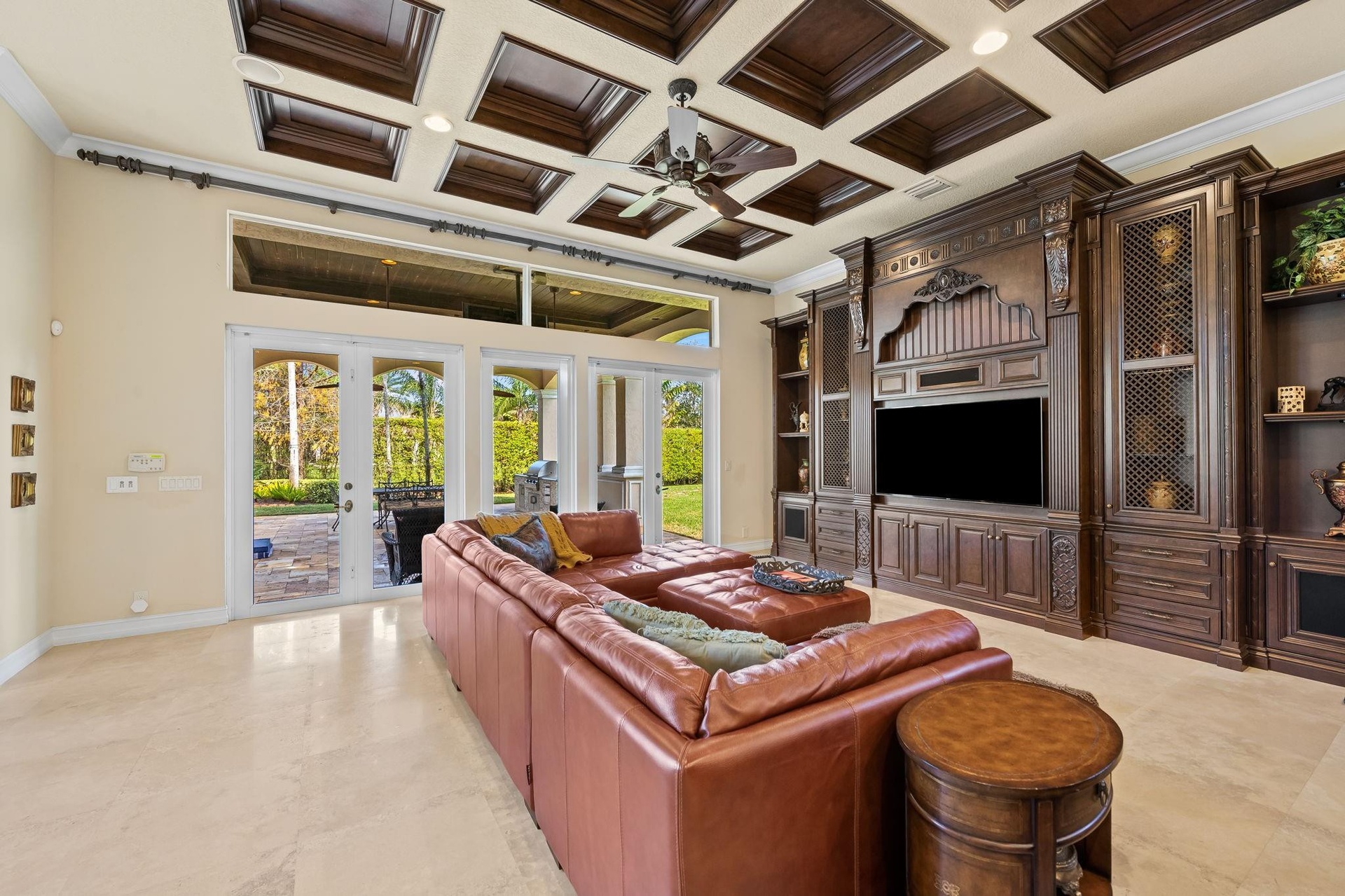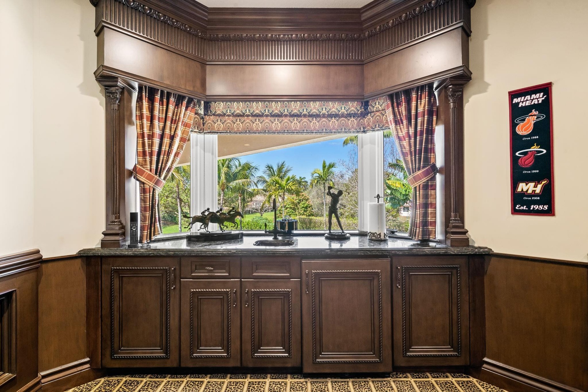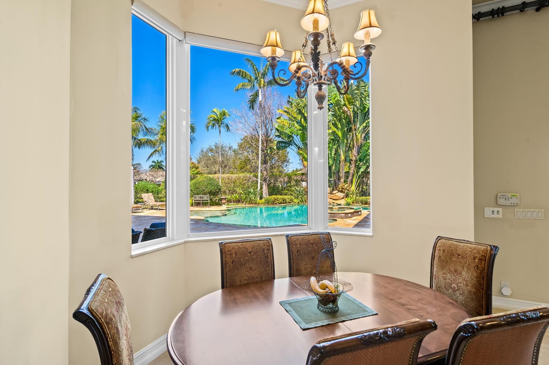 Stunning luxury estate with impact windows and doors, a first-floor primary suite, and private maid’s quarters with separate entrance. The spa-inspired primary bath features dual shower heads and a custom walk-in closet, while secondary bedrooms offer en-suite baths, including a junior suite ideal for guests. The chef’s kitchen includes a Sub-Zero refrigerator, Wolf gas range with double ovens, granite countertops, custom cabinetry, and a walk-in pantry. Coffered ceilings and a media room enhance the home’s appeal. Outdoors, enjoy tropical landscaping with lime, lemon, and orange trees surrounding a heated pool and cabana bath. Recent upgrades include newer A/C units, updated water heaters, and an in-ground Generac generator with a buried tank. A rare blend of luxury and comfort.
