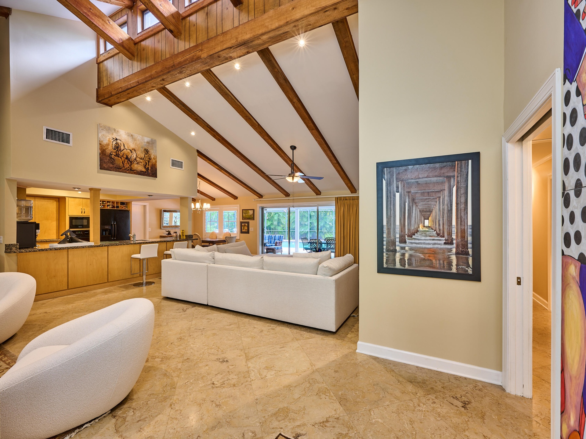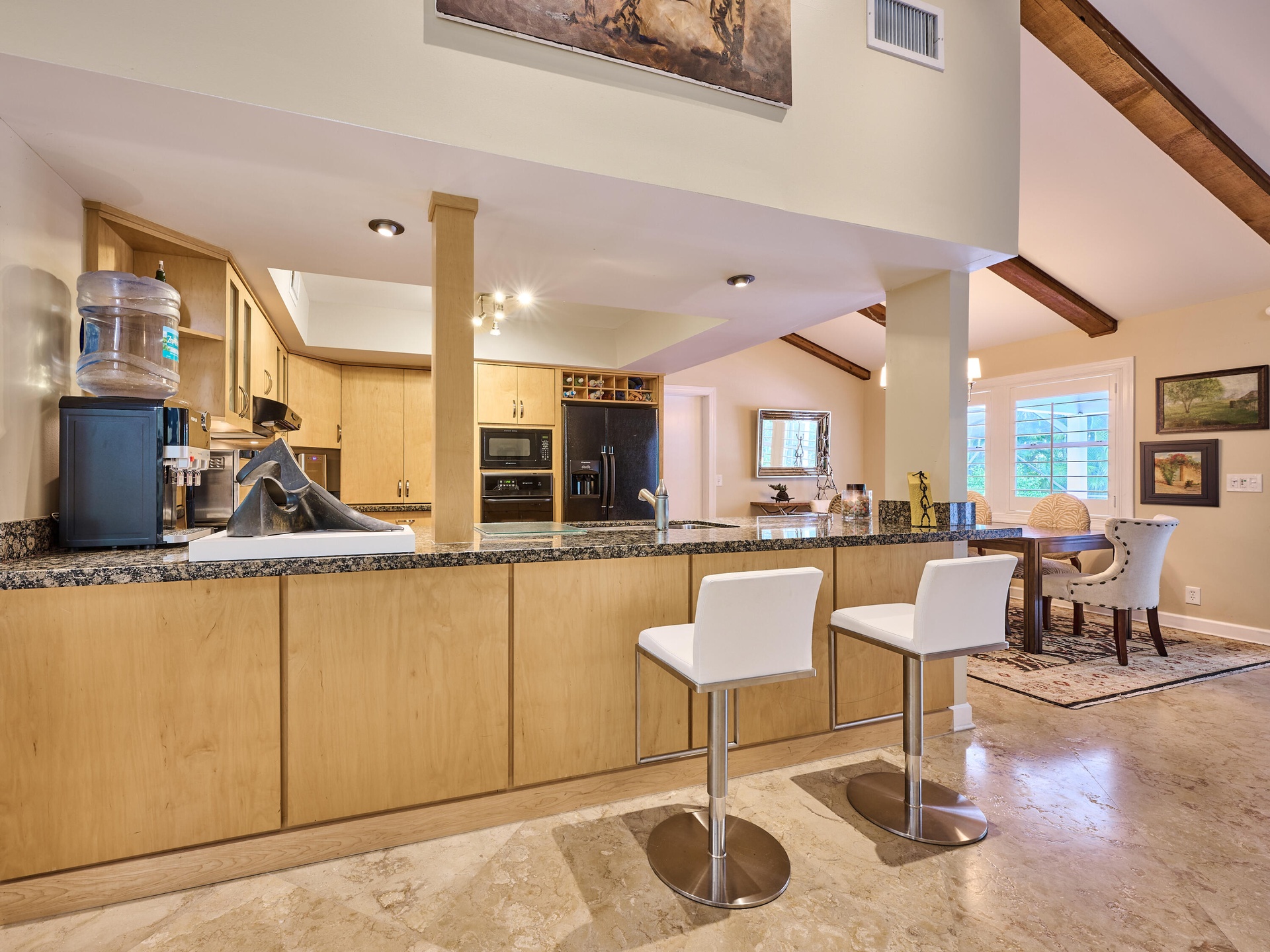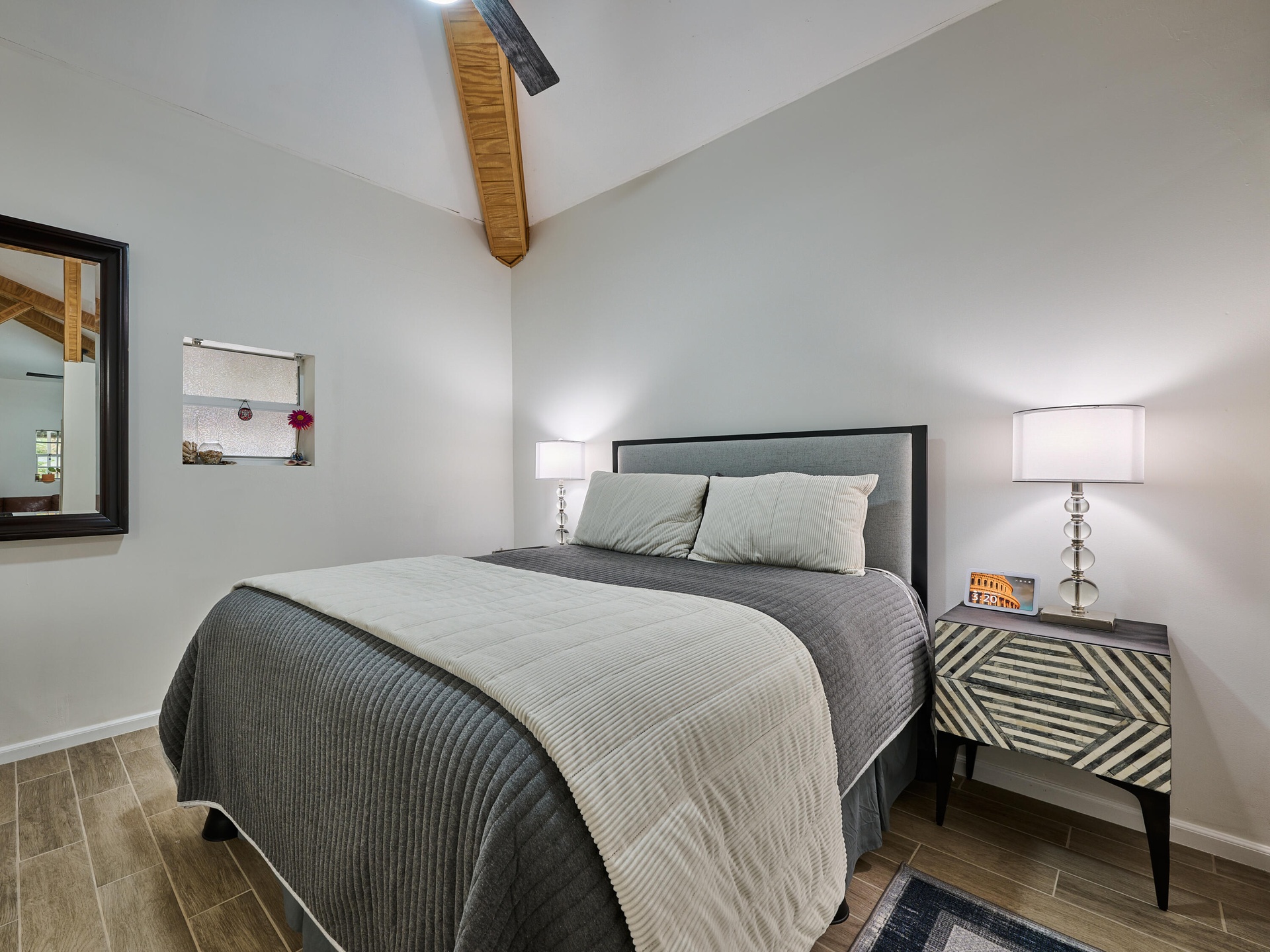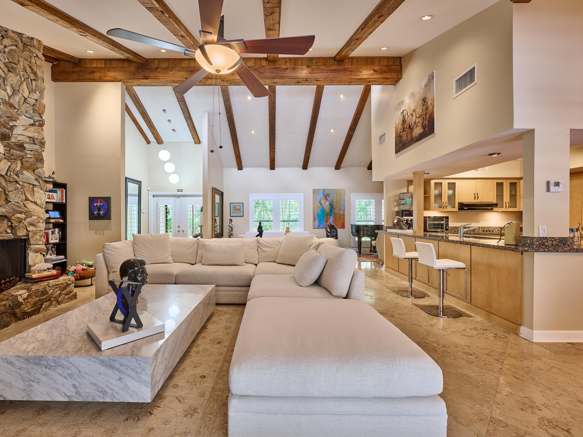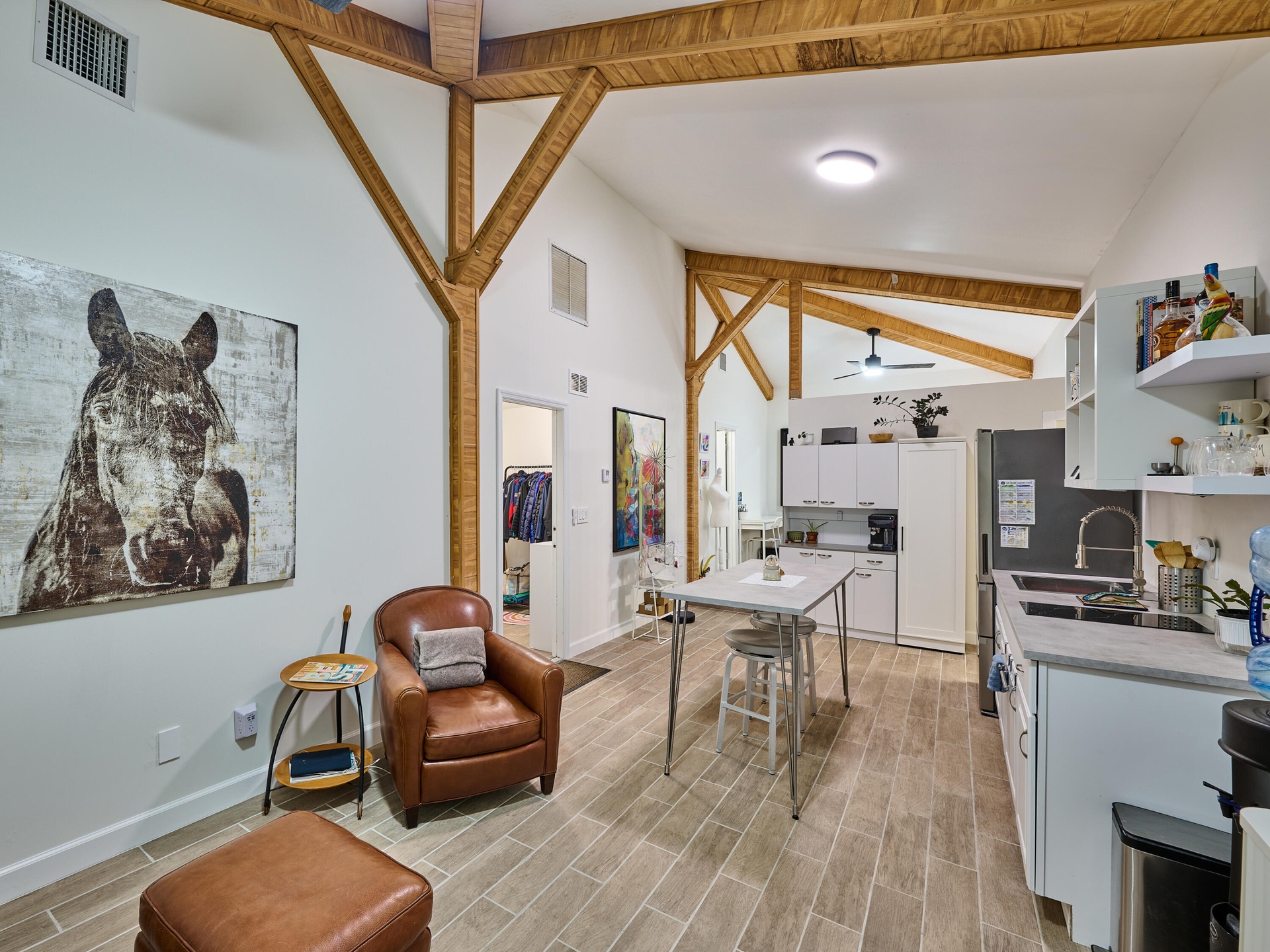 This mid century modern home offers 3 beds, 3 baths, and 2,182 sq ft with vaulted ceilings, clerestory windows, tile floors, fireplace, and updated kitchen with granite. Two ensuite baths add comfort. Step outside to a screen enclosed pool and fenced 4.54 acres. The 11,000 sq ft stable includes a 21 stall center aisle barn with wash racks, tack room/office, 4 studio apartments, plus additional 3 stall barns. Ride in your 14,000 sq ft training arena with regulation footing and huge ceiling fans. Roof new in 2024. No HOA. Imagine waking up to the neighing of horses and poolside coffee before a day of riding in your own backyard. Are your children ready for horses at home? -Reach out today for you private tour.