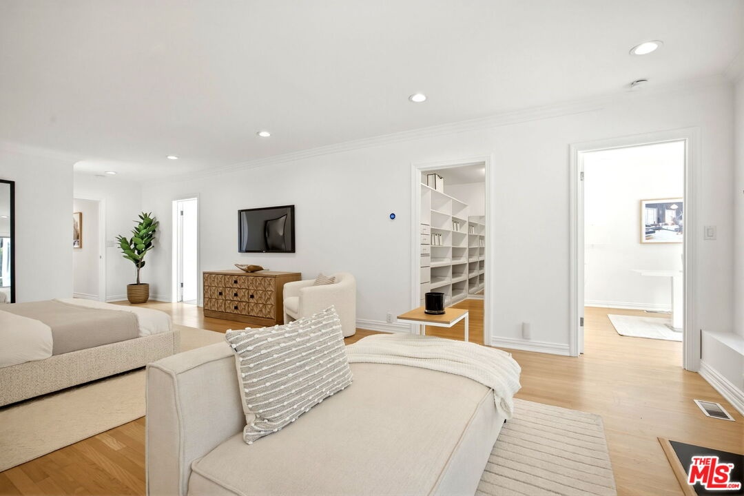 Unique Single-Story Contemporary luxury living home. 4 Bedroom, 3 baths plus an office in the most desirable location. Live amongst celebrities just minutes from the gated Beverly Park Estates & near the iconic Beverly Hills Hotel. Renovated w/ the finest materials. Welcome entry, magnificent high ceiling w/ barn beams, exquisite open dining & family room lead to walls of glass that open up to a covered patio, very spacious & private flat paradise backyard w/ sparkling pool, built-in wood burning barbecue & pizza oven. Perfect indoor/outdoor living & great for entertaining. Stunning new chef's kitchen w/ Viking stainless-steel appliances & top-of-the-line imported Italian cabinets. Laundry room w/ sink & lots of cabinets. Grand primary suite w/ two separate dual walk-in closets and private office. Primary bath w/ jetted spa tub & separate large shower w/ double sink. Three additional spacious bedrooms & baths. Warner Avenue Elementary school district!