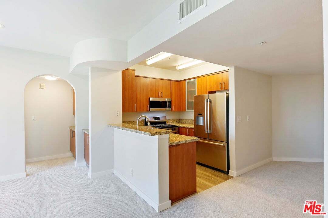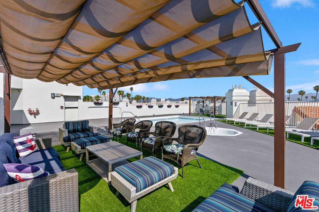 Lowest Priced 2-bedroom in Gramercy Place and also one of the larger layouts in the building. West-Facing exposure brings in gorgeous afternoon sunlight, filling the living spaces with warm natural light. The spacious living room features a fireplace and opens to a private west-facing balcony through a large sliding glass door, with views of the hills to the north and city lights to the south. Recessed lighting throughout enhances the bright, open feel of the home. Freshly painted with new carpeting installed in February 2026, the unit is beautifully presented and ready for its next owner. The split floor plan provides excellent separation between the bedrooms, each with its own full bathroom ideal for guests, roommates, or a home office while maintaining privacy. The primary suite includes a walk-in closet, and an additional walk-in closet off the entry offers valuable extra storage. Built-in cabinetry outside the primary suite and second bedroom provides even more storage rarely found in comparable units. The dining area features a striking chandelier and opens to the kitchen, which includes stainless steel appliances, granite countertops, a gas range, generous counter space, a breakfast bar, and ample cabinetry. Gramercy Place is a well-maintained building offering a full set of amenities. Residents are greeted by a generous lobby with seating areas and access to the mail room and elevators. Each floor has its own laundry room, and the building is staffed with a 24/7 security guard. The fully outfitted fitness center includes a wide range of equipment, two saunas, and a shower. The rooftop amenities are a standout feature, with a pool, spa, expansive sundeck with lounge chairs, covered seating area, outdoor dining table, bathroom, and sweeping city views.Two tandem parking spaces are included in the secured garage, along with guest parking for visitors.Located just north of Wilshire Boulevard in Hancock Park near the Wilshire/Western station, with convenient access to H Mart, restaurants, cafes, and everyday services. Close to Larchmont Village, Downtown Los Angeles, and the Westside. Please check out the Matterport Tour!