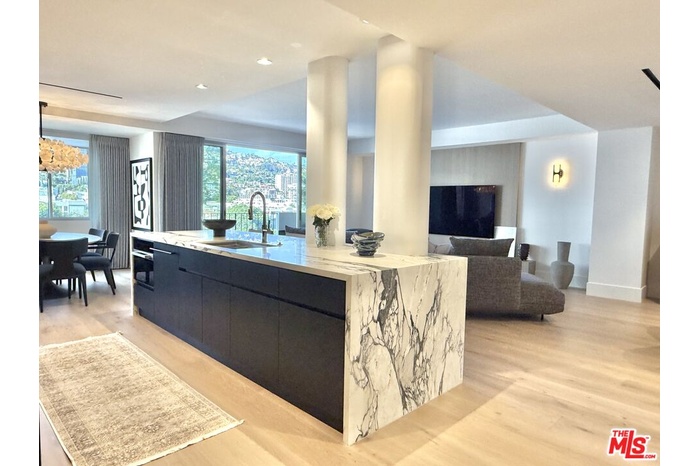 Stunningly Remodeled View Residence at Doheny Plaza!! This completely reimagined residence showcases the finest materials and craftsmanship throughout. Every inch has been thoughtfully redesigned, featuring imported Italian marble countertops, Miele appliances, and a seamless open-concept floor plan that captures breathtaking panoramic views of the Santa Monica Mountains and Hollywood Hills. Enjoy unforgettable moments from the kitchen or dining area while taking in the sweeping vistas that frame the Hollywood Hills skyline. The home is finished with European wide-plank oak hardwood floors layered over soundproofing underlayment, ensuring quiet sophistication. Additional highlights include brand-new double-paned sliding glass doors and windows, providing superior comfort, energy efficiency, and an abundance of natural light. Every detail has been perfected from the elegant lighting to the refined finishes creating a space that feels both modern and timeless. Situated just moments from the Beverly Hills Flats, this residence offers effortless access to ultra-fine dining, world-class shopping, and the vibrant energy of West Hollywood. Doheny Plaza itself has undergone a complete transformation, now standing as one of West Hollywood's most iconic and sought-after luxury buildings an Uber-chic address for those who demand the best in design and lifestyle.