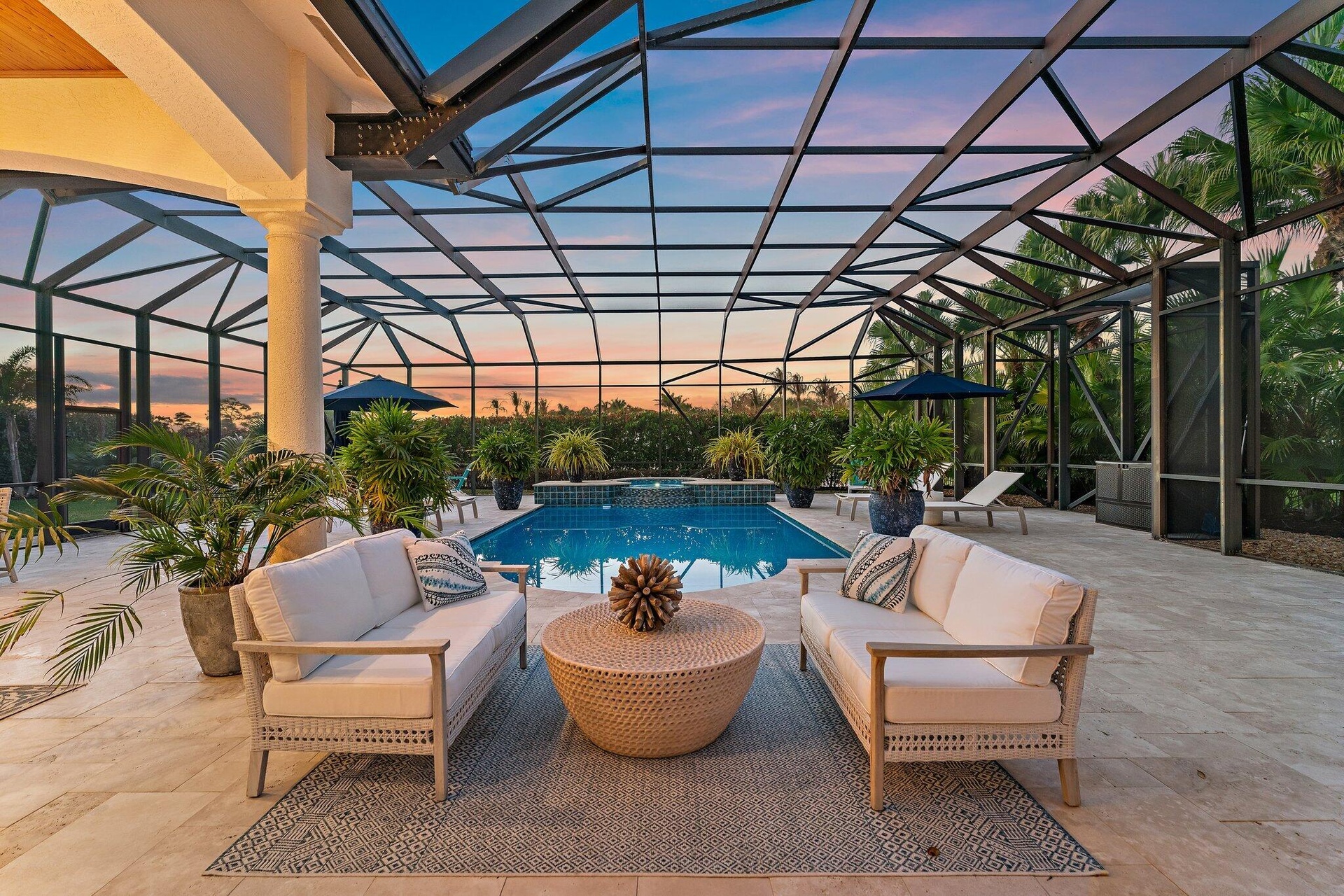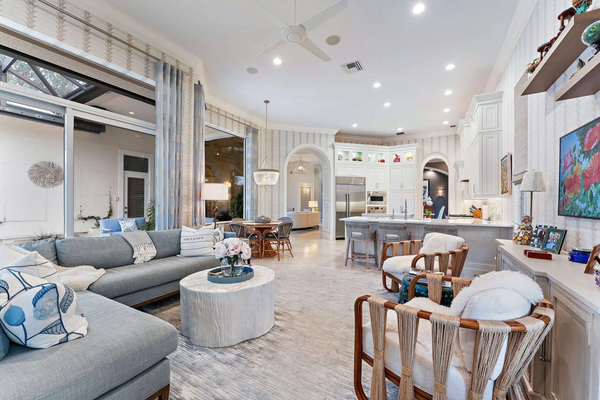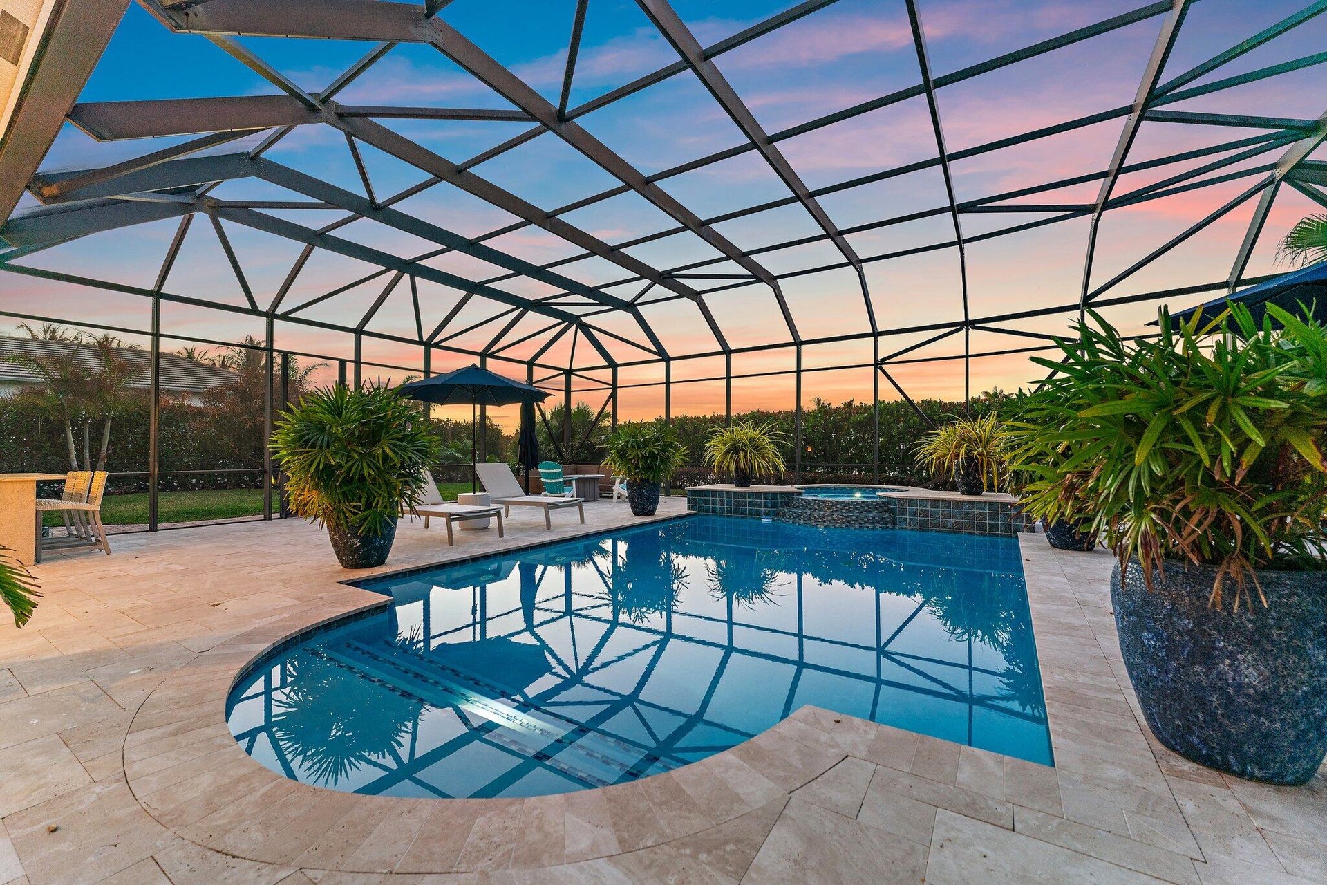 This is the one! An amazing transformation that took place in 2023/2024. New Roof, impact windows & doors and whole house generator. Complete decorator remodel of the entire home. Each room thoughtfully designed to offer a sophisticated serene environment. Large primary with sitting area and oversized bath. An additional 1/2 lot combined on title provides endless opportunity. Extra garage, guest house or just the beautiful garden it is now. The 2500 sq. ft. outdoor space is anchored by a 30x15 completely refurbished pool and pool deck. A newly built summer kitchen and covered dining area provides the perfect place to host a large group or intimate dinner party. Medalist Village is where you can enjoy golf, dining, tennis, spa & fitness just steps or a golf cart ride from your front door