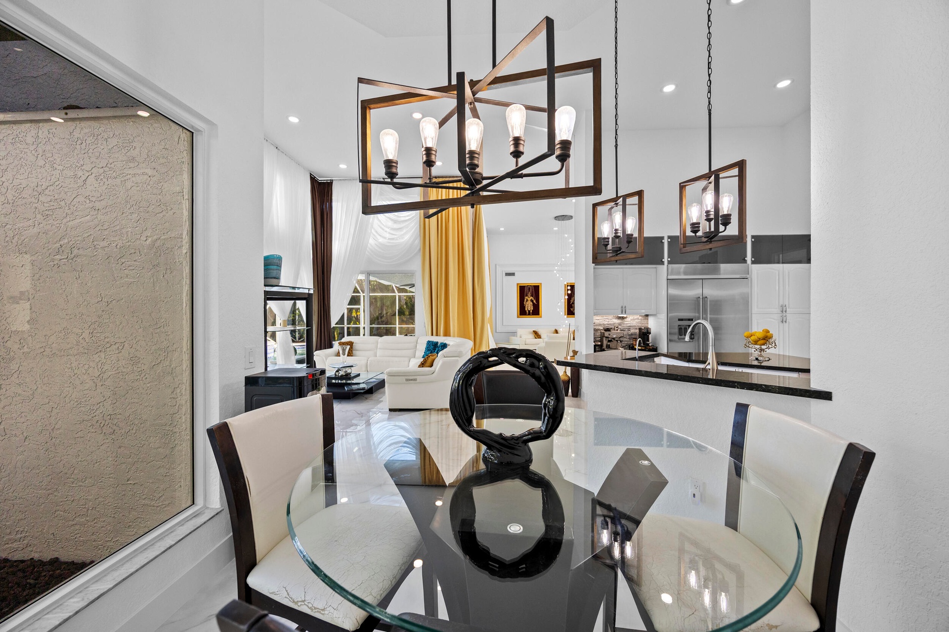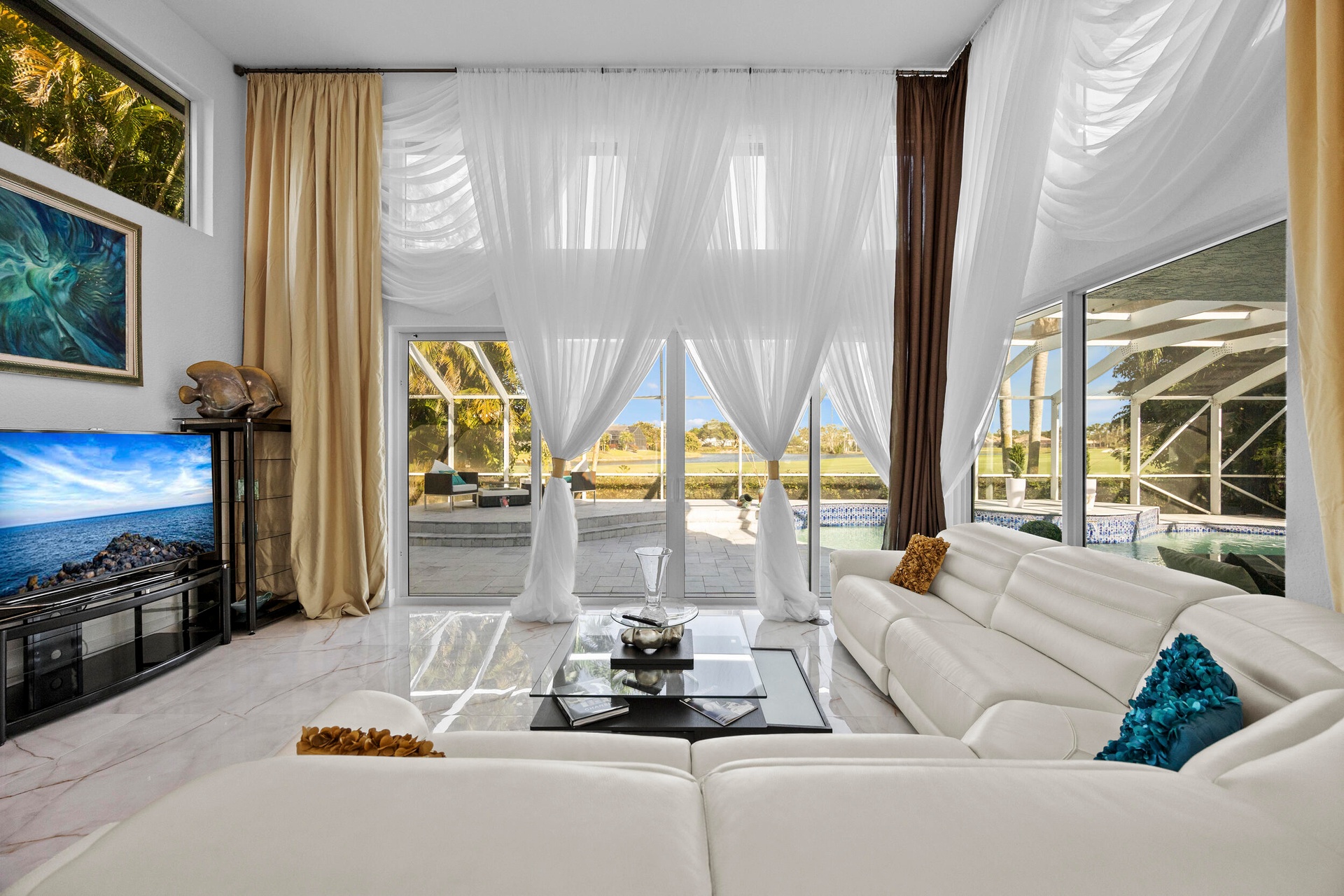 Designed for both comfort and entertaining, the thoughtfully crafted floor plan flows seamlessly throughout the home. Expansive windows and sliding glass doors showcase breathtaking extended golf and lake views, creating a serene backdrop and effortless indoor-outdoor living.