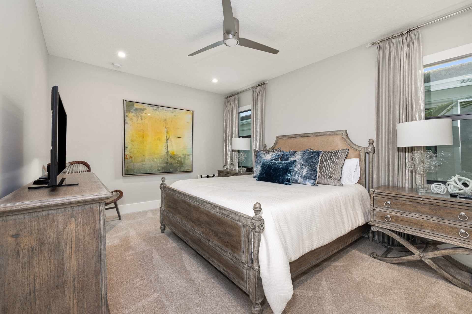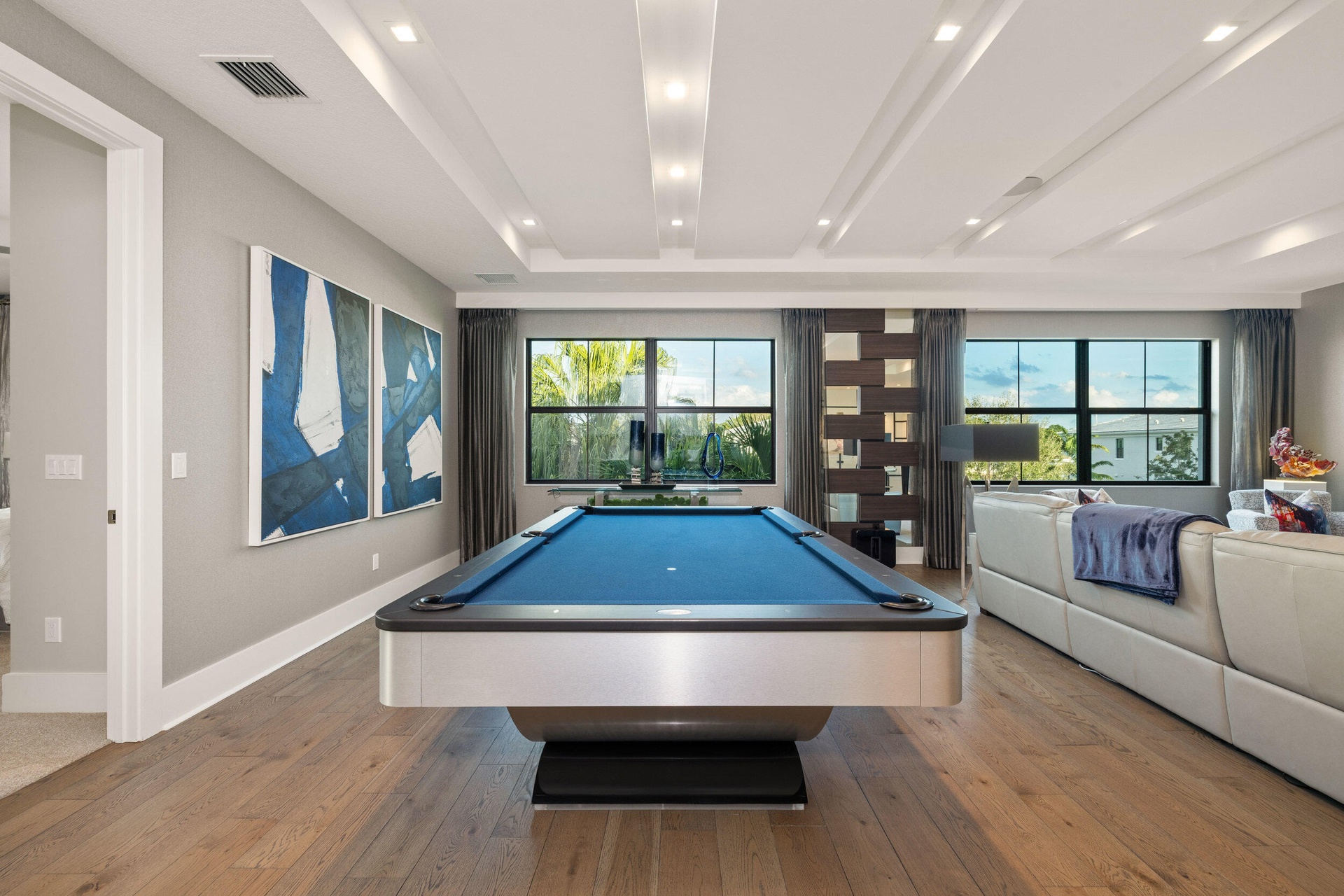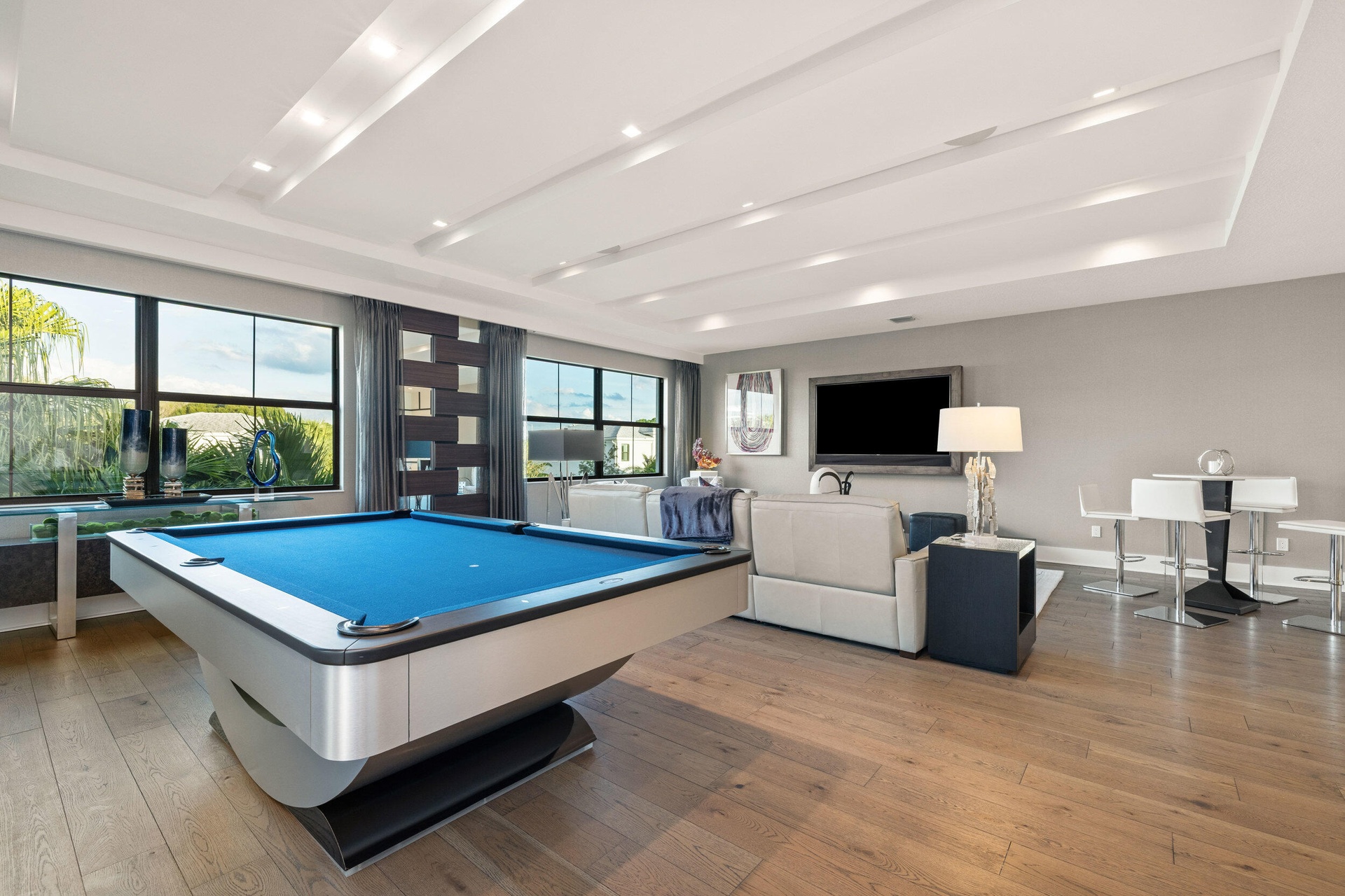 Stunning modern waterfront residence in Palm Beach Gardens offering 4 bedroom and 4 1/2 baths, fully furnished and impeccably decorated. Designed for effortless luxury living, this home features a resort-style pool and spa, expansive outdoor entertaining with a built-in bbq, and serene water views. Equipped with state-of-the-art technology including Lutron lighting, mutltiple TVs, expansive family/game room upstairs and smart home automation throughout. Clean architectural lines, upscale finishes, and turnkey convenience combine to create a rare opportunity for sophisticated Florida living.