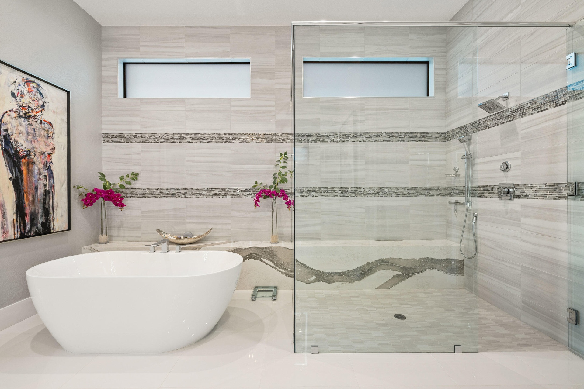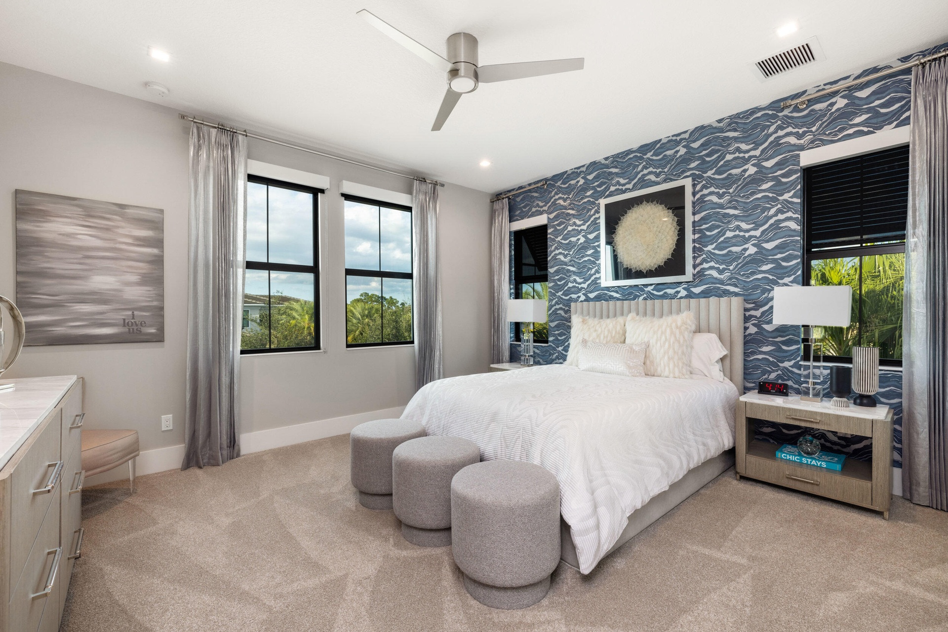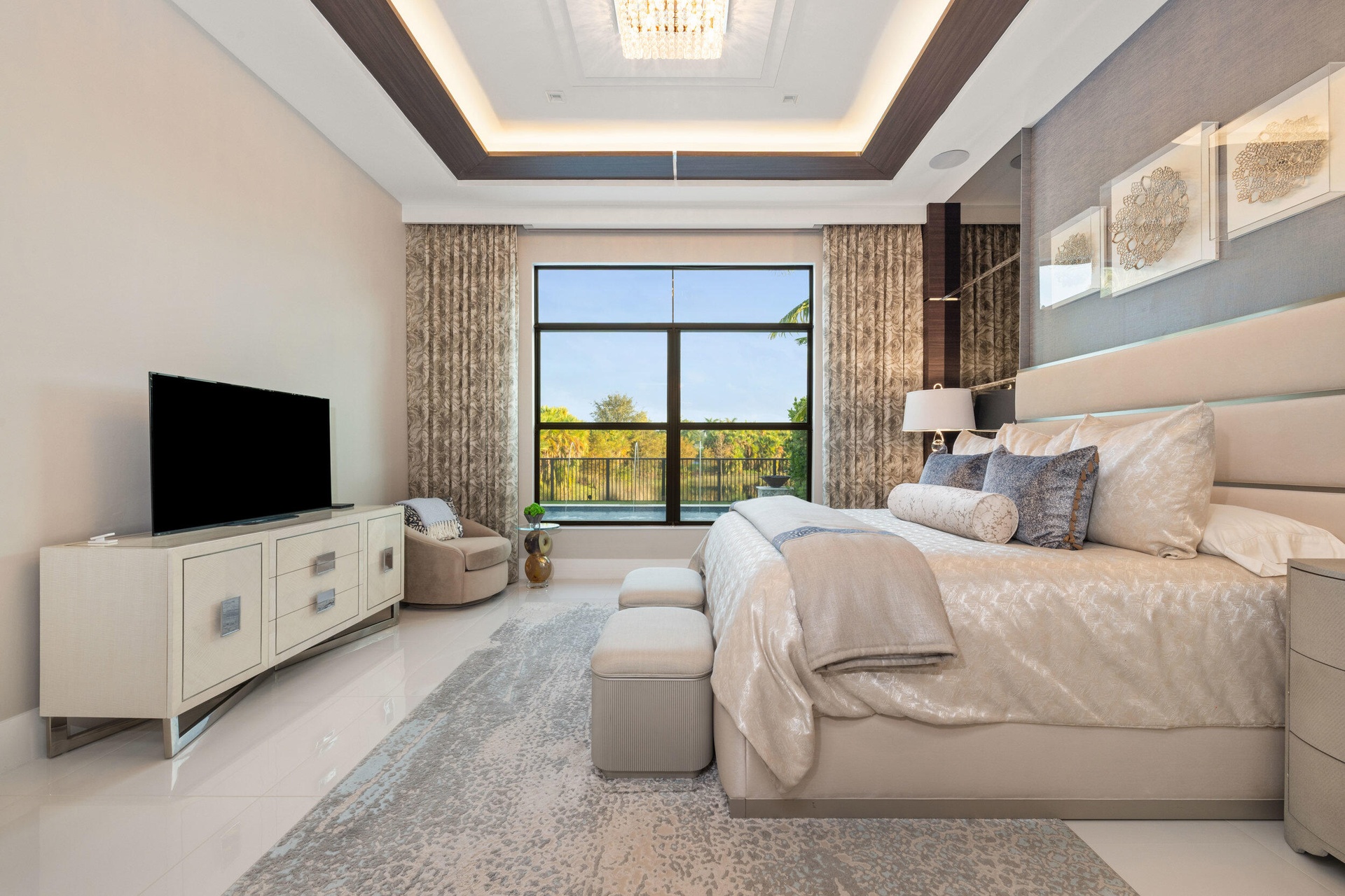 Stunning modern waterfront residence in Palm Beach Gardens offering 4 bedroom and 4 1 2 baths, fully furnished and impeccably decorated.