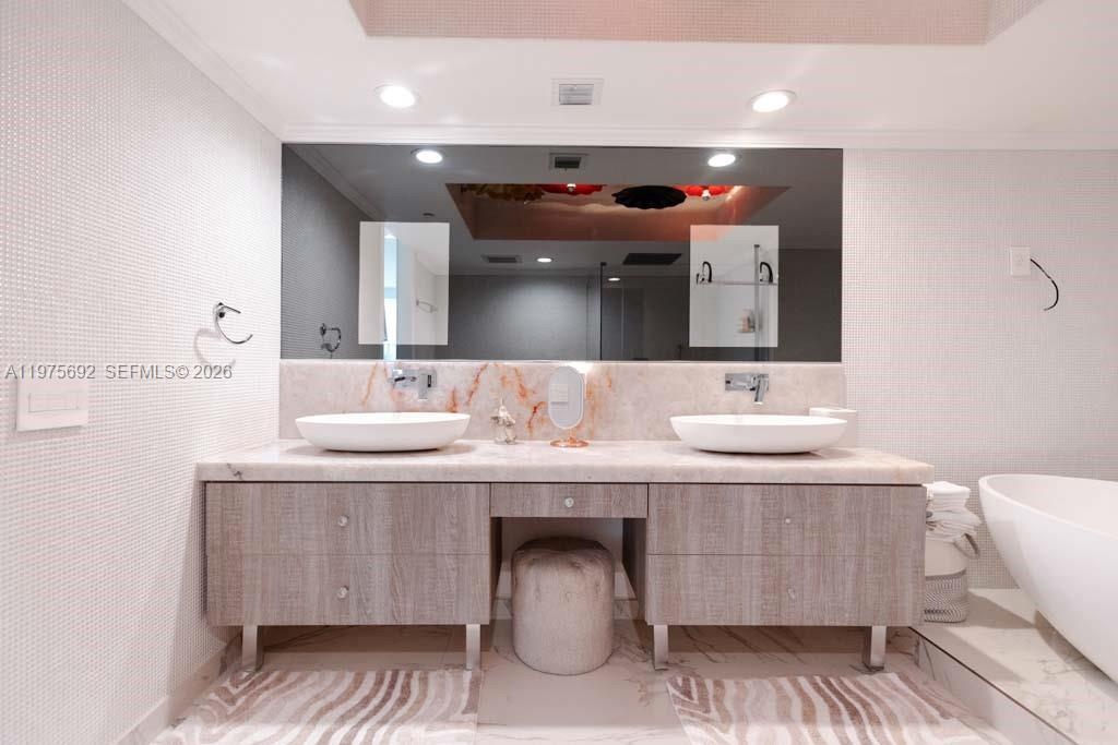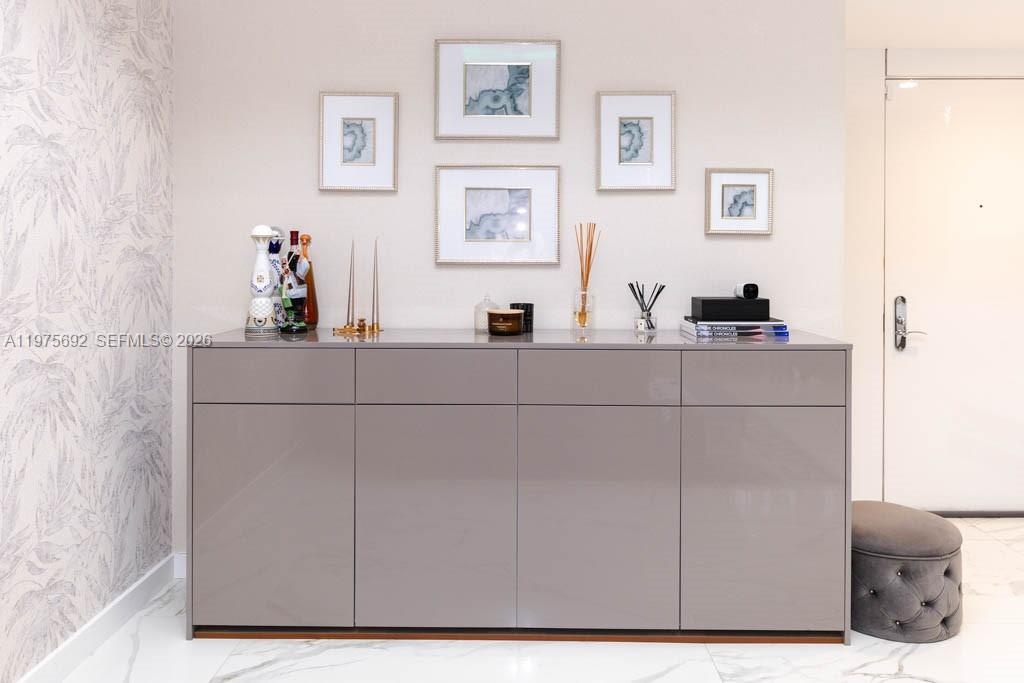 Turn-Key oceanfront freshly renovated 2 bedrooms/2 bathrooms unit - 1782 sq ft - with over 450 sq ft wraparound balcony. HUGE 12 feet ceiling in the living room is a great place to entertain! The elegant and modern interior features Italian calacatta porcelain flooring throughout. Open kitchen with top-of-the-line appliances, Onyx backlit countertop(lights up), freshly upgraded kitchen cabinets. Custom made built in furniture, beautiful curtains and modern chandeliers all over the unit. Fully renovated bathrooms, master bathroom features tub and huge shower. Separated Miele washer&dryer room. Resort-style amenities features a 50,000 sq ft fitness center & full service spa overlooking the ocean, 5 huge pools, hot tubs, beach chair service, restaurant/bar, party room, 24 hours security&valet