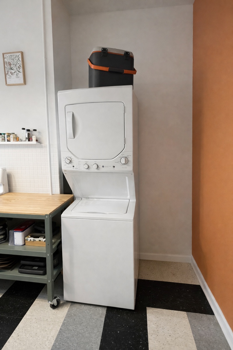 The apartment now includes a washer and dryer in the unit, adding convenience to this already comfortable layout.