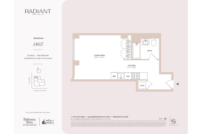Situated in an emerging residential enclave in Long Island City, Radiant is moments from numerous restaurants, bars, cafes, and shops. MoMA PS1, Brooklyn Boulders, Queensbridge Park, Target, and Murray Playground are all a few blocks away. Accessible subway lines include the 7/E/R/N/W/M/F. Pets are allowed.