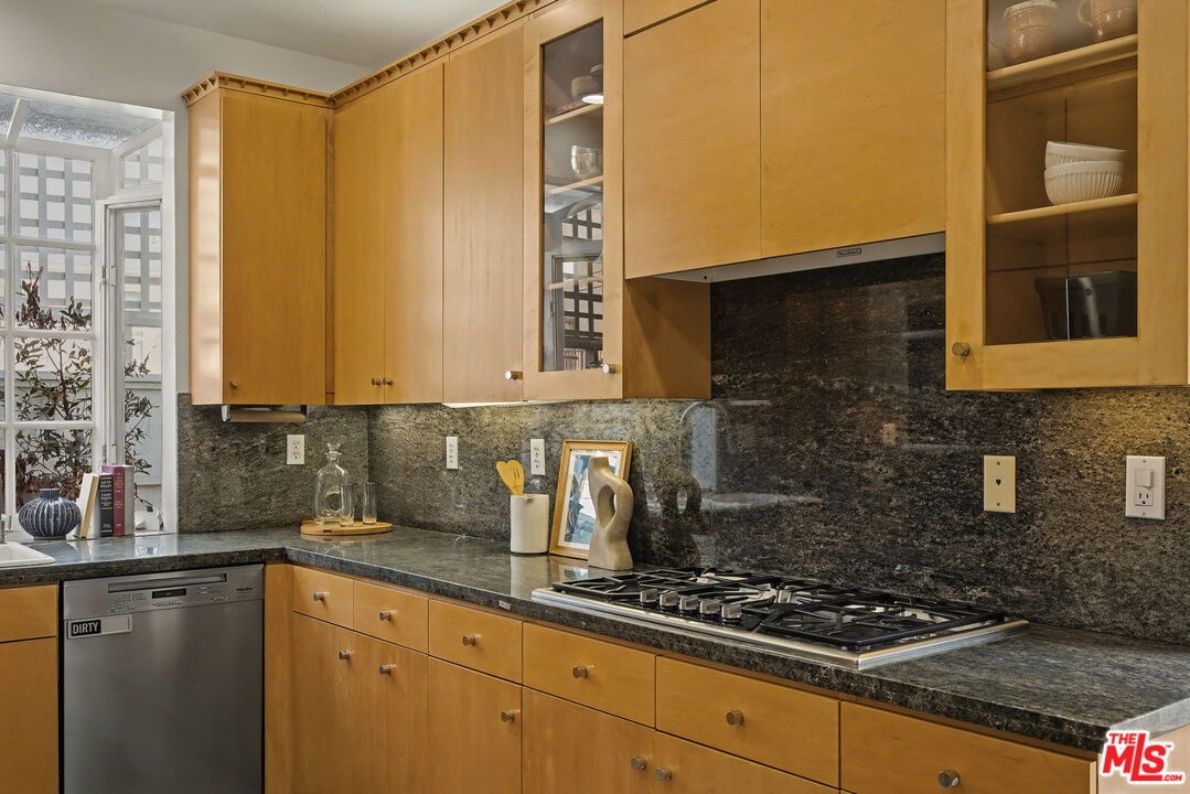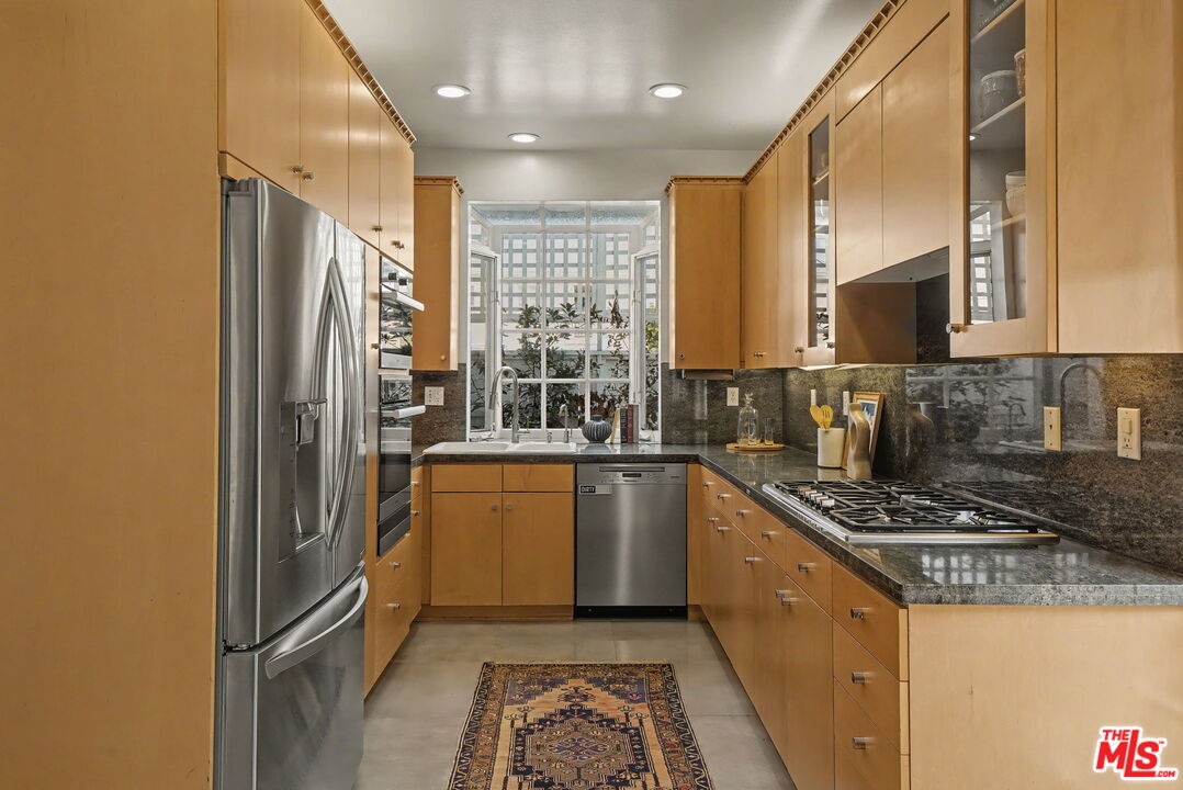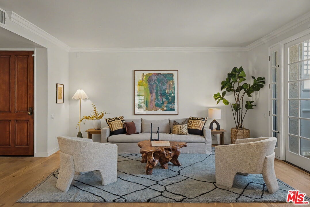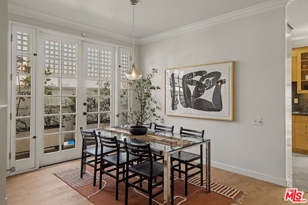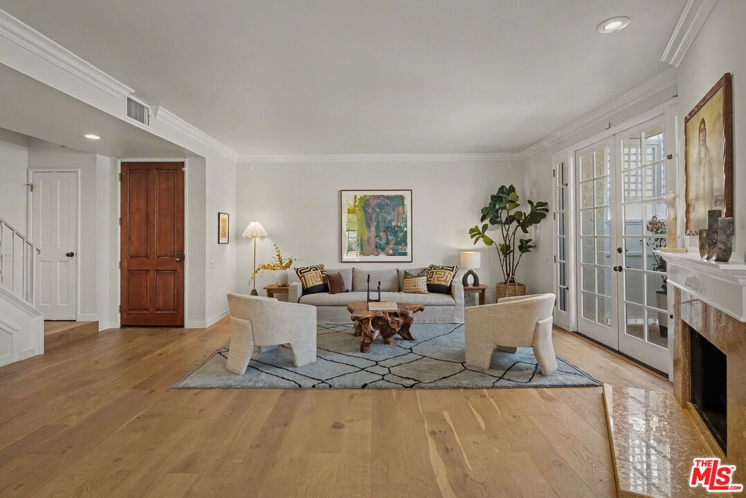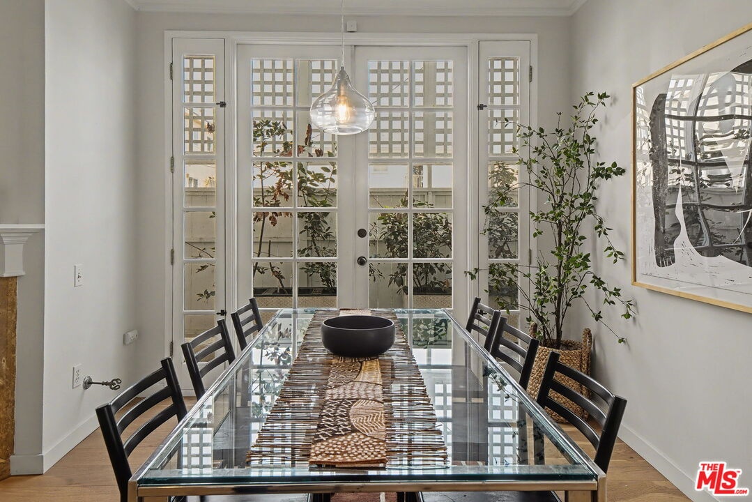 Beautiful 3-bedroom, 2.5-bathroom townhouse just blocks from Montana Avenue. This multi-level unit features a private oversized 2-car garage with direct access into the home. The main living area includes a comfortable living room with fireplace, dining area, open kitchen that flows to a cozy den or workspace, and a center hall with powder room. Situated in the rear of the complex, the unit offers a wrap-around patio with glass French doors that bring in abundant natural light and create an easy indoor/outdoor flow for entertaining. The recently updated kitchen is equipped with top-of-the-line Miele appliances and granite countertops. All three bedrooms are located on the upper level, including a generously sized primary suite with dual-vanity bathroom with tub and shower, along with a walk-in closet. Two additional bedrooms and a shared hallway bathroom complete the upper floor. The home is finished with newer wood flooring throughout, creating a warm and cohesive feel. Located on one of Santa Monica's most desirable residential streets, the property is just minutes from the beach, Montana Avenue shops, and nearby dining. A comfortable home offering a wonderful Santa Monica lifestyle.