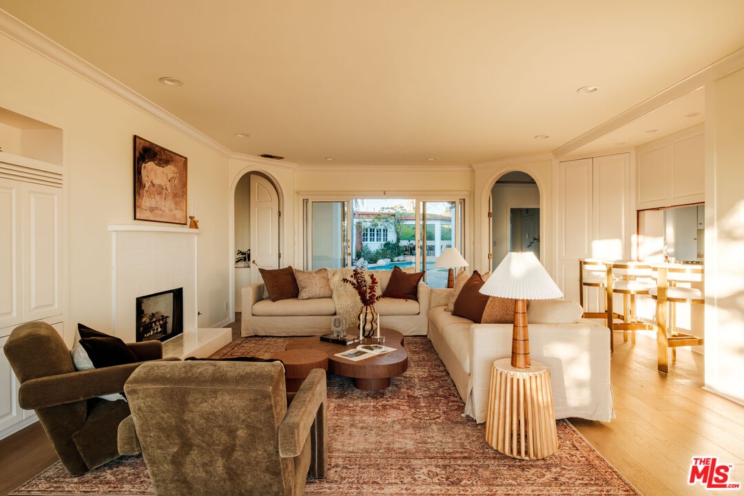 Located in the heart of highly coveted Santa Monica, this exceptional residence offers sweeping city lights and panoramic ocean views in one of the Westside's most desirable neighborhoods. The 4 bed plus office, 4.5 bath home features an open floor plan designed to maximize natural light and create seamless indoor/outdoor living, with expansive windows that frame the surrounding coastline and cityscape. The main living and dining areas flow effortlessly into a well appointed kitchen, creating an ideal setting for both everyday living and entertaining. The backyard features a pool, spa, and ample yard space, providing a private setting for outdoor relaxation and entertaining. The primary suite serves as a private retreat, complete with a spa inspired bathroom featuring a freestanding soaking tub, rain shower, dual walk in closets, and a dedicated vanity area. A private balcony extends the suite outdoors and showcases sweeping ocean and city views. Each additional bedroom includes its own en suite bathroom, while the office on the main level offers flexibility for use as a den, gym, or guest space. Additional amenities include an elevator and a two car garage with storage. Ideally located just minutes from Montana Avenue, Brentwood Country Mart, Brentwood Country Club, the Santa Monica Pier, and some of LA's best beaches, dining, and shopping.