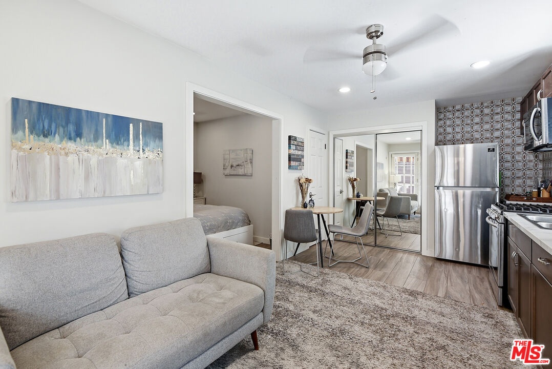 Spanish Colonial charm meets thoughtful modern updates in this beautifully remodeled 1930 residence. Rich in character, the home showcases preserved original details including original beams, elegant windows, French doors, a striking spiral staircase adorned with wrought-iron railing, and gracious landing. The main residence features a classic and functional floor plan with 3 bedrooms, 2.5 bathrooms, plus den, an office/nursery, small reading room, and ADU. The expansive living room with beamed ceilings, stately fireplace, hardwood floors, and natural light flowing in from the abundance of window flows seamlessly into the beautifully enlarged formal dining room, highlighted by rich wood detailing, providing an ideal setting for gatherings. The large and updated kosher kitchen offers modern convenience while maintaining the home's timeless appeal appointed with top of the line appliances, dining area, large functional island with breakfast bar and direct access to the outdoor dining. Adjacent to the kitchen, enjoy the comfortable den with French doors to the backyard. Upstairs features the spacious primary suite - a true retreat, with French doors to capture west facing natural light and fresh air, 2 walk-in closets, private deck, and en-suite bathroom with double sinks. 2 additional generous bedrooms with Jack & Jill bathroom, an office/bonus room with balcony, and small reading room complete the upstairs. The backyard features a private shaded entertaining area for dining with built-in Viking BBQ and kitchenette, sparkling pool and spa - perfect for entertaining or quiet relaxation. Adding exceptional versatility and value, the ADU offers additional opportunities for the new owners needs with 1 bedroom, 1 Bathroom, sitting area, and kitchen. This prime location is a rare find, blending historic character with modern comfort.