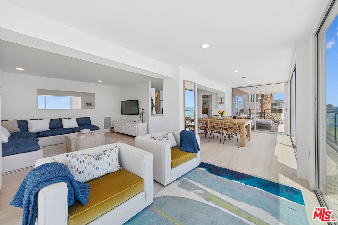 Set along one of the most coveted stretches of Malibu Road, this exceptional beachfront home offers an unparalleled coastal living experience. Accessed through a serene courtyard entry, the residence opens to a dramatic great room and chef's kitchen where walls of glass span the entire width of the home, framing breathtaking, uninterrupted views of the Pacific Ocean and the sandy shoreline below. Designed for effortless indoor-outdoor living, expansive oceanfront decks provide ample space for lounging, dining, and entertaining while immersed in Malibu's iconic sunsets and the rhythmic sound of the waves. The next level features three beautifully appointed oceanfront bedrooms, including the primary suite, all with sweeping coastal vistas. A separate fourth bedroom and bath, thoughtfully designed as a bunk-room, offers additional flexibility for guests or family. On the lower level, a private guest apartment mirrors the home's spectacular views and includes a full kitchen, bedroom, bathroom, and its own oceanfront deck, creating an ideal retreat for extended stays. Completing the property is a fully self-contained studio apartment with its own kitchen, bath, and private entrance. The home also includes an attached two-car garage with Tesla charger, two laundry rooms, a sauna and a location set well off Pacific Coast Highway, providing rare privacy and tranquility yet close to central Malibu and all it has to offer. A true Malibu trophy property, this extraordinary residence offers the ultimate in luxury beachfront living.