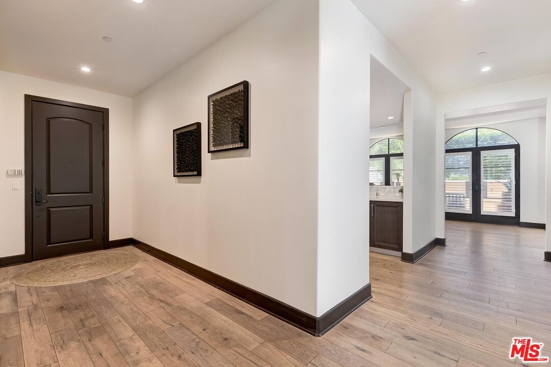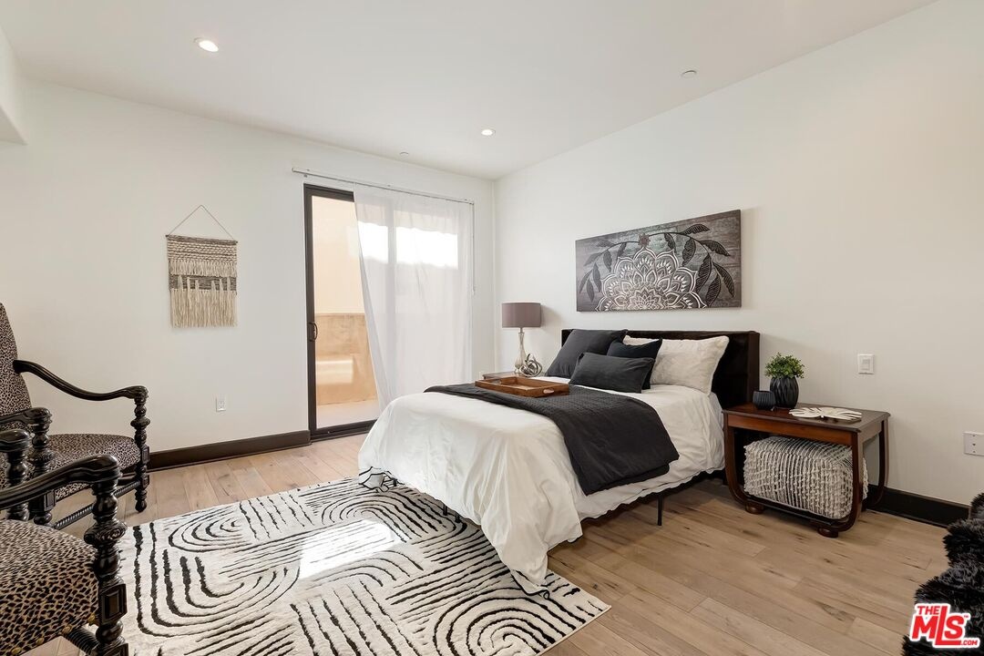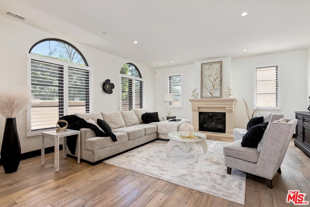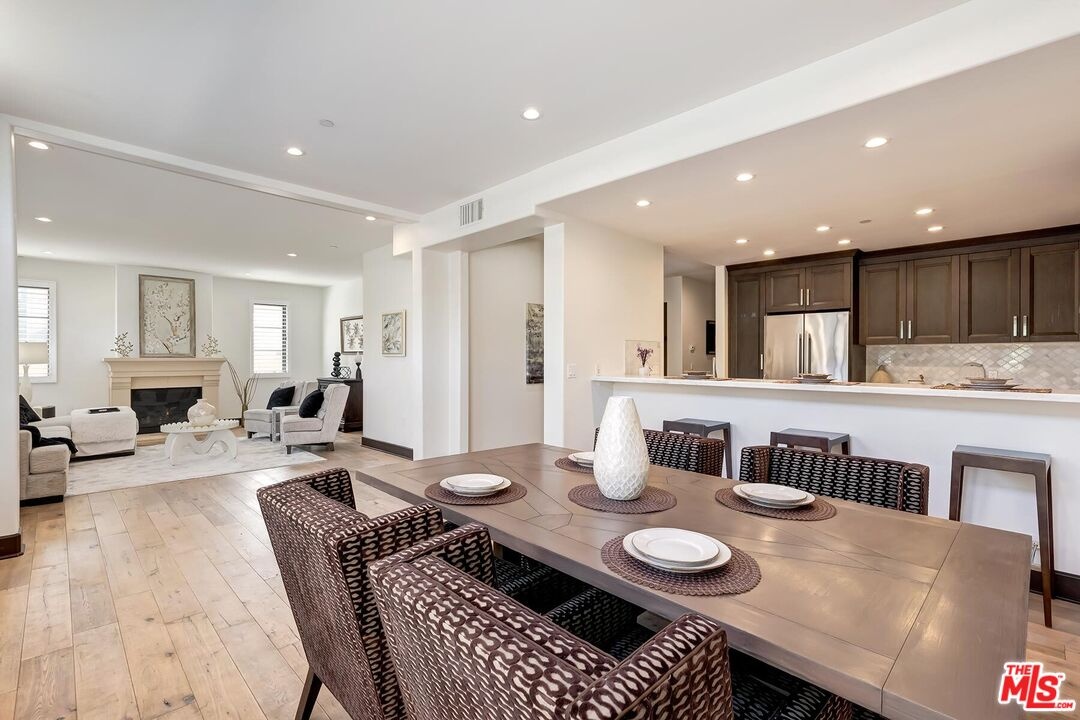 In a sought-after Westwood location, just moments from everything, this three-bedroom single-level residence offers comfort, scale, and privacy rarely found in condominium living. A gracious foyer opens to light-filled interiors, where high ceilings, luxurious wood flooring and a generous layout create a wonderful sense of volume and style. With no common walls and in a corner location, the home offers a rare feeling of privacy and ease. The modern open floor plan features a great room anchored by an inviting formal living room with stately fireplace flowing seamlessly into a spacious formal dining area perfectly designed for both daily living and entertaining. The dining room connects to the kitchen by way of a breakfast bar, creating a layout that feels both open and distinct. The gourmet kitchen is a chef's delight appointed with high-end stainless-steel appliances, Italian-style cabinetry, stone countertops and tasteful tile backsplash ready for any level of expertise. An extended patio runs alongside the dining room and living room, adding an easy connection, through several large French doors, to the outdoors. In addition, a discrete powder room allows for easy large scale entertaining or convenient family gatherings. All three bedrooms are positioned privately along the west-facing side of the home, including a well-appointed primary suite with a spacious closet and a sumptuous bath with a separate shower and soaking tub. Two additional bedrooms share a full bath, thoughtfully located just outside the bedroom wing. The extra bedrooms add flexibility for a large family, multiple guests or the perfect home office. This newer building offers a carefree opportunity to enjoy the space and livability of a true home in one of Westwood's most desirable neighborhoods mere moments from eclectic Westwood Village, world renown UCLA, Century City business hub, tony Westfield mall, word class Beverly Hills shops and restaurants and is located in the highly desirable Fairburn Elementary School district.