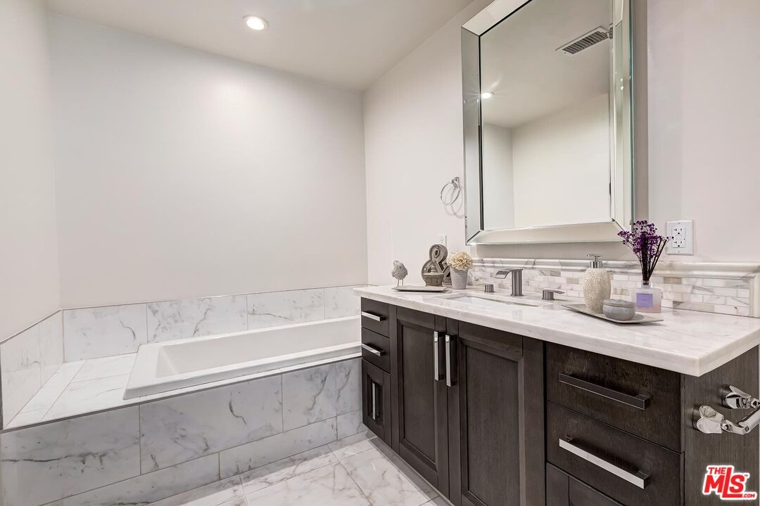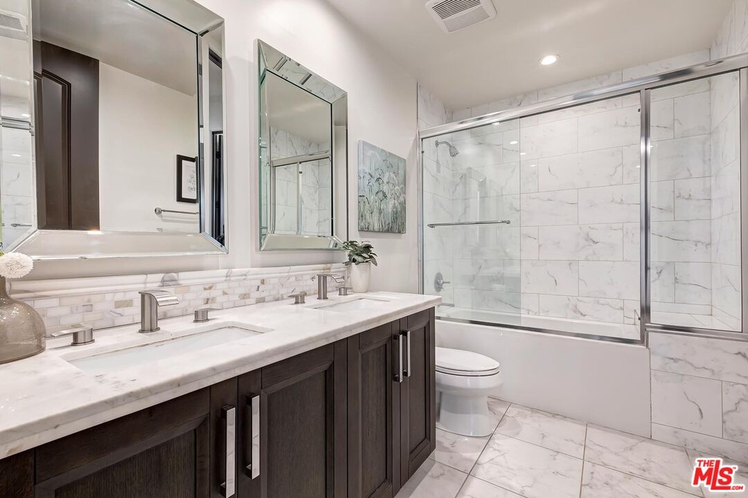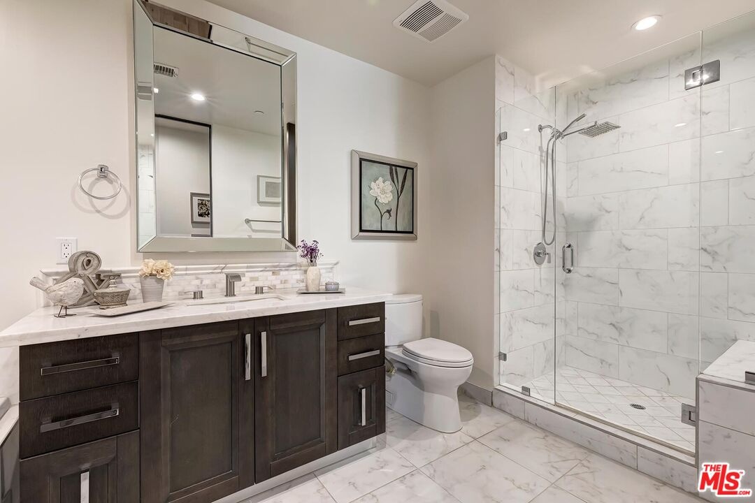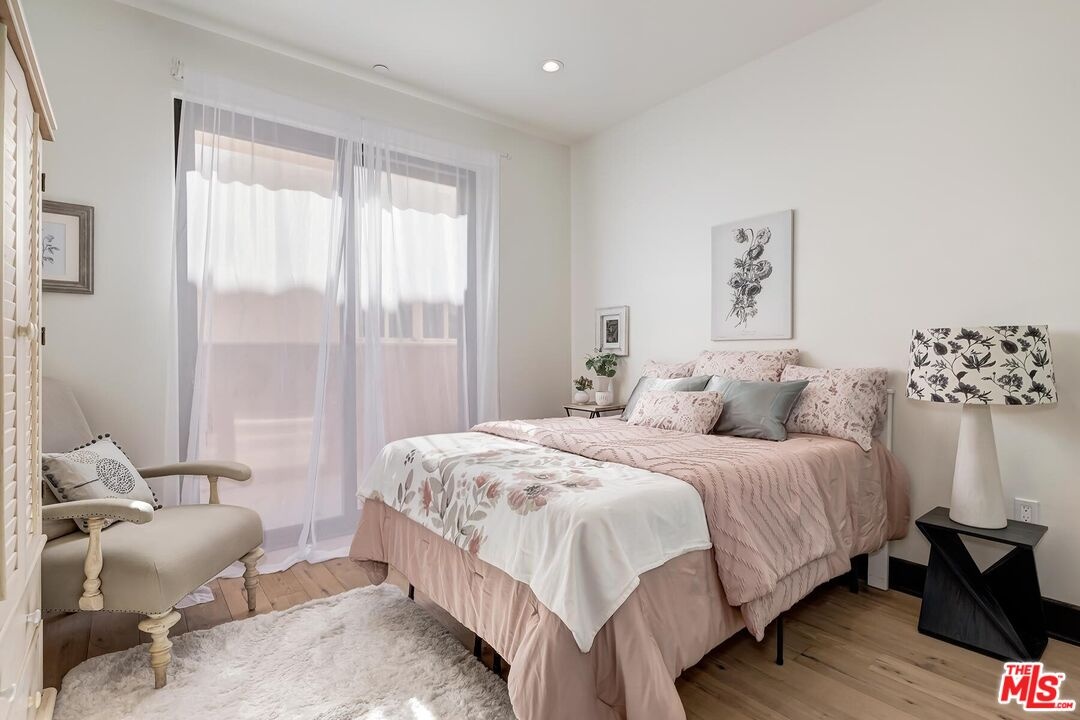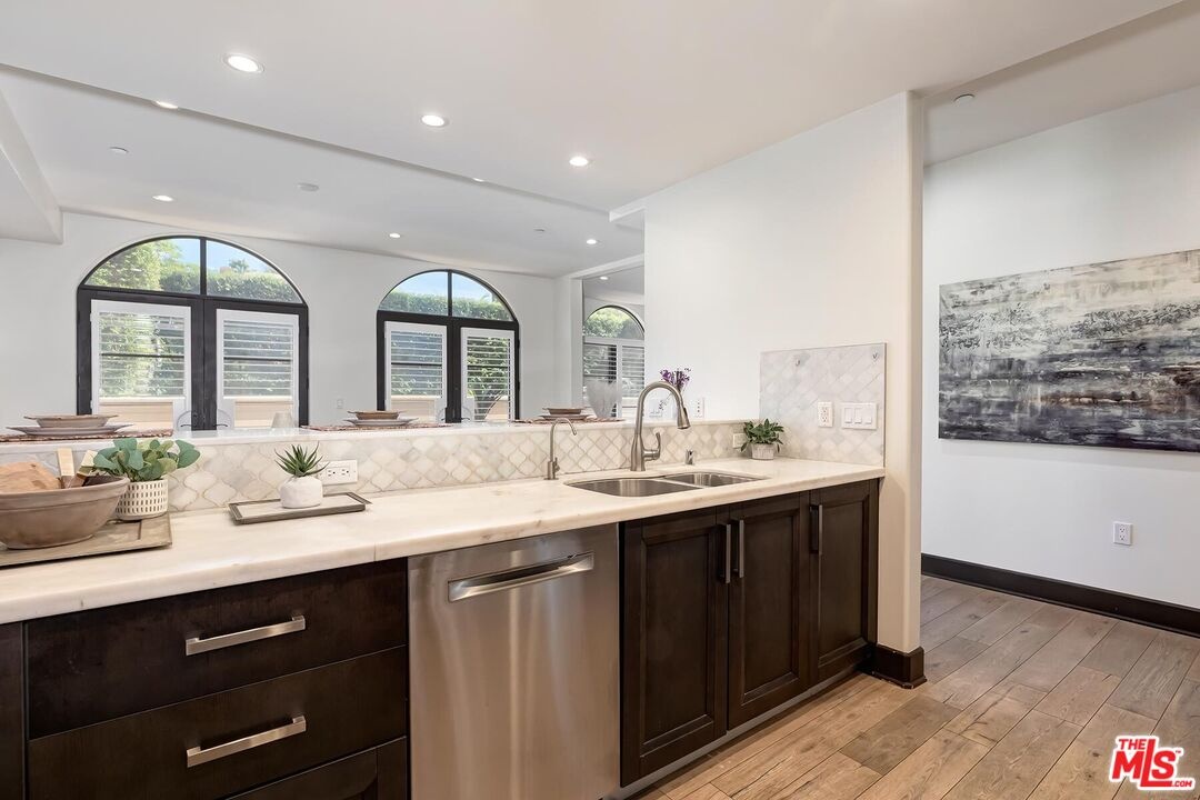 In a sought-after Westwood location, just moments from everything, this three-bedroom single-level residence offers comfort, scale, and privacy rarely found in condominium living. A gracious foyer opens to light-filled interiors, where high ceilings, luxurious wood flooring and a generous layout create a wonderful sense of volume and style. With no common walls and in a corner location, the home offers a rare feeling of privacy and ease. The modern open floor plan features a great room anchored by an inviting formal living room with stately fireplace flowing seamlessly into a spacious formal dining area perfectly designed for both daily living and entertaining. The dining room connects to the kitchen by way of a breakfast bar, creating a layout that feels both open and distinct. The gourmet kitchen is a chef's delight appointed with high-end stainless-steel appliances, Italian-style cabinetry, stone countertops and tasteful tile backsplash ready for any level of expertise. An extended patio runs alongside the dining room and living room, adding an easy connection, through several large French doors, to the outdoors. In addition, a discrete powder room allows for easy large scale entertaining or convenient family gatherings. All three bedrooms are positioned privately along the west-facing side of the home, including a well-appointed primary suite with a spacious closet and a sumptuous bath with a separate shower and soaking tub. Two additional bedrooms share a full bath, thoughtfully located just outside the bedroom wing. The extra bedrooms add flexibility for a large family, multiple guests or the perfect home office. This newer building offers a carefree opportunity to enjoy the space and livability of a true home in one of Westwood's most desirable neighborhoods mere moments from eclectic Westwood Village, world renown UCLA, Century City business hub, tony Westfield mall, word class Beverly Hills shops and restaurants and is located in the highly desirable Fairburn Elementary School district.
