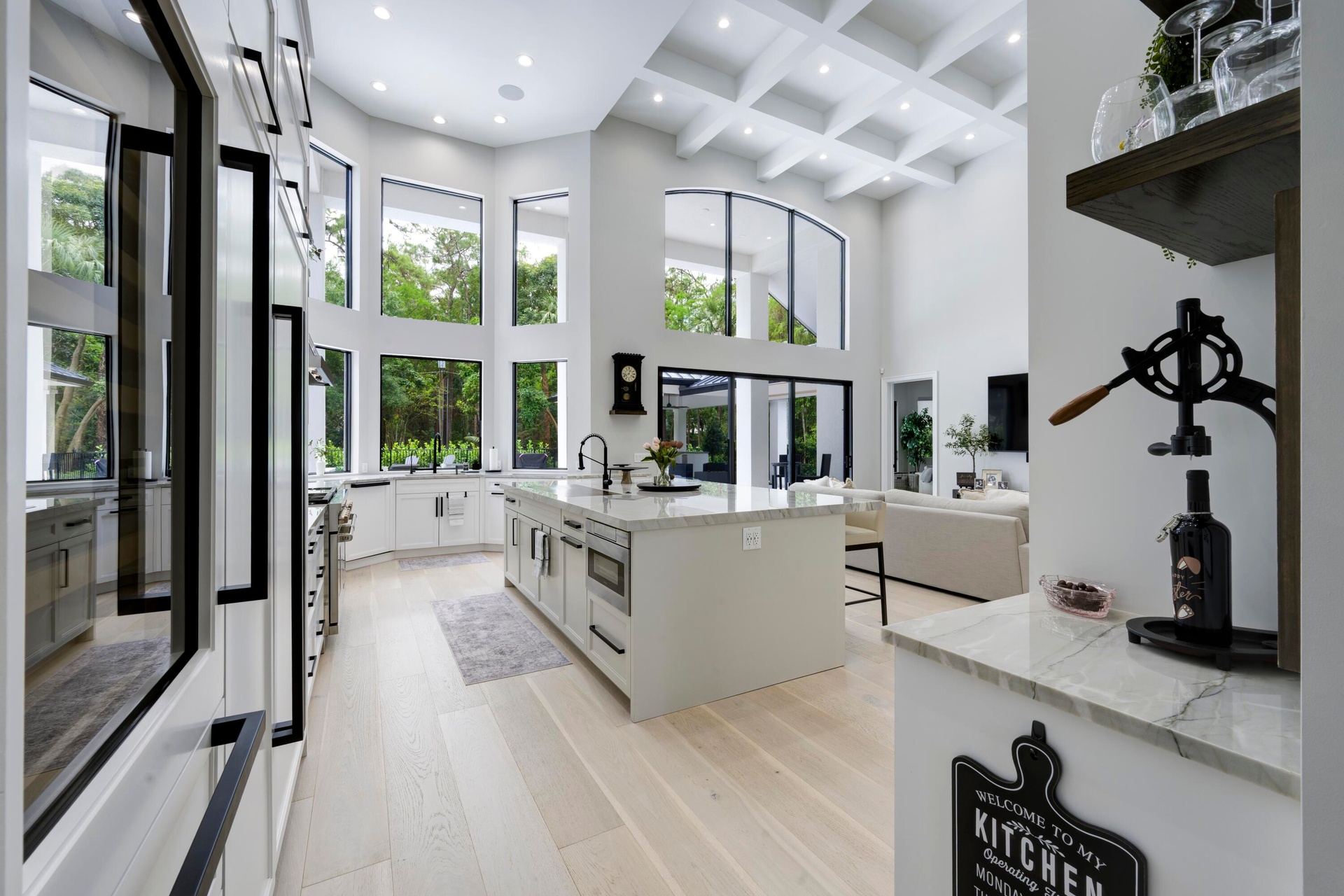 Set on 5 private acres in the heart of Loxahatchee, this stunning estate underwent a complete, top to bottom renovation completed in 2026 and shows like new construction throughout. With over 8,305 square feet of total living space, the property includes a 6 bedroom, 7 bathroom main residence with a 5 car garage, two home offices, plus a fully detached 2,116 square foot guest house, making it one of the most versatile and well appointed properties in the area. From the moment you arrive, the tone is set by a WiFi and Bluetooth equipped gate entry system framed by brand new professional landscaping that winds through a sweeping driveway leading to both the main home and the guest house beyond. Inside, soaring ceilings carry throughout every room. The gourmet kitchen is outfitted for the most discerning chef, anchored by a Wolf six burner double griddle gas range with double oven, a Sub-Zero refrigerator and freezer, and a Sub-Zero 80 bottle wine fridge with two refrigerated beverage drawers. The oversized island features a 42 inch galley sink with prep and entertaining accessories, a custom cutting board top, and a built in drawer microwave. The owners suite is conveniently located on the main floor and features a luxurious spa-like bathroom with separate shower.