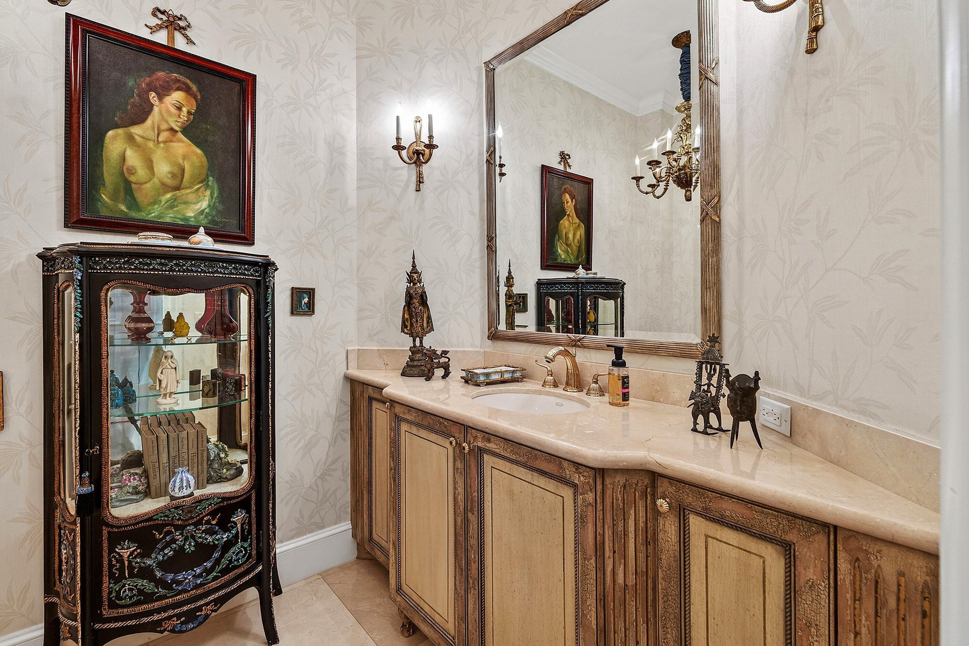 Situated on one of the largest and most private homesites in the coveted Grand Estates at Old Palm, this exceptional single-level residence embodies timeless elegance and refined luxury. This sprawling estate features 4 bedrooms and 4.5 baths, along with a fully air-conditioned three-car garage equipped with electric vehicle charging, offering both comfort and functionality. A grand mahogany front door welcomes you into an interior rich with architectural detail, including marble and hardwood flooring, exquisite custom built-ins, dramatic designer lighting, and elegant custom window treatments throughout.