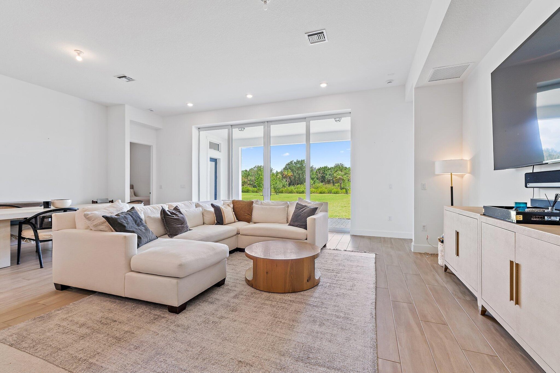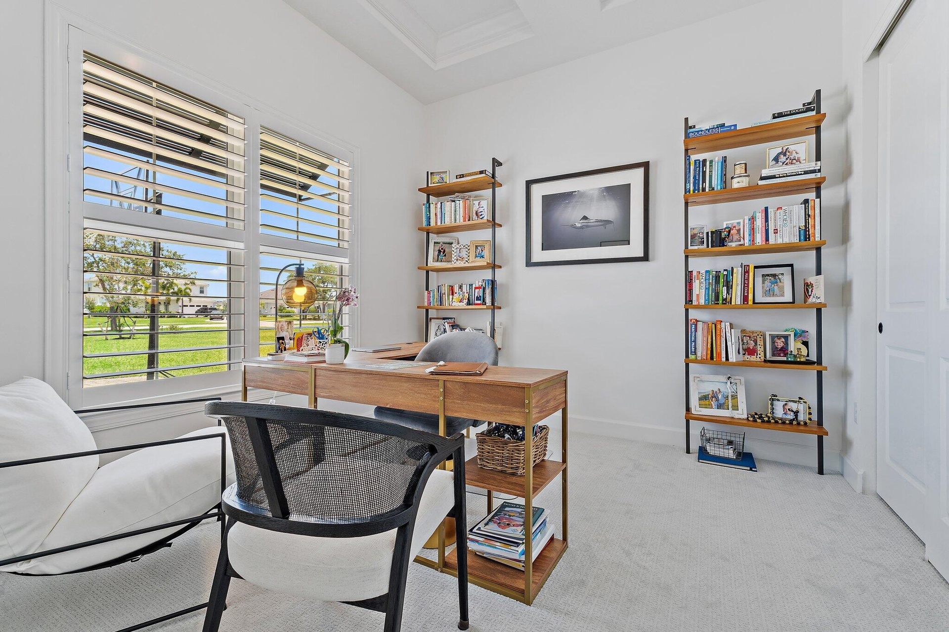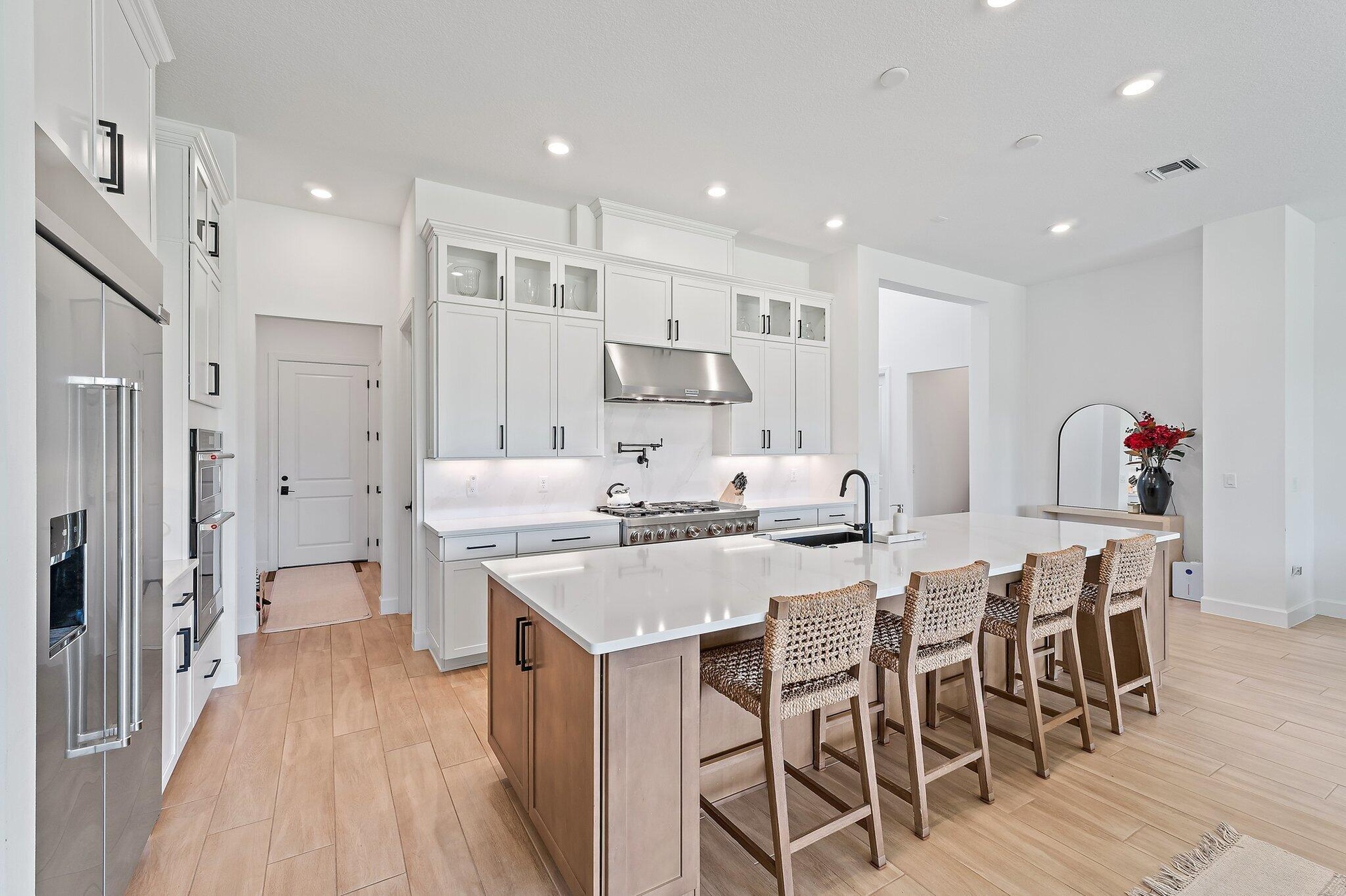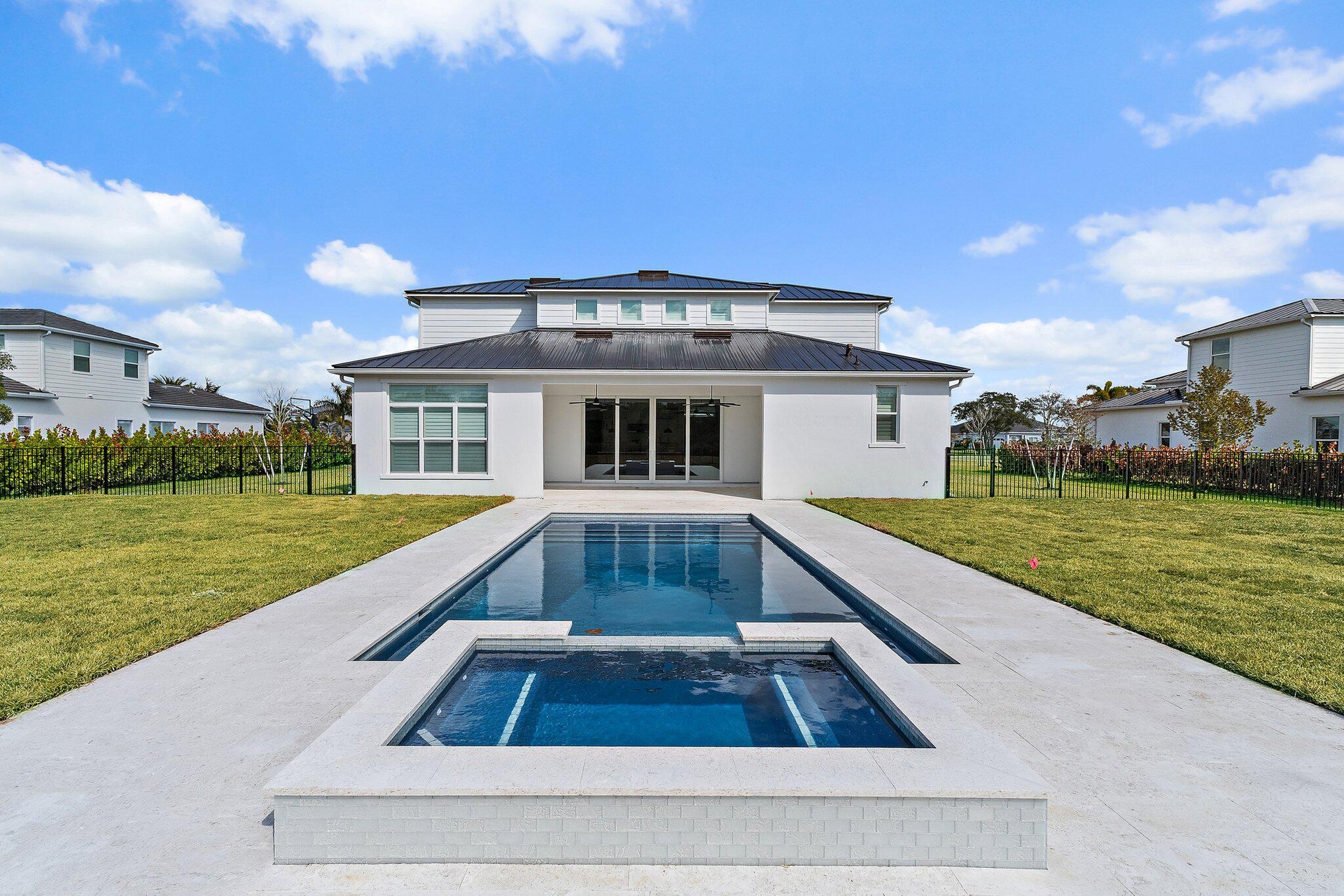 Experience elevated living in one of Jupiter's most exclusive gated communities: Bridgewater by DiVosta. This 2023-built, nearly-new estate offers 5 bedrooms, den/office, 4.5 bathrooms, loft/flex room, 3-car garage, and a brand new pool. 3,796 sq ft of thoughtfully crafted space, all set on nearly one acre of prime land. Inside, you'll find soaring volume ceilings, impact glass throughout, and an open-concept floor plan that effortlessly blends luxury with livability. The chef's kitchen is outfitted with high-end appliances, sleek cabinetry, and a walk-in pantry, anchoring a main living area designed for both entertaining and everyday ease. A private office, oversized laundry room, and custom finishes add next-level functionality. The ground-floor primary suite delivers ser energy with dual vanities, a spa-like soaking tub, and a walk-in shower. Upstairs, you'll find a spacious flex room that can function as a second living area, game room, media space, or homework hub; plus generously sized secondary bedrooms that offer comfort and privacy for guests or family.
