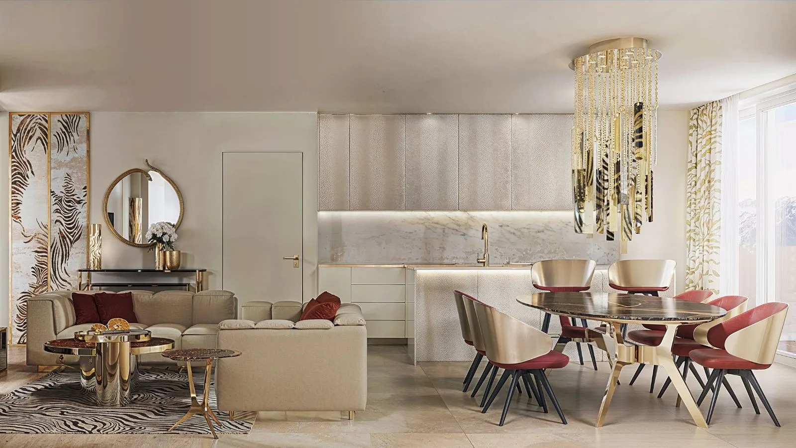 The residence features expansive open-plan living and dining areas framed by floor-to-ceiling glass walls that maximize natural light and seamlessly connect the interior spaces with the spacious covered veranda. High-end finishes, designer kitchens equipped with premium appliances, and advanced smart home technology ensure a refined living experience that meets the expectations of the most demanding buyers.