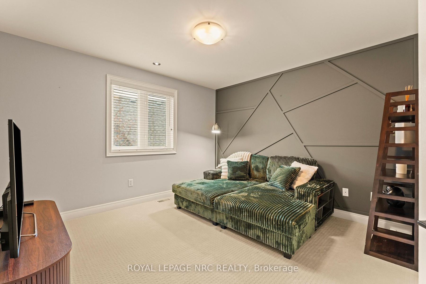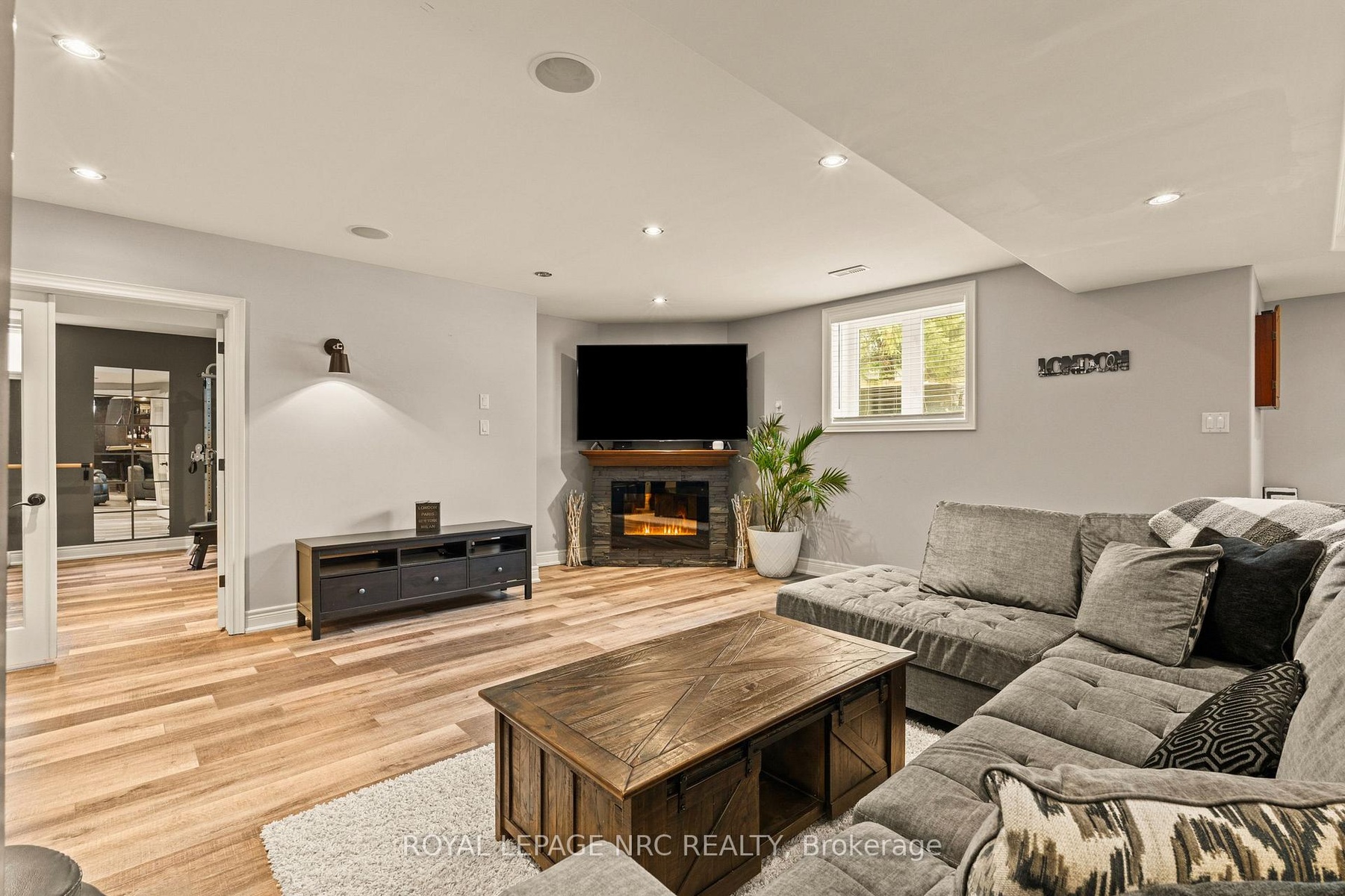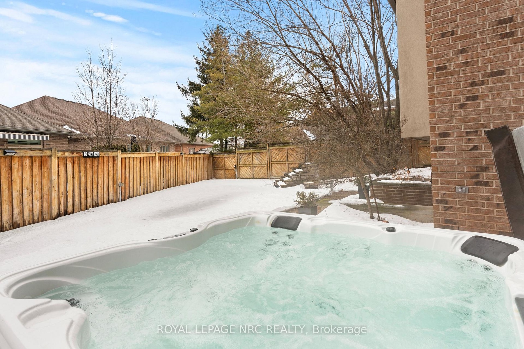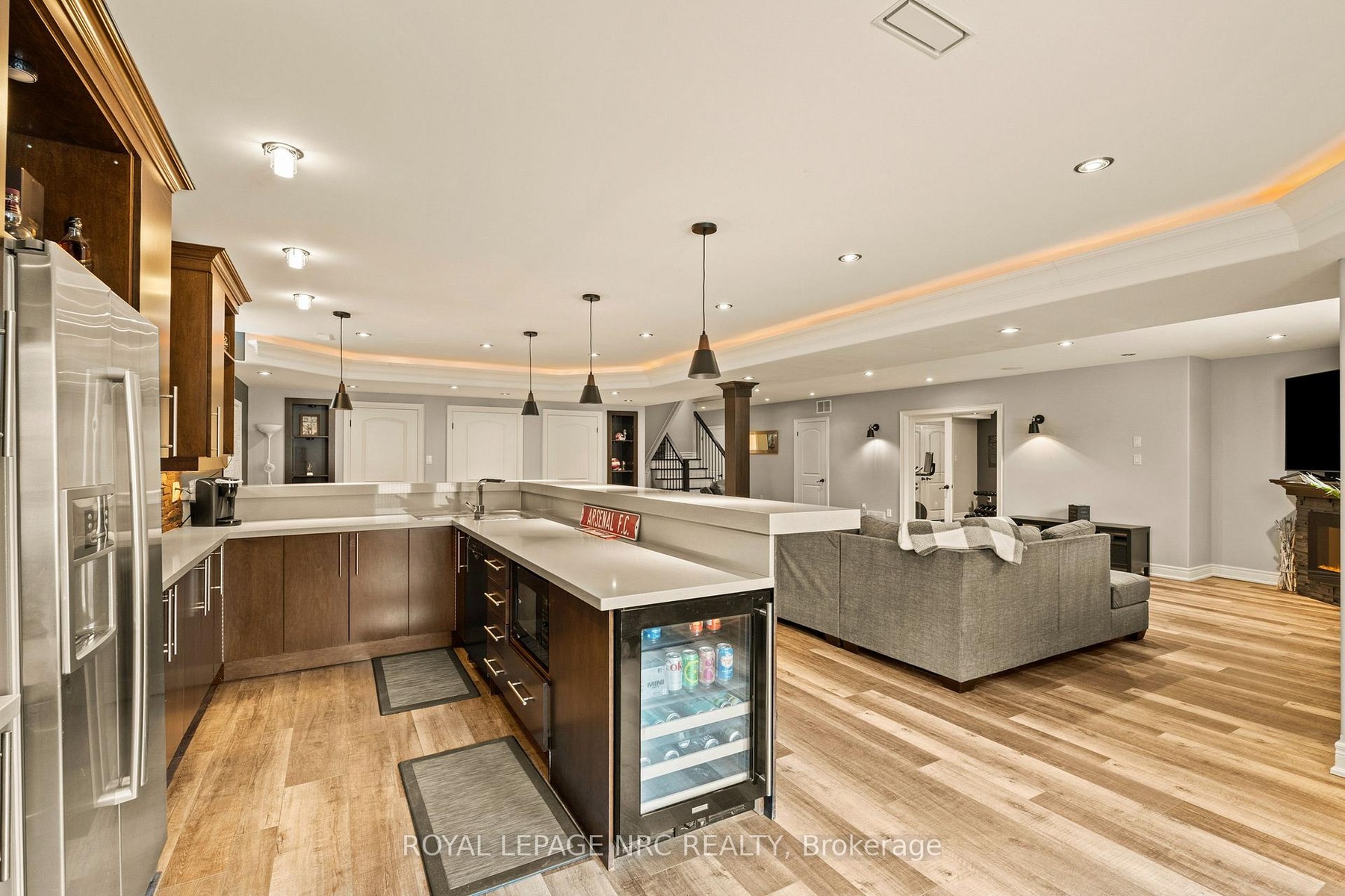 Welcome to a truly exceptional home in one of the most sought after neighborhoods in Grimsby, showcasing a generous open-concept main floor, thoughtful design, high-end upgrades, and impressive outdoor entertaining space. Close to all conveniences and great schools! From the moment you arrive, the exposed aggregate driveway and striking brick-and-stucco exterior set the tone. Step inside to a breathtaking two-storey front entrance with a floor-to-ceiling accent wall. At the heart of the home is a show-stopping chef's kitchen featuring quartz countertops, premium Kitchencraft cabinetry, built-in appliances, a double oven, and custom built-ins - perfectly designed for both entertaining and everyday living. The open-concept layout flows into spacious living areas, 10 foot high ceilings, highlighted by three gas fireplaces (one on the lower level). Upstairs offers four generously sized bedrooms, including a luxurious primary retreat with walk-out balcony and spa-inspired ensuite. Convenient upper-level laundry adds everyday practicality, while a second laundry area is located in the finished basement. The fully finished lower level (with spray foam insulation) expands your living space with a large family room, wet bar, additional bedroom, and a 3-piece bath, separate entrance - ideal for guests, teens, or multigenerational living. Step outside to your private backyard oasis: a saltwater pool with waterfall feature, new pool pump and motor ,fresh liner, and a brand-new Cal Spa hot tub. Entertain all summer long with dual gas BBQ hookups, ceiling speakers outdoors, and a rare outdoor bathroom complete with shower and vanity. With 3,885 sq ft above grade (with additional finished lower level), a double car garage plus parking for four, this is a rare opportunity to own a move-in-ready home that truly delivers on comfort and everyday luxury